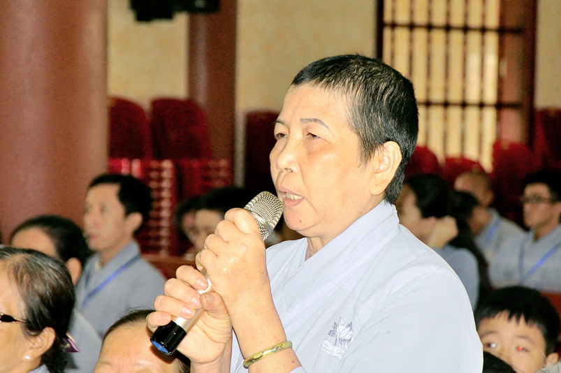 Trước khi chính thức lễ bế giảng là phần phát biểu, giao lưu, tọa đàm của chư tôn đức Tăng Ni cùng quý Phật tử dưới sự chứng minh của HT. Thích Minh Thiện trưởng ban tổ chức. Buổi tọa đàm được tổ chức nhằm giải đáp những thắc mắc, những điều trăn trở quý Phật tử gặp phải trong lúc nghiên cứu, học tập kinh điển, khi tu tập và trong đời sống. Qua đó, giúp cho Phật tử hiểu rõ, tin sâu và làm tốt vai trò của một hoằng pháp viên trong tương lai.