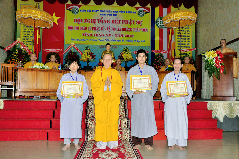 Chứng minh và tham dự có: HT. Thích Huệ Hồng- Chứng minh ban Trị sự GHPGVN tỉnh Long An; HT. Thích Minh Thiện – Uỷ viên HĐTS, Phó Trưởng Ban Hoằng Pháp TƯ, Trưởng phân ban tập huấn Hoằng pháp viên Ban Hoằng pháp TƯ, Trưởng Ban Trị Sự GHPGVN tỉnh Long An; ĐĐ Thích Đức Hoàng- Phó trưởng BTS GHPGVN tỉnh Long An; ĐĐ. Thích Lệ Duyên- Chánh thư ký BTS, trưởng ban Phật Giáo Quốc Tế GHPGVN tỉnh Long An; ĐĐ. Thích Lệ Ngôn – Ủy viên Ban Hoằng pháp TƯ, Phó trưởng phân ban kiêm Chánh Thư ký phân ban tập huấn Hoằng pháp viên ban Hoằng pháp TW, Trưởng ban Hoằng Pháp tỉnh Long An; ĐĐ. Thích An Nhựt trưởng ban Hướng Dẫn Phật Tử GHPGVN tỉnh Long An; TT. Thích Từ Thiện Trương BTS GHPGVN huyện Tân Trụ; ĐĐ. Thích An Điền- Phó ban Văn Hóa GHPGVN tỉnh Long An; ĐĐ. Thích Huệ Thông- Trưởng ban Thông Tin Truyền Thông GHPGVN tỉnh Long An; cùng chư tôn đức Tăng Ni đại diện ban Hoằng Pháp, ban Hướng Dẫn Phật Tử, ban Thông Tin Truyền Thông và ban Văn Hóa trực thuộc BTS GHPGVN tỉnh Long An; chư tôn đức Tăng Ni trụ trì các tự viện trong tỉnh Long An, cùng 375 Phật tử được chọn lọc qua các kỳ thi sơ tuyển từ các đạo tràng trong quận, huyện trực thuộc địa bàn tỉnh Long An về dự thi và tham gia khóa tập huấn hoằng Pháp viên đồng tham dự.