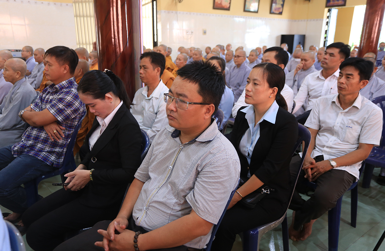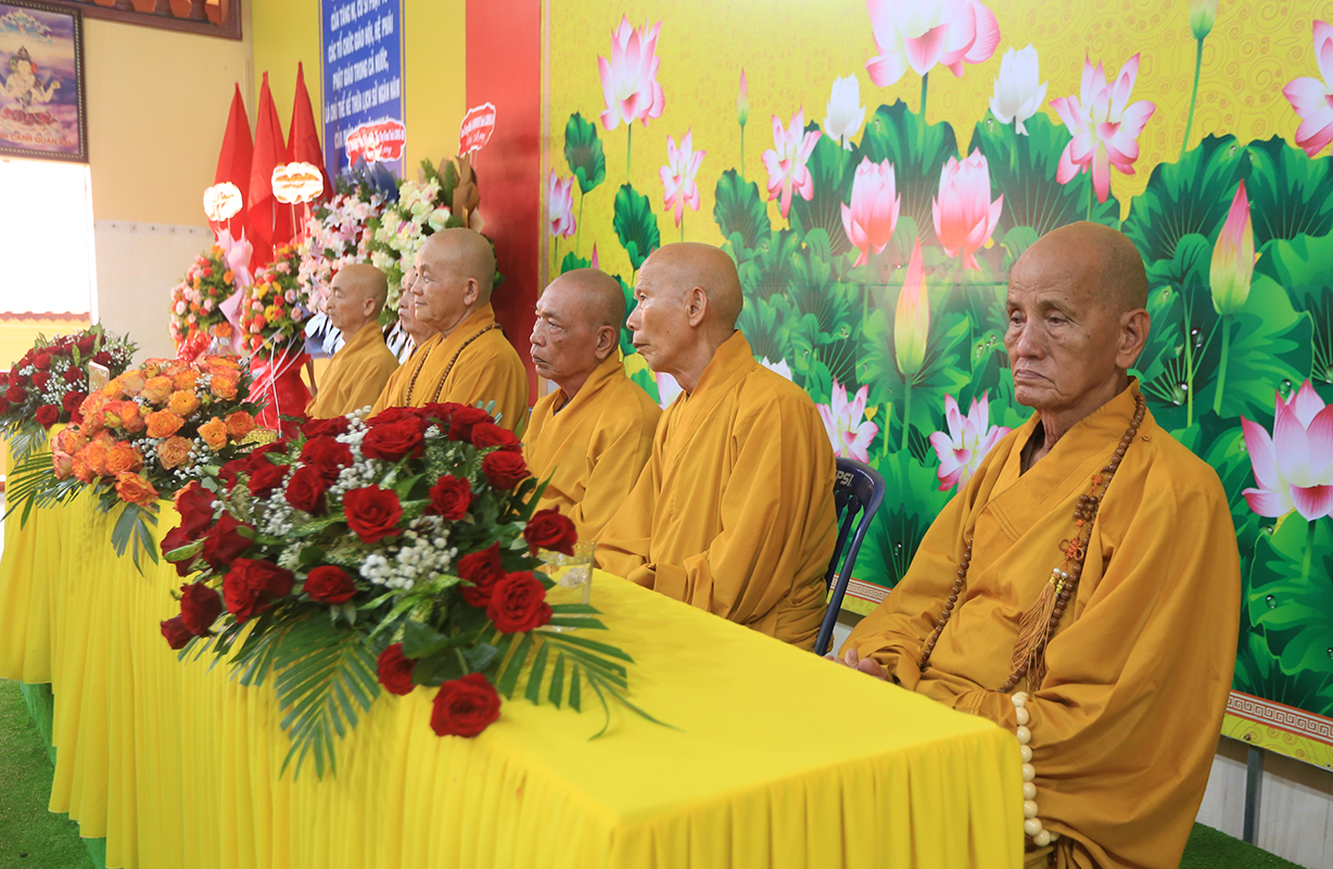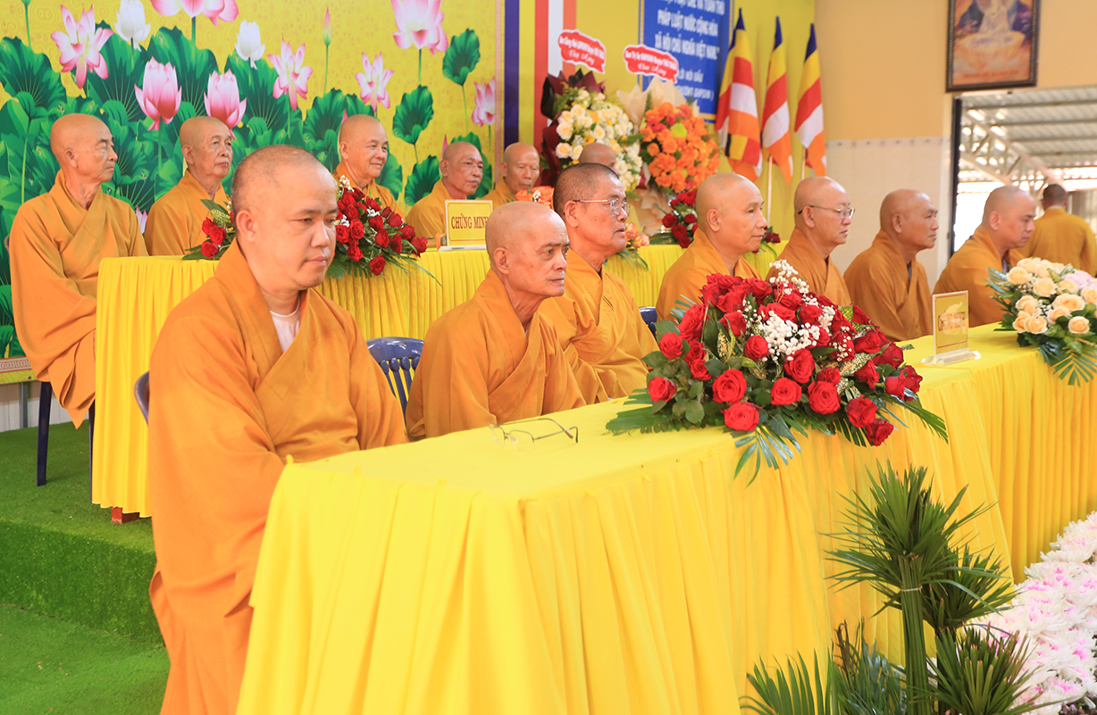 Chứng minh tham dự buổi lễ có, HT Thích Thiện Huệ – Thành viên HĐCM, Chứng minh BTS GHPGVN tỉnh Long An, HT. Thích Huệ Hồng- HT Thích Thiện Tài, Hòa thượng Thích Quảng Ý- Đồng chứng minh BTS.GHPGVN tỉnh Long An; HT. Thích Minh Thiện- Ủy viên HĐTSTƯ, Phó Ban Hoằng pháp trung ương, Trưởng Ban trị Sự GHPGVN tỉnh Long An, Trưởng Ban tổ chức khóa an cư kiết hạ tỉnh; HT Thích Tắc Phi – Phó Trưởng BTS Kiêm Trưởng Ban Kiểm soát GHPGVN tỉnh Long An, TT. Thích Quảng Tâm- Ủy viên HĐTSTƯ, Phó thường Trực Ban Trị sự GHPGVN tỉnh Long An. Chư Tôn đức Thường trực BTS GHPGVN tỉnh Long An, Chư tôn đức Thường trực BTS các huyện, thị xã, thành phố trong tỉnh, chư tôn đức ban chức sự và hành giả an cư các hạ trường trong toàn tỉnh đồng trở về tham dự.
