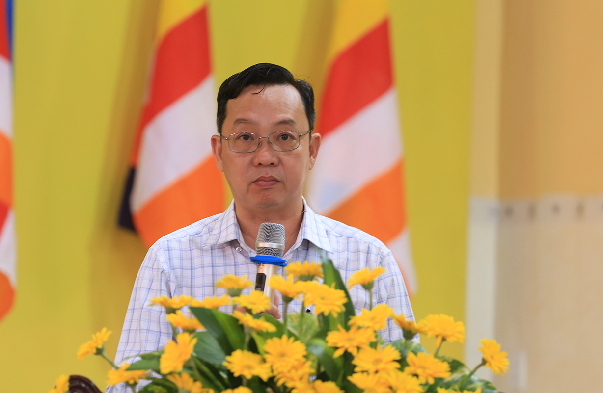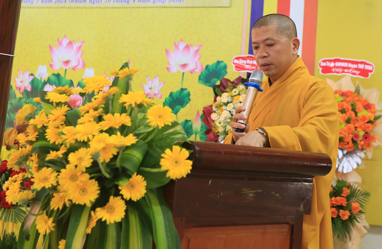 Đại đức Thích Lệ Duyên – Phó trưởng Ban, Chánh Thư ký BTS GHPGVN tỉnh Long An đã phát biểu cảm tạ, tri ân chư tôn đức hoàn mãn buổi lễ.