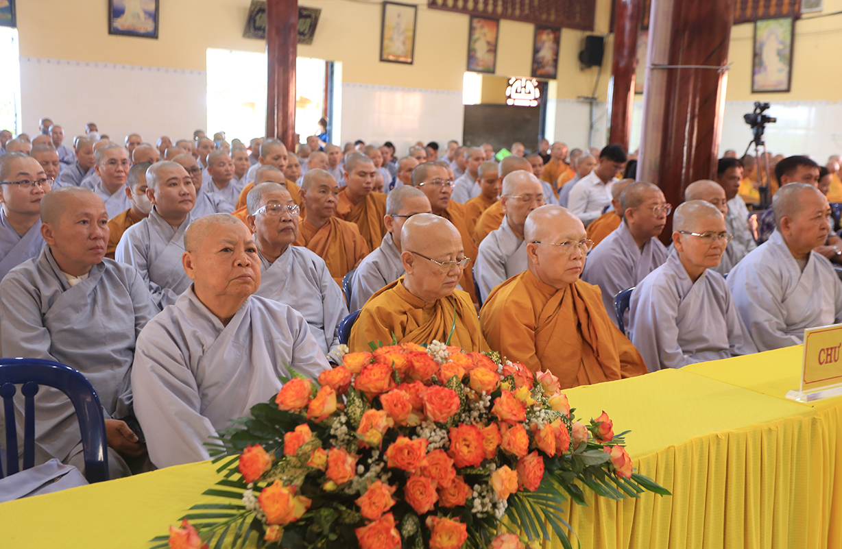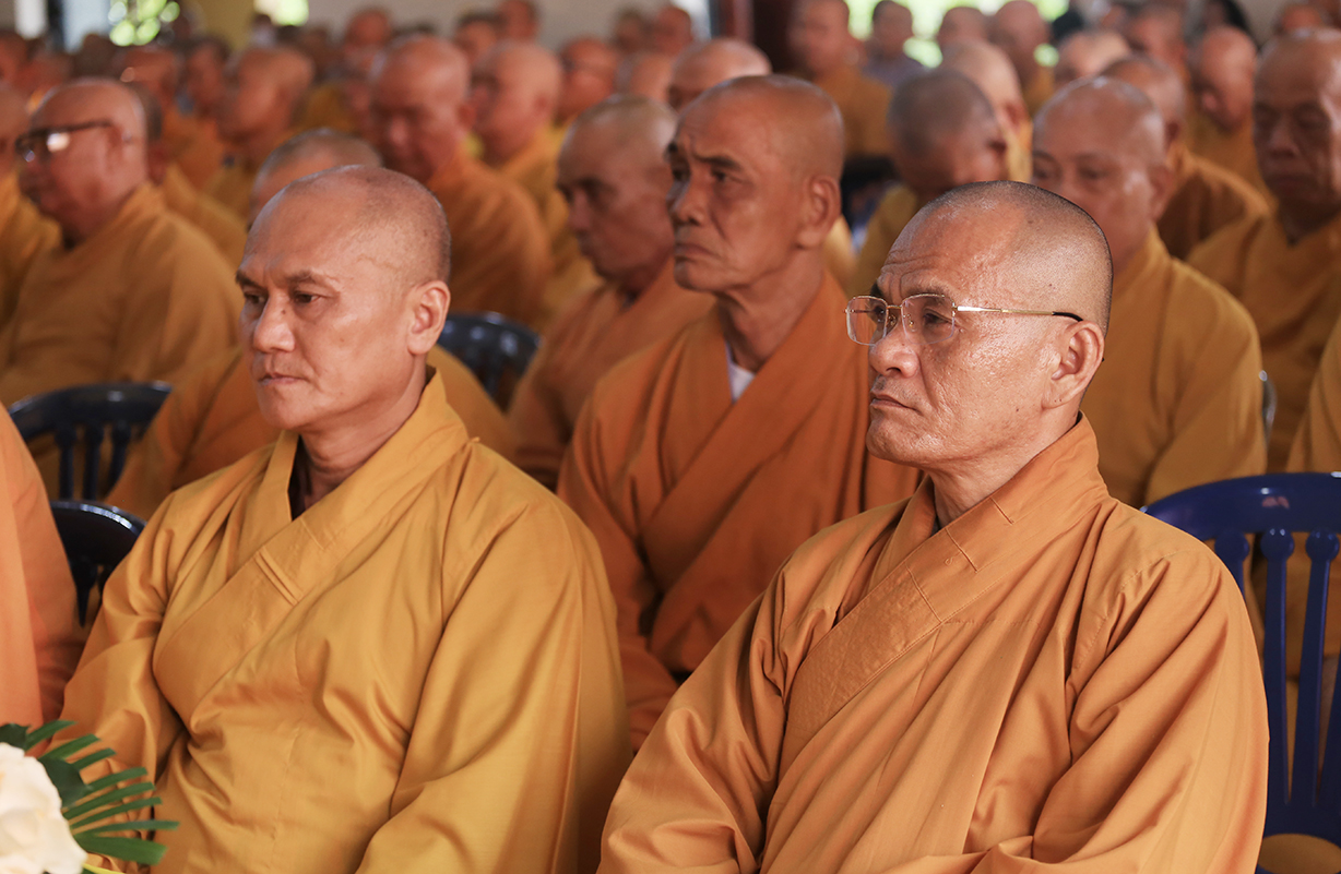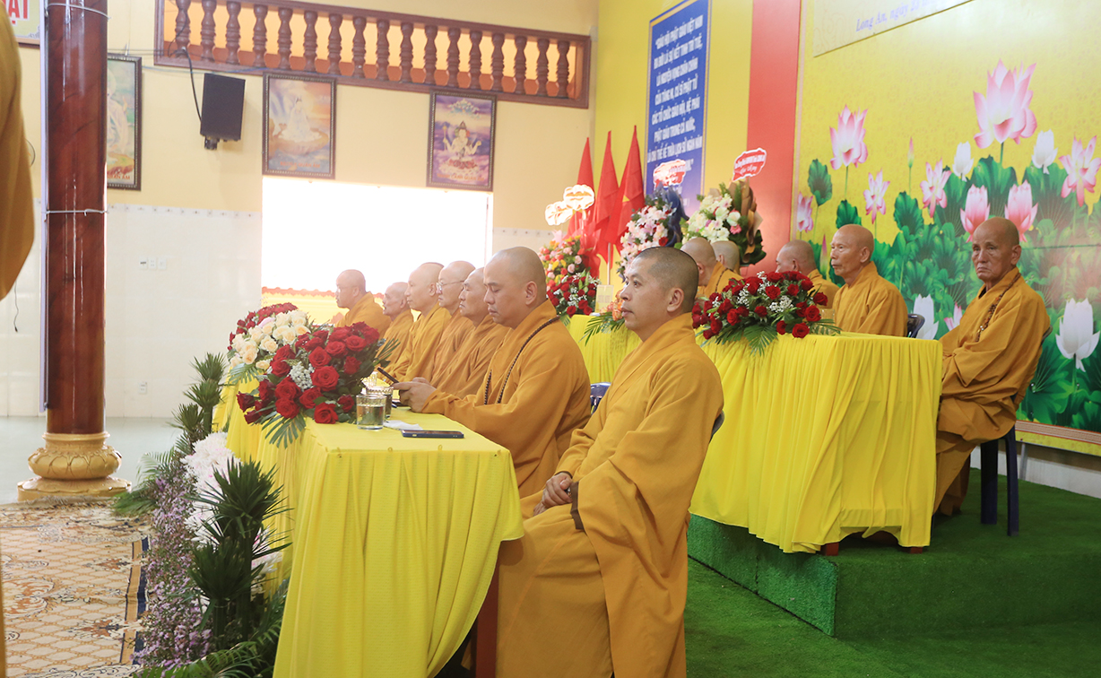 Ban đạo từ tail buổi lễ, Hòa thượng Thích Thiện Huệ – Thành viên HĐCM, Chứng ming BTS GHPGVN tỉnh Long An, Hòa thượng hoan hỷ với thời khóa tu học được báo cáo trong chương trinh tu học tại các Hạ trường, Hòa thượng nhấn mạnh việc chuyên tu tu tập của Tăng, Ni trong thời điểm hiện tại để tăng cường đạo lực nơi tự tâm của mình, để giữ vững hoạt động Tăng đoàn, kế thừa mạng mạch Phật pháp tại thế gian, Hòa thượng mong rằng trong ba tháng an cư chư Hành giả sẽ chuyên tâm tu học thật tốt để gia cố niềm tin Tam bảo đối với tín đồ Phật tử trước những biến cố xã hội mà Phật giáo đang chịu ảnh hưởng.