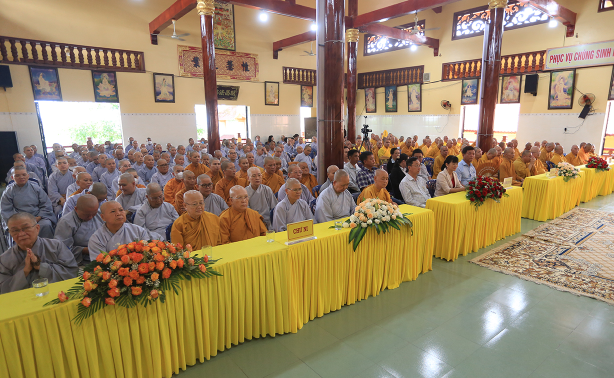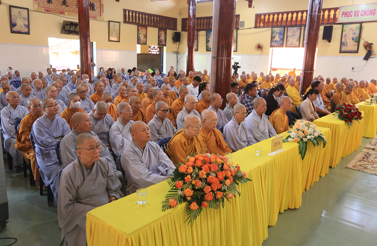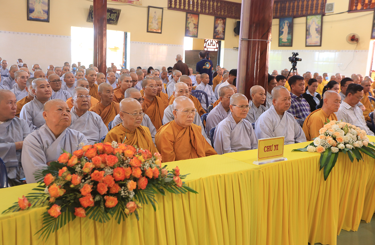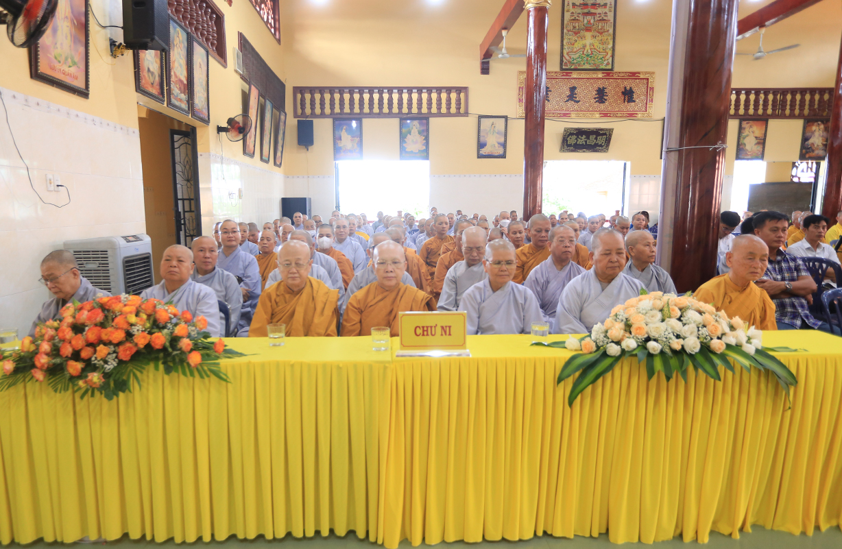 Ban đạo từ tail buổi lễ, Hòa thượng Thích Thiện Huệ – Thành viên HĐCM, Chứng ming BTS GHPGVN tỉnh Long An, Hòa thượng hoan hỷ với thời khóa tu học được báo cáo trong chương trinh tu học tại các Hạ trường, Hòa thượng nhấn mạnh việc chuyên tu tu tập của Tăng, Ni trong thời điểm hiện tại để tăng cường đạo lực nơi tự tâm của mình, để giữ vững hoạt động Tăng đoàn, kế thừa mạng mạch Phật pháp tại thế gian, Hòa thượng mong rằng trong ba tháng an cư chư Hành giả sẽ chuyên tâm tu học thật tốt để gia cố niềm tin Tam bảo đối với tín đồ Phật tử trước những biến cố xã hội mà Phật giáo đang chịu ảnh hưởng.