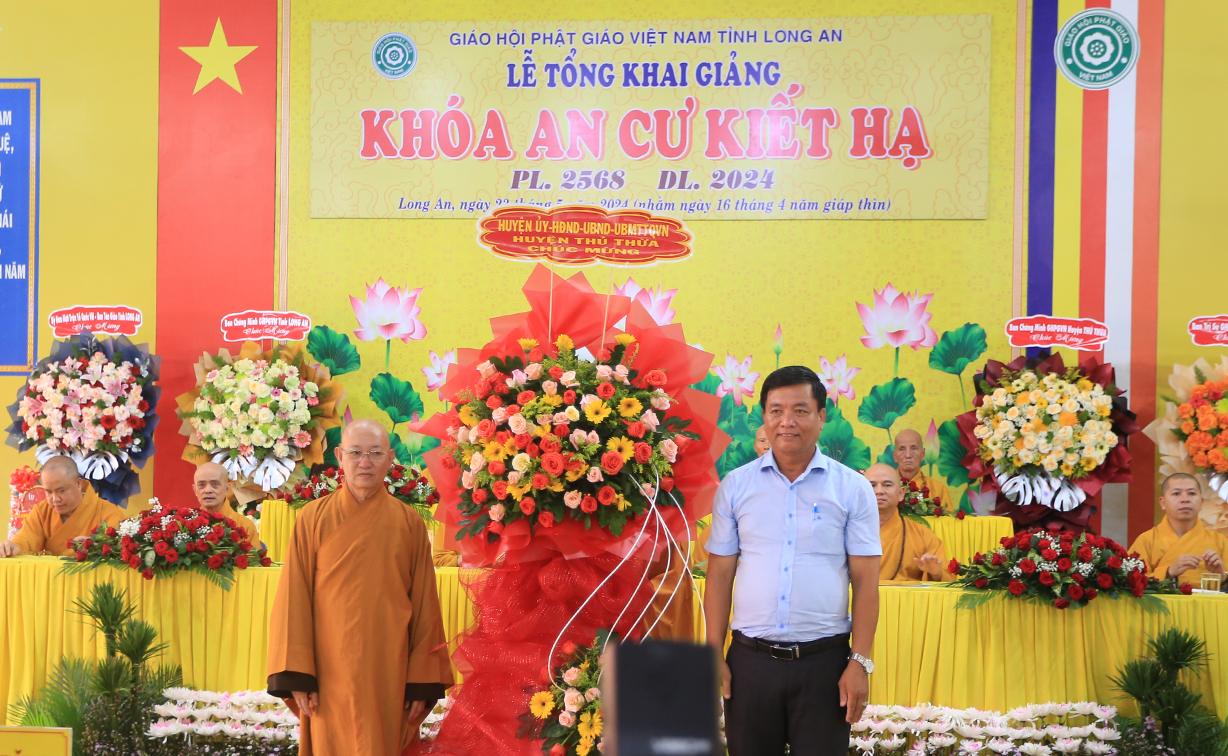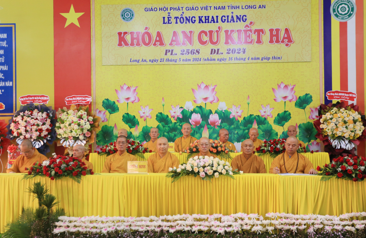 Thực hiện theo hướng dẫn của Hội đồng Trị sự Trung ương GHPGVN tại Thông bạch số 089/TBHĐTS ngày 28 tháng 3 năm 2024 về việc tổ chức An cư Kiết hạ PL. 2568 – DL 2024. Thực hiện theo kế hoạch tổ chức khóa An cư Kiết Hạ của Phật giáo tỉnh Long An năm 2024. Sáng ngày 23 tháng 5 năm 2024 (nhằm ngày 16 tháng 4 năm Giáp Thìn) Thường trực Ban trị sự GHPGVN tỉnh Long An long trọng tổ chức lễ tổng Khai giảng Khóa An cư cho 13 trú xứ An cư tỉnh Long An tại Chùa Kim Cang, huyện Thủ thừa, tỉnh Long An.
