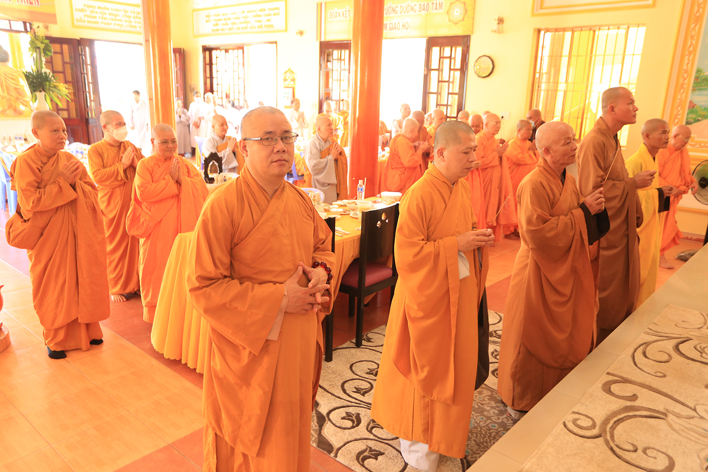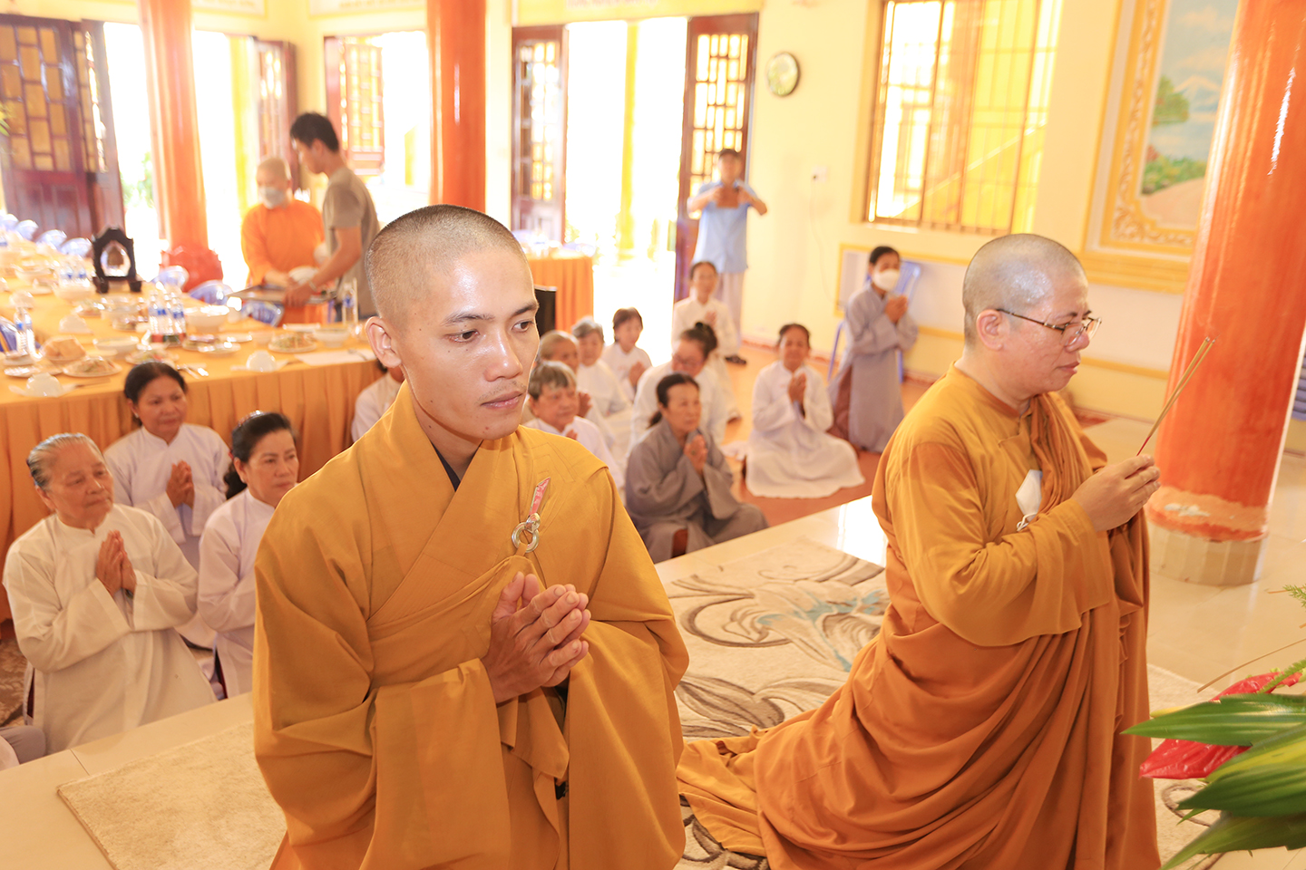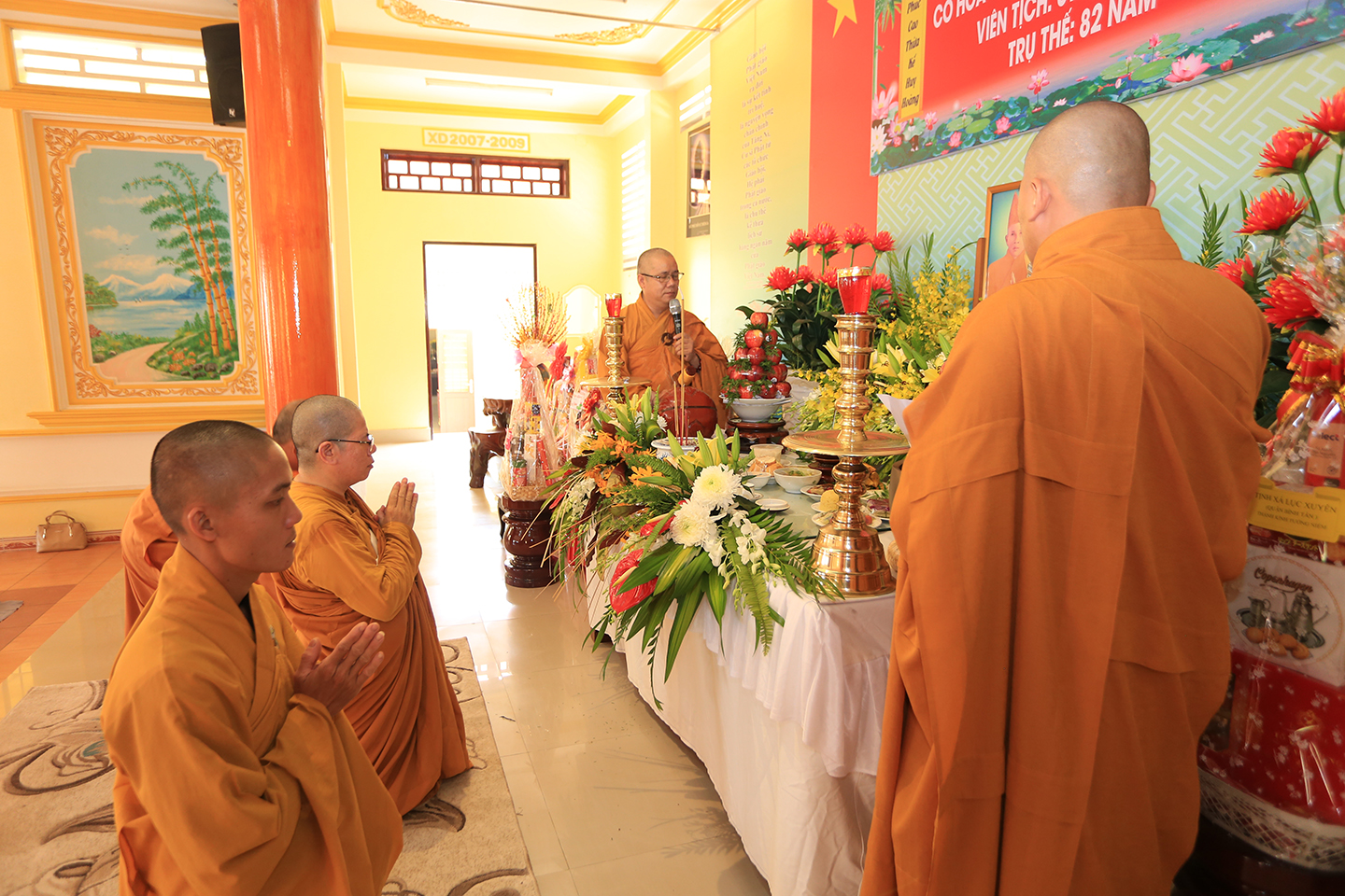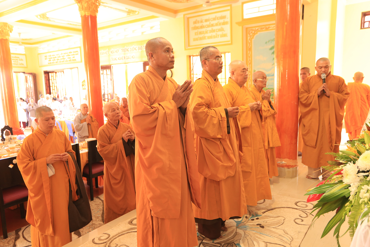 Tại buổi lễ môn đồ pháp quyến cung thỉnh chư Tôn đức h sư thực hiện khóa lễ tụng kinh, cúng Ngọ, cúng Tiến giác linh