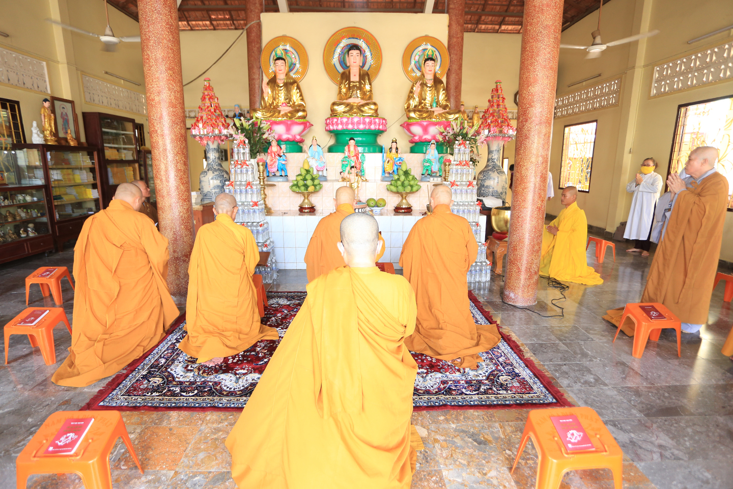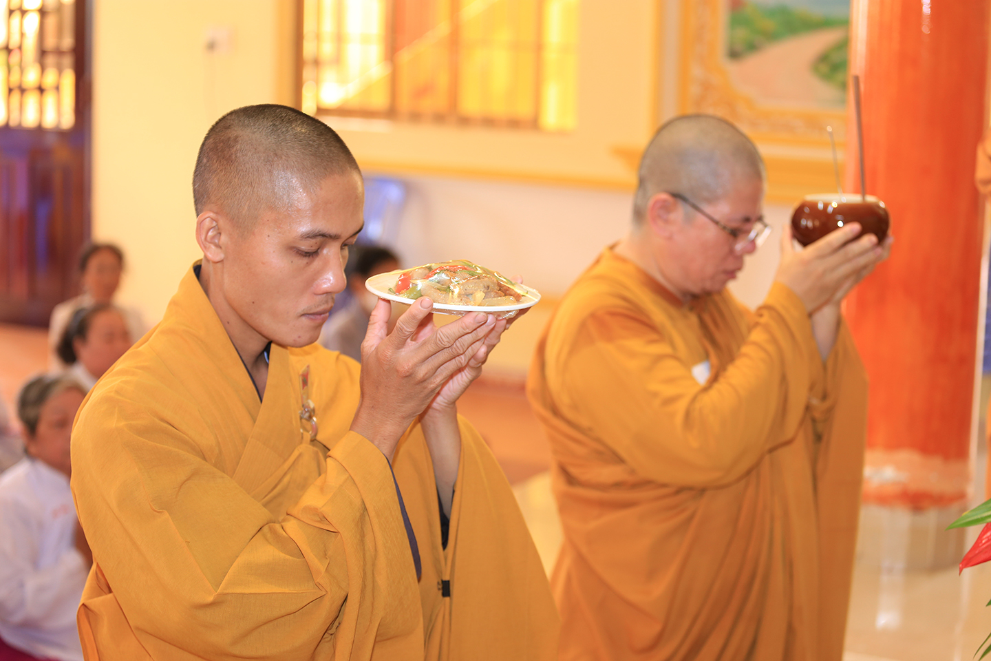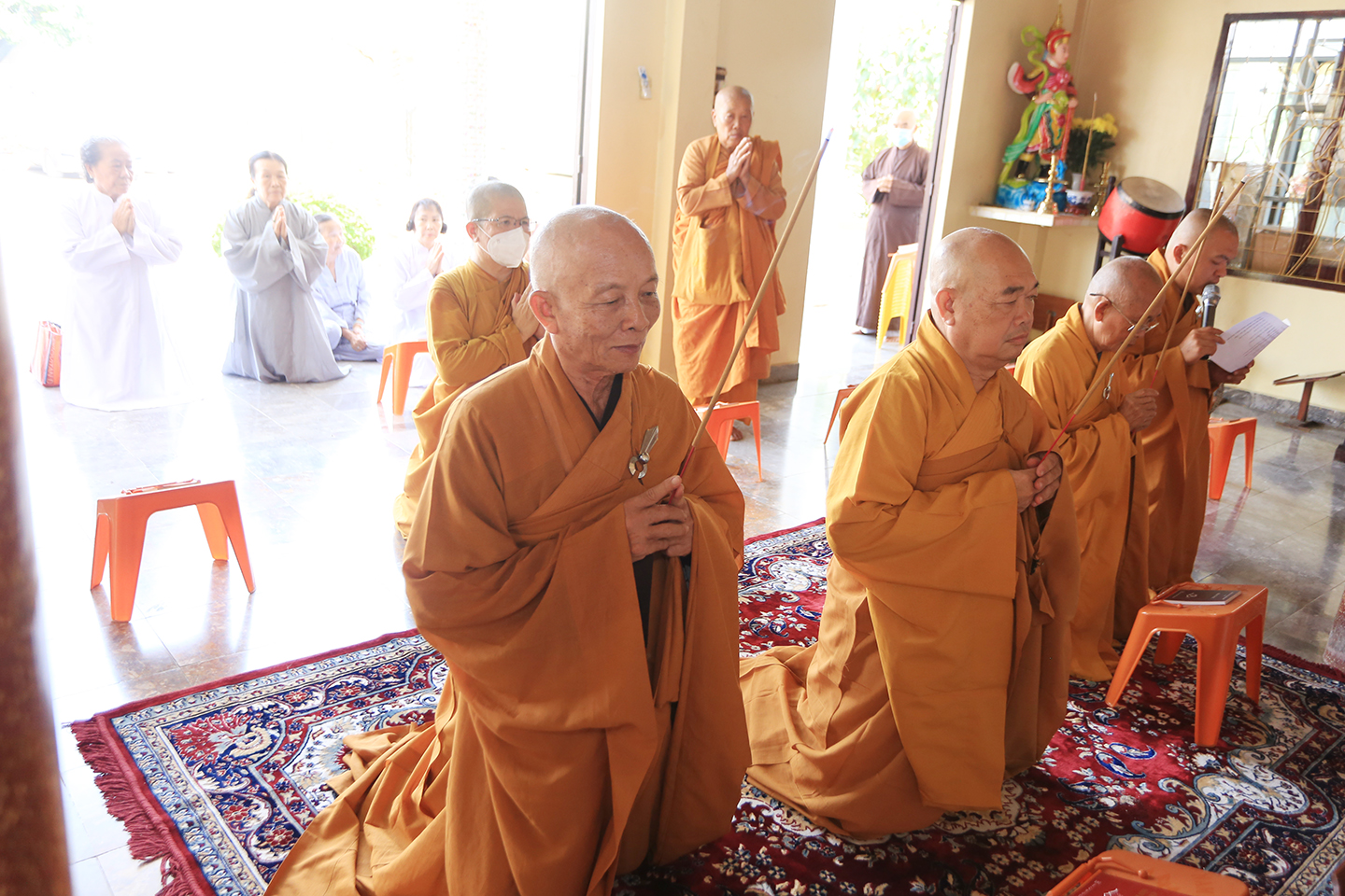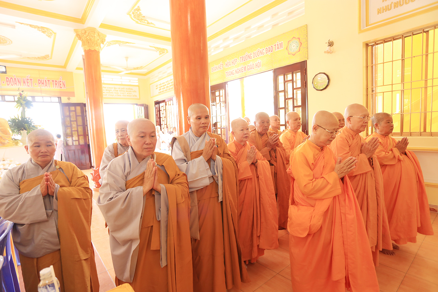 Tại buổi lễ môn đồ pháp quyến cung thỉnh chư Tôn đức h sư thực hiện khóa lễ tụng kinh, cúng Ngọ, cúng Tiến giác linh