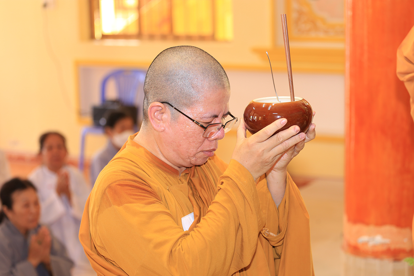 Sau khóa lễ, Ni Sư Thích Nữ Thường Liên – Trụ trì chùa Châu Long, đối trước chư Tôn thiền đức tác pháp cung thỉnh chư Tôn đức thành kính thắp hương tưởng niệm, nhất tâm cầu nguyện Giác linh cố Hòa thượng cao đăng thượng phẩm.