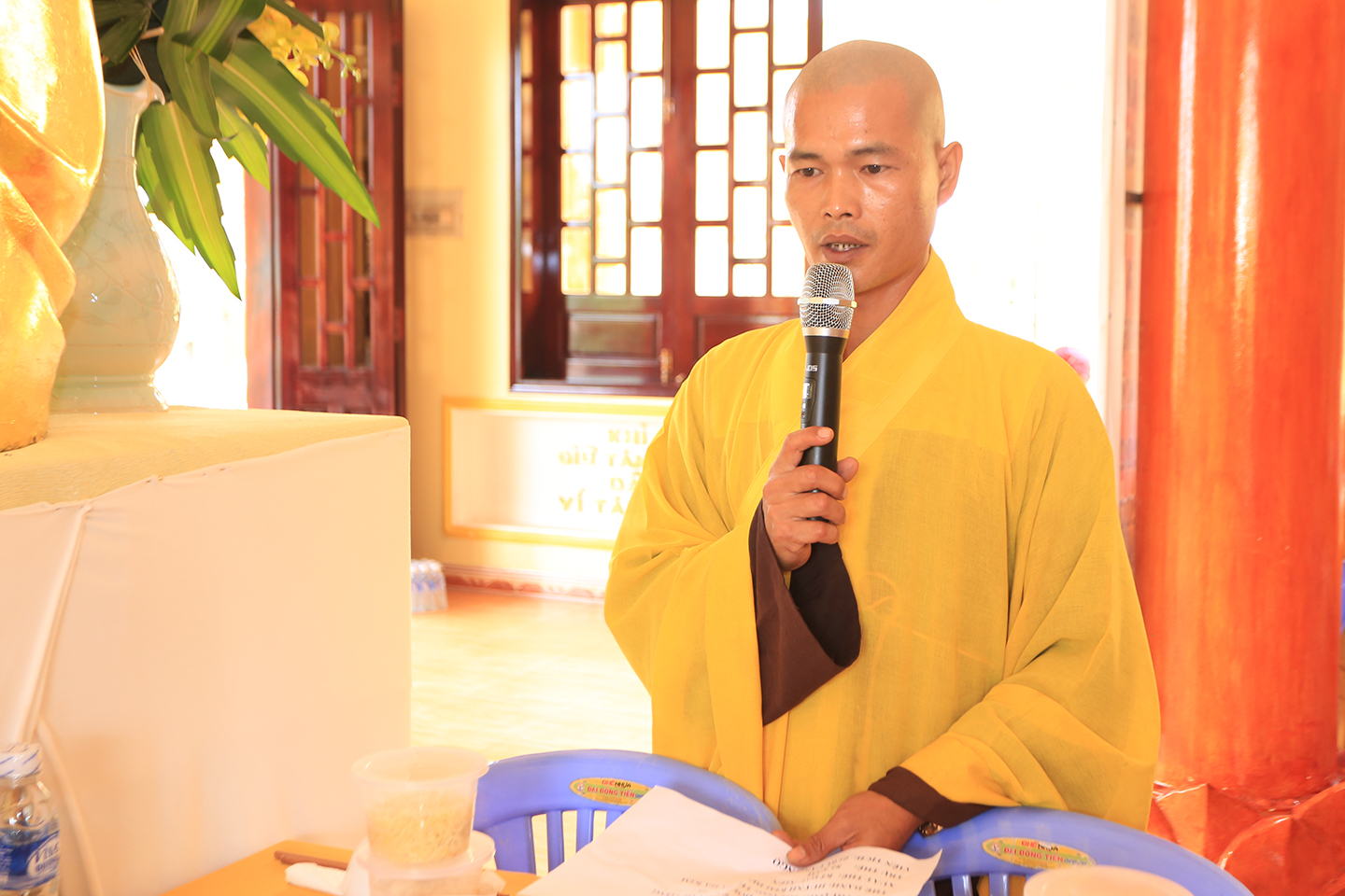 Chứng minh tham dự buổi lễ chư Tôn đức giáo phẩm TT Thích Minh Thọ- Ủy viên HĐTSTƯ, Phó Ban trị sự GHPGVN tỉnh Long An; TT. Thích Minh Thạnh- Chứng minh Ban Trị sự Phật giáo huyện Châu Thành; ĐĐ. Thích Huệ Quang– Trưởng Ban Trị sự Phật giáo huyện Châu Thành; ĐĐ. Thích Thiện Danh- Phó thư ký, Chánh Văn phòng BTSGHPGVN tỉnh, Phó thường trực BTSGHPGVN huyện Châu Thành; cùng chư Tôn đức Thường trực huyện, thị, trong và ngoài tỉnh về tham dự.