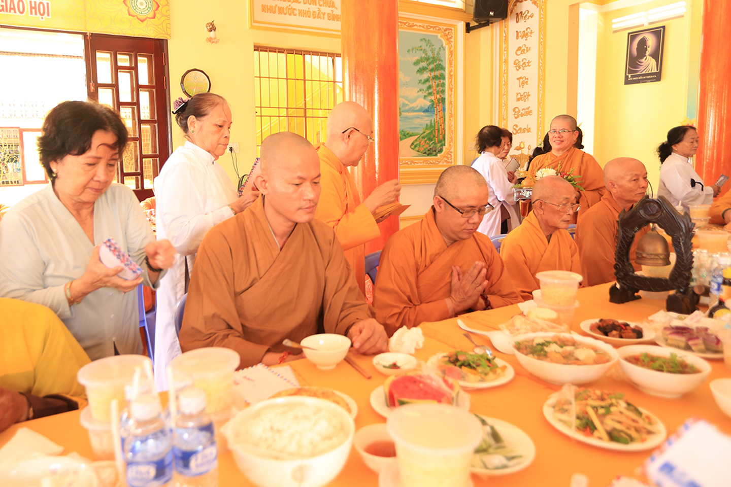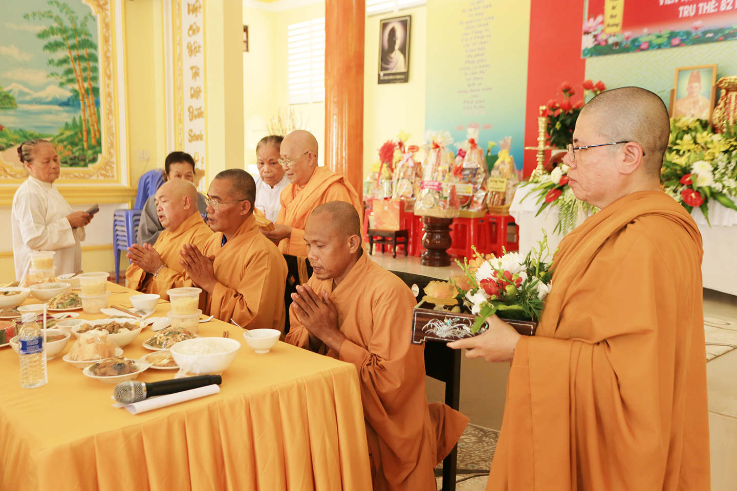 Dịp này, môn đồ đệ tử cũng đã thiết lập trai Tăng, cúng dường lên chư tôn đức giáo phẩm để tỏ lòng hiếu đạo.