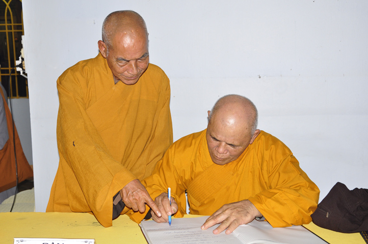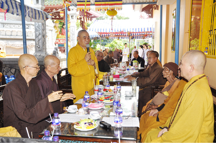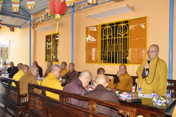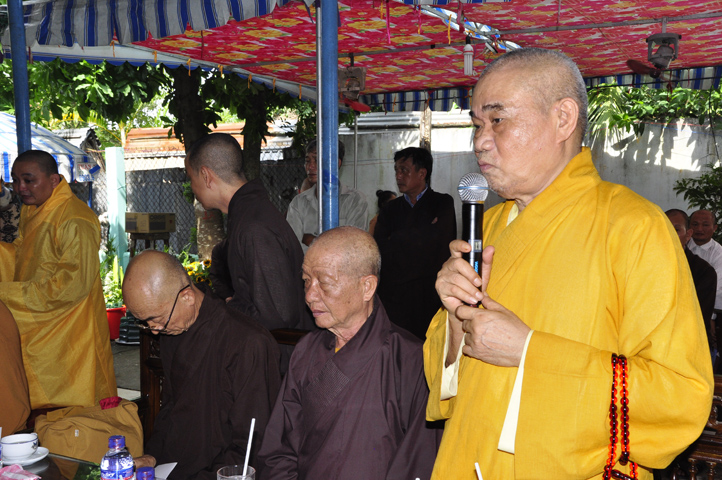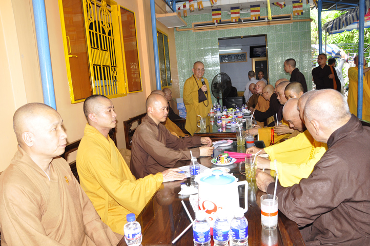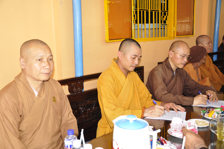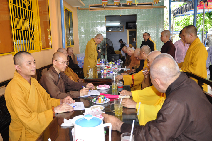 14 giờ 30, Lễ nhập kim quan, thành phục kết thúc, HT. Thích Minh Thiện – Trưởng ban tổ chức Tang lễ đã chủ trì cuộc họp với Ban Trị sự PG huyện Cần Giuộc, cùng môn nhân pháp quyến, chư Tôn đức môn phong Thiên Thai Giáo Quán tông, để thống nhất chương trình Tang lễ trong các ngày tiếp theo cho đến khi Nhập tháp.