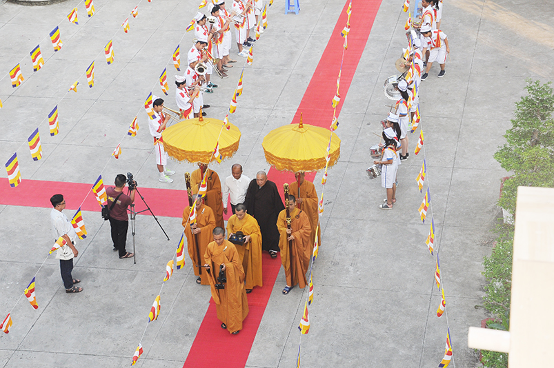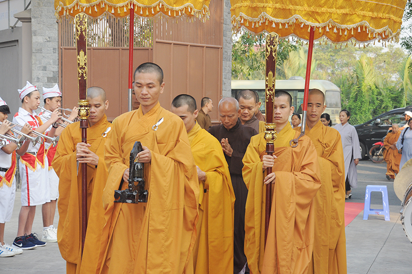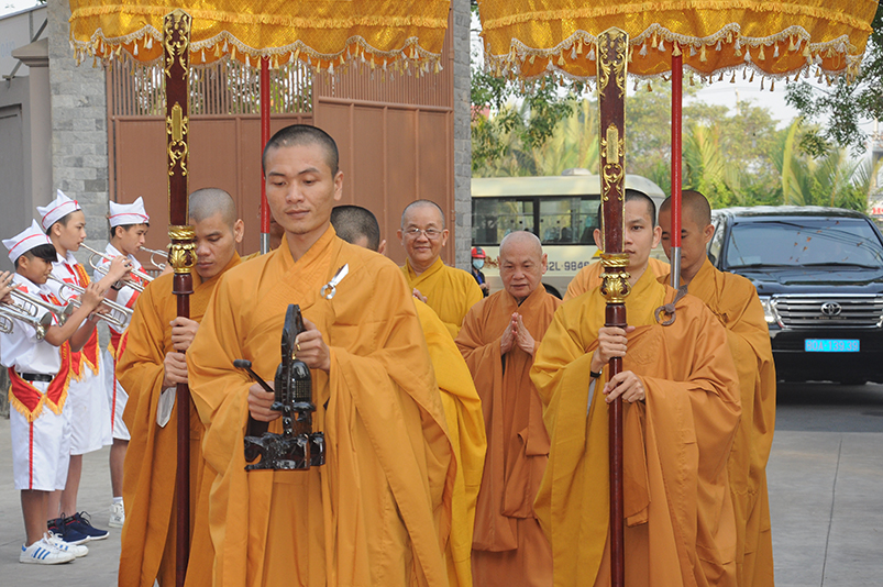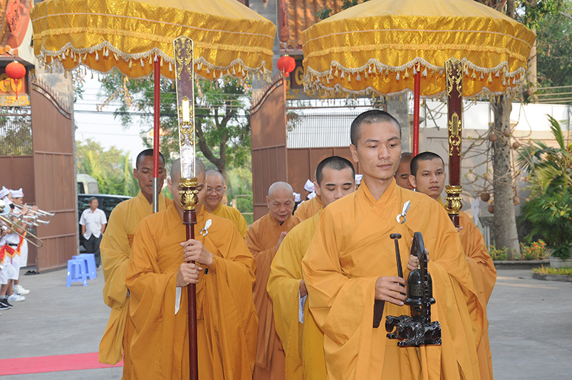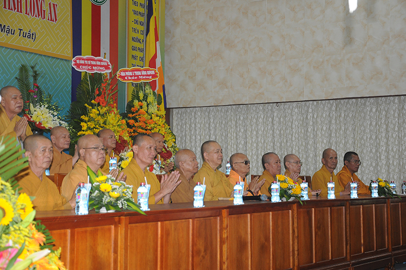 Thành phần chư Tôn đức Giáo phẩm TW chứng minh buổi lễ, Ban Trị sự Phật giáo tỉnh Long An trân trọng cung đón: Trưởng lão HT. Thích Thiện Nhơn – Chủ tịch HĐTSTW GHPGVN; HT. Thích Thiện Pháp – Phó Chủ tịch thường trực HĐTS kiêm trưởng ban Tăng sự trung ương; Thích Tấn Đạt – Uỷ viên thường trực HĐTSTƯ, Phó Ban Hoằng pháp trung ương.