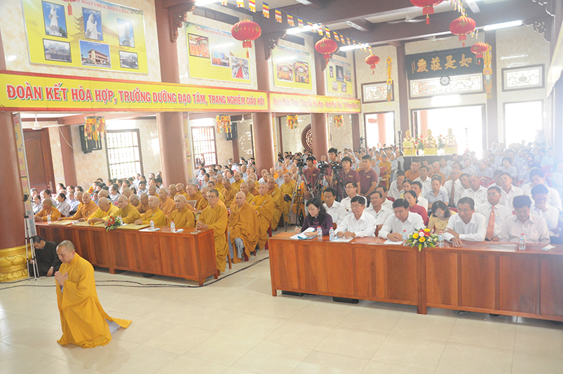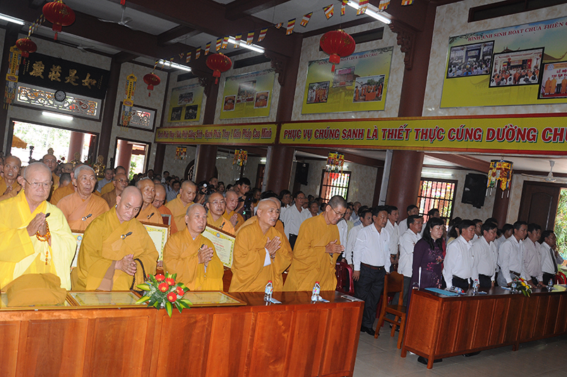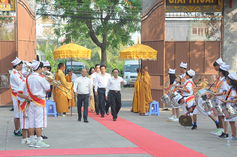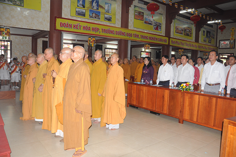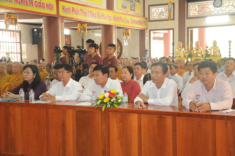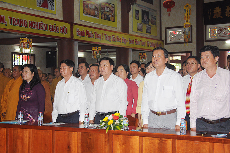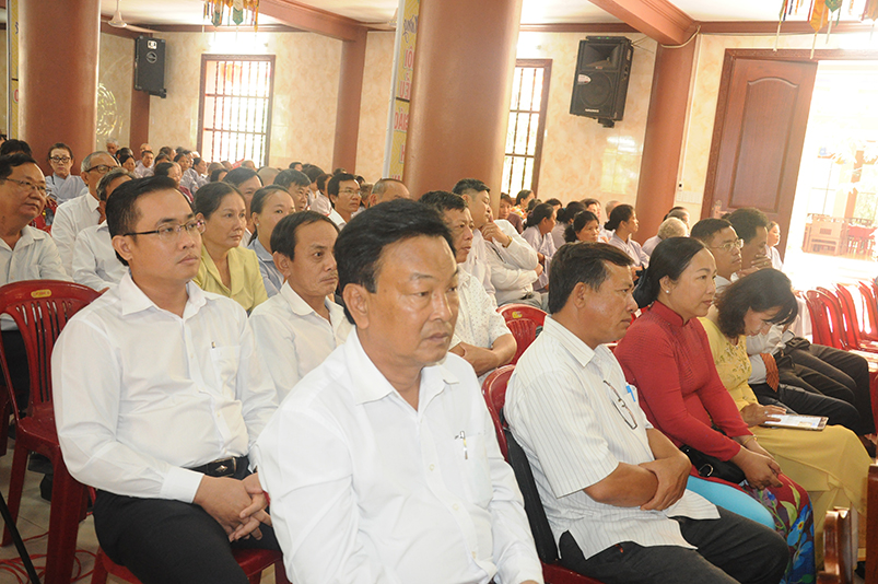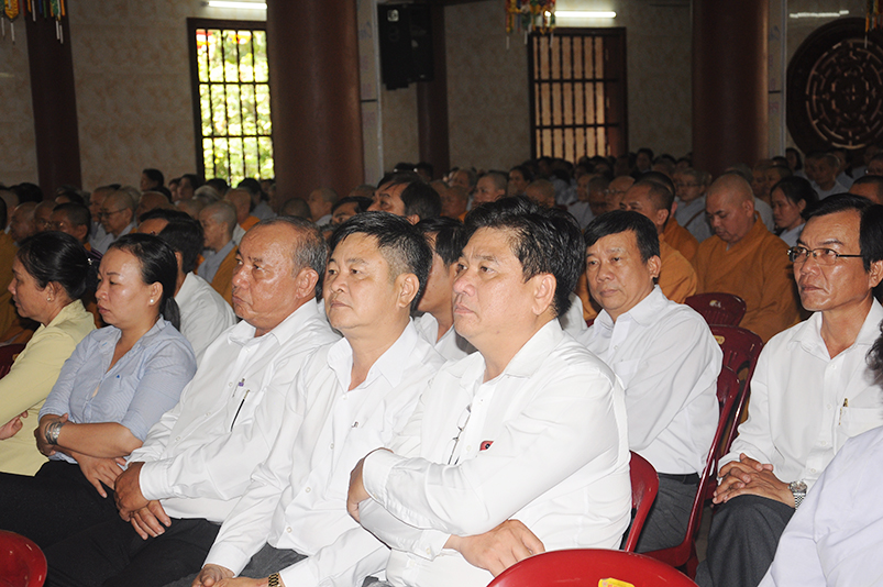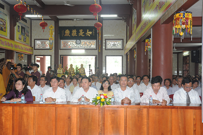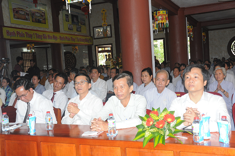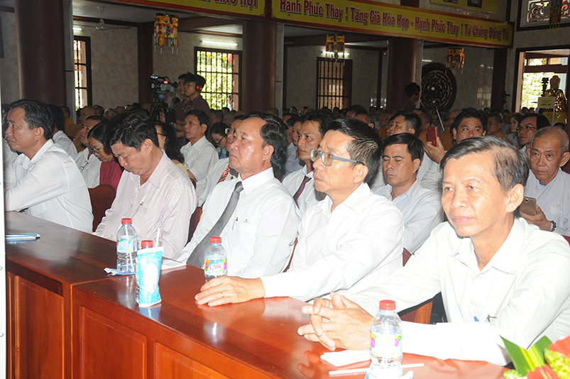 Về khách quý lãnh đạo chính quyền các cấp tỉnh: Ông Võ Lê Tuấn- Nguyên Chủ tịch MTTQVN tỉnh Long An; Bà Phạm Ngọc Tiệp- Phó chủ tịch MTTQVN tỉnh Long An; Ông Công Hòang Bạch- Phó Ban Dân vận tỉnh uỷ tỉnh Long An; Ông Huỳnh Văn Thừng- Phó giám đốc sở Nội vụ- Trưởng Ban Tôn giáo tỉnh Long An; cùng quý vị đại diện Ban Dân vận huyện uỷ- UBND- UBMTTQ các huyện thị xã thành phố sở tại và gần 500 Phật tử trong các đoàn Phật giáo huyện thị về tham dự.