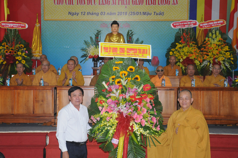 Để chúc mừng sự kiện tốt đẹp này, HT. Thích Thiện Nhơn , cấp lãnh đạo tối cao của Giáo hội đã chân tình tặng lẵng hoa chúc mừng. Đại diện cấp lãnh đạo tỉnh Long An, Ông Công Hoàng Bạch cũng đã trao tặng lẵng hoa chúc mừng Ban tổ chức. Ngoài ra, Ban Tổ chức còn nhận được nhiều lẵng hoa chúc mừng từ chư Tôn Hòa thượng và các đơn vị Phật giáo huyện, thị, tỉnh thành bạn.