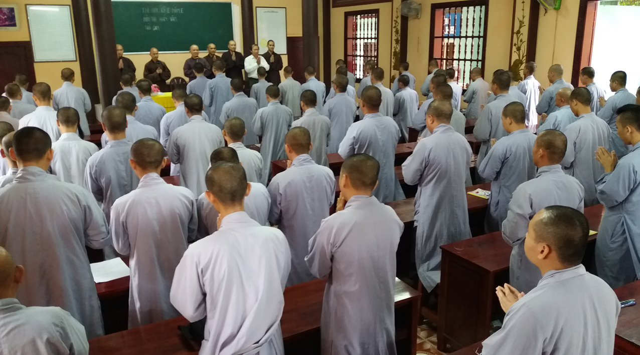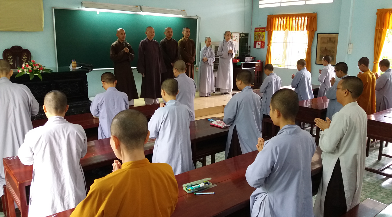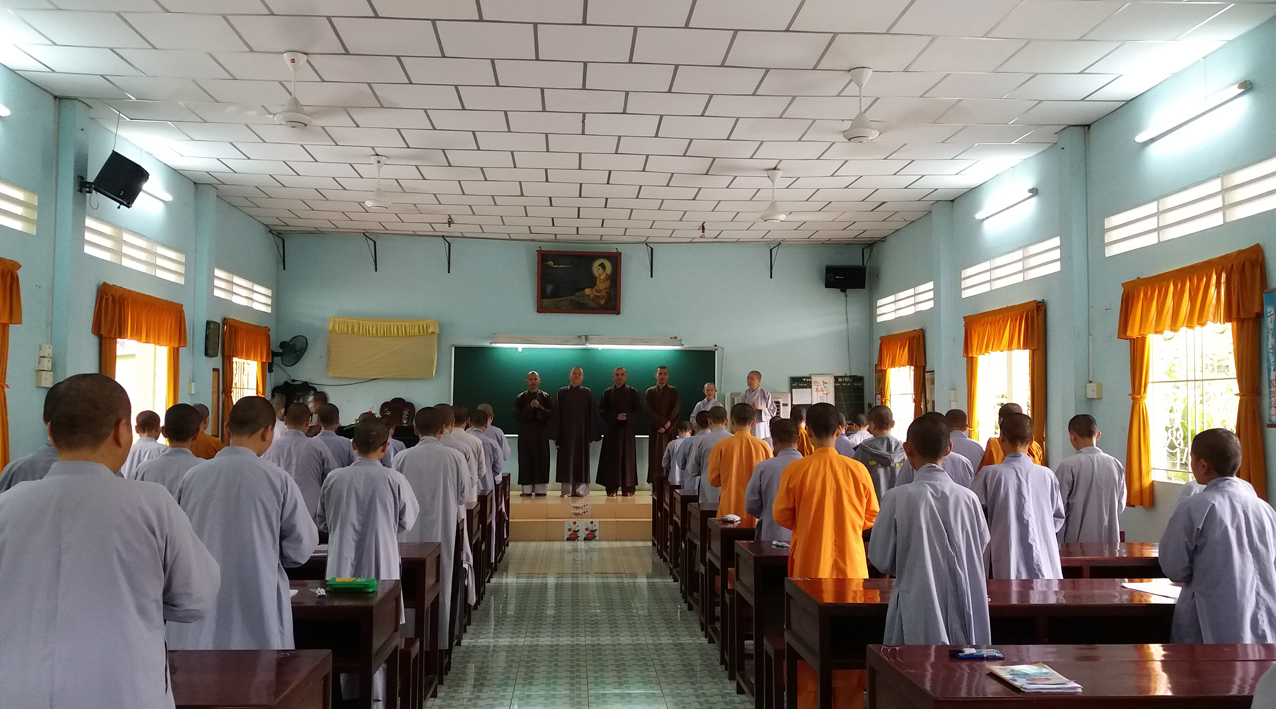 Sau khi khai mạc, khích lệ các Tăng Ni sinh tại hai điểm trường, mỗi nơi, HT. Hiệu trưởng đều thân hành tham quan phòng thi, hướng dẫn và ân cần dặn dò các Giám thị, cố gắng hạn chế những điều sơ suất đáng tiếc, bảo đảm quy trình thi cử tốt đẹp.