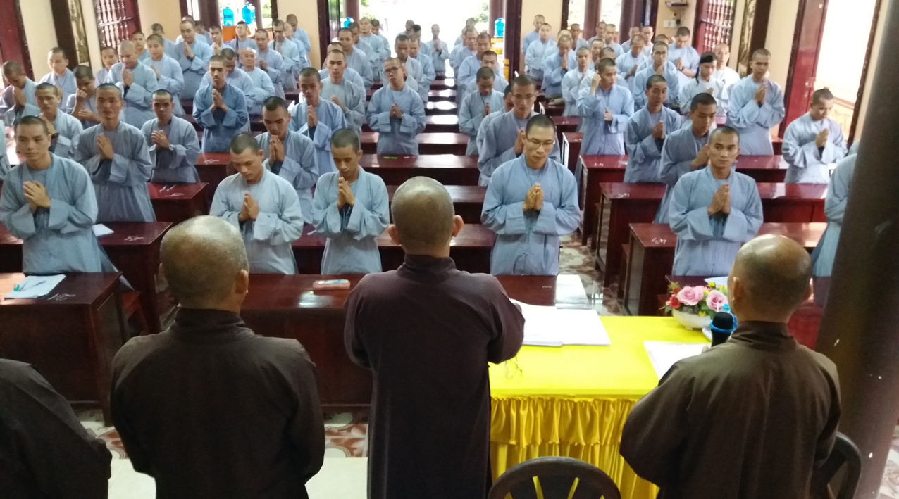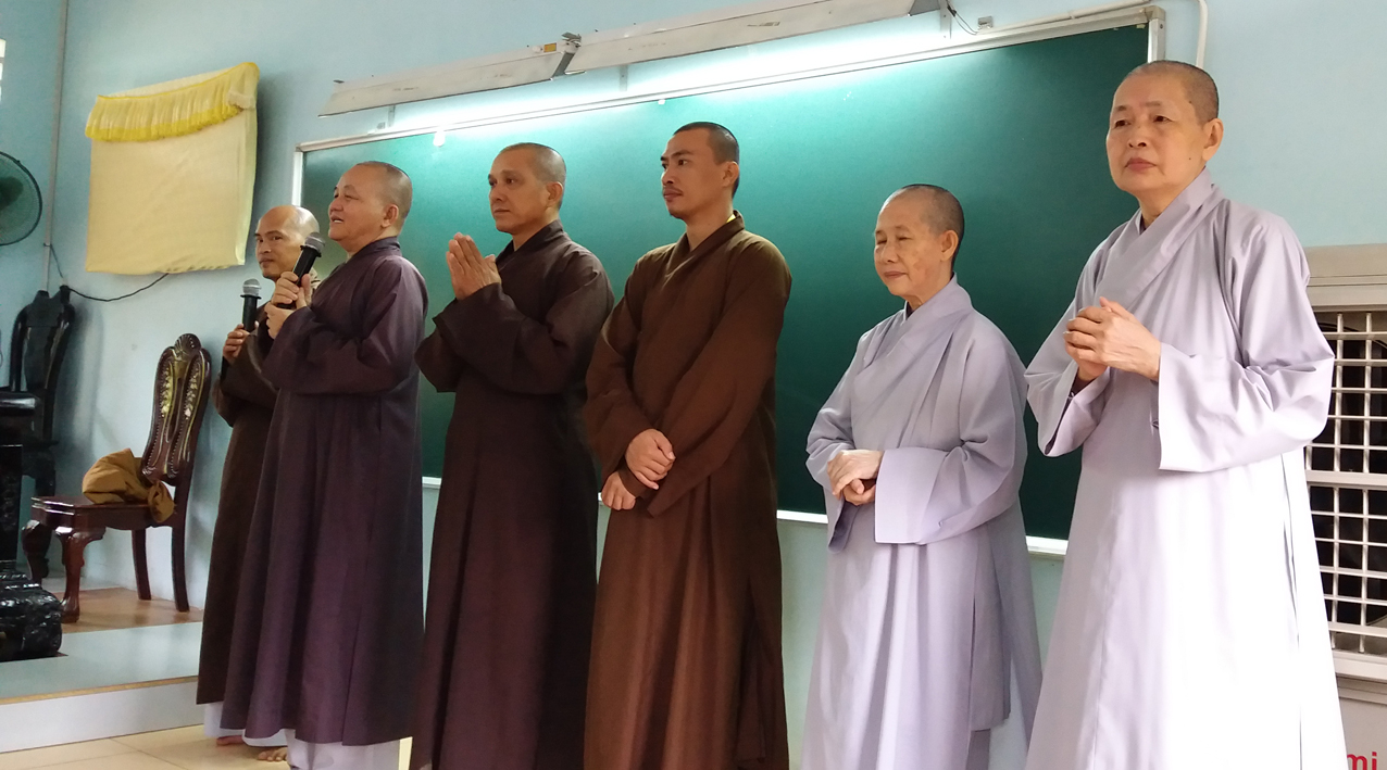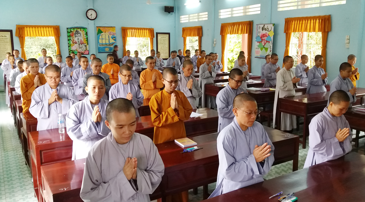Khởi đầu ngày thi, HT. Thích Minh Thiện – Hiệu trưởng Trường Trung cấp Phật học, Trưởng ban Trị sự GHPGVN tỉnh Long An đã thân lâm chứng minh khai mạc, ân cần sách tấn, khích lệ các Tăng Ni sinh tại hai điểm thi.