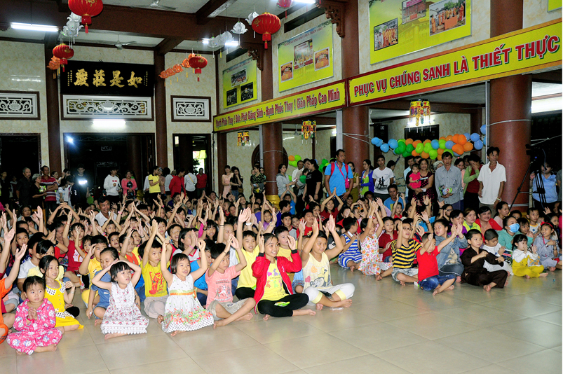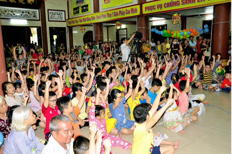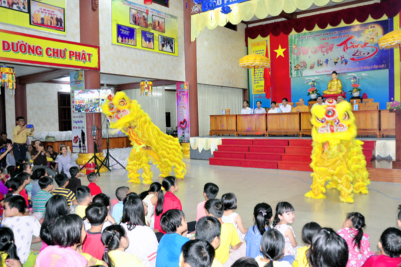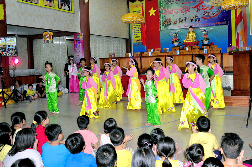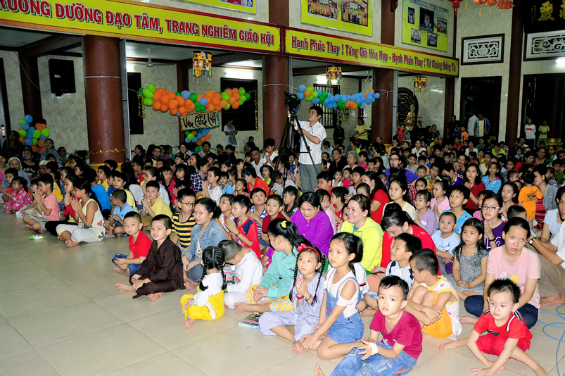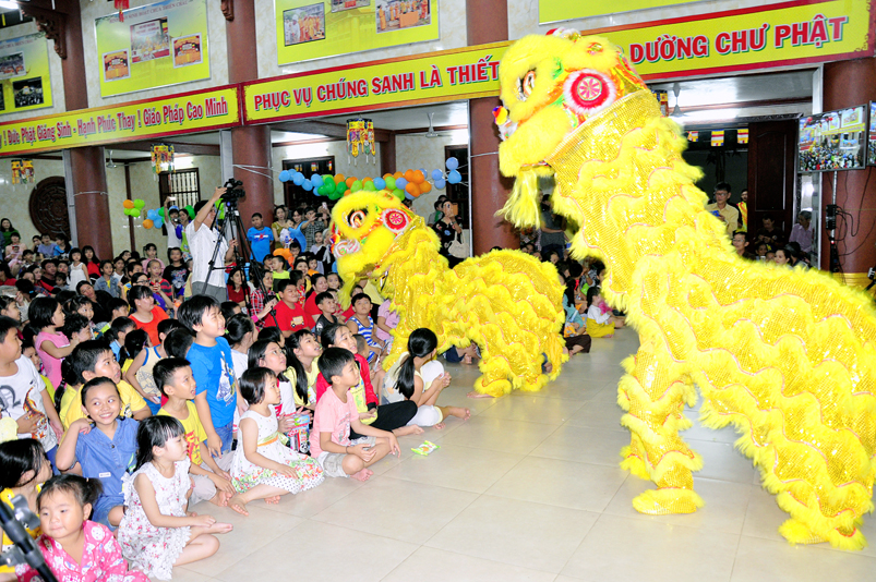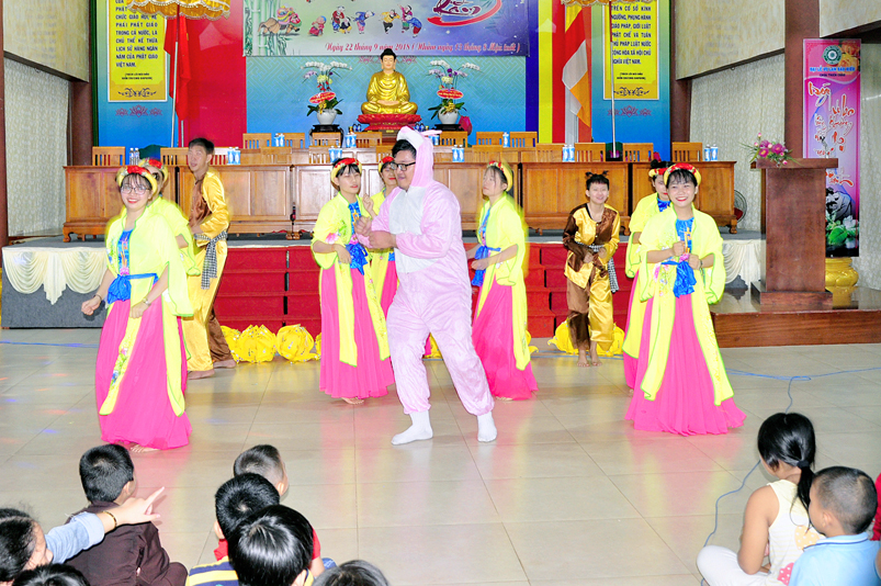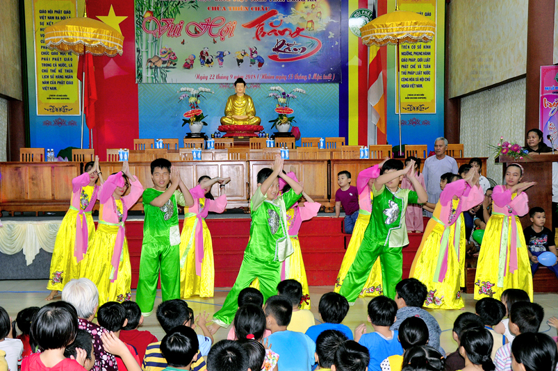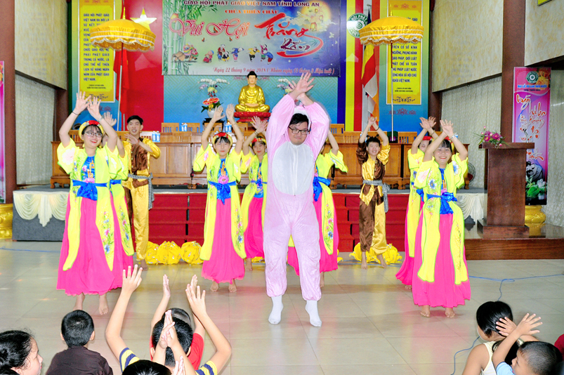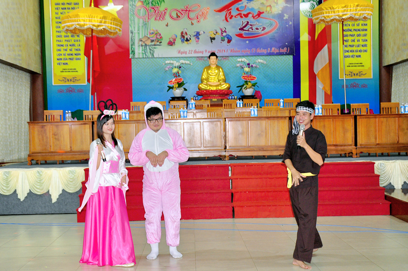 Chương trình trung thu năm nay, với nhiều tiết mục vui nhộn như múa lân, trò chơi dân gian, ảo thuật, nhiều bài múa do các anh chị trong nhóm tình nguyện viên và các em thiếu nhi chùa Thiên Châu biểu diễn.