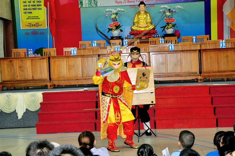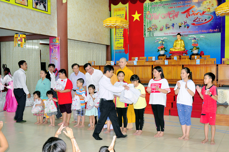 Tại đêm hội, các em được lắng nghe Đại đức Thích Huệ Dũng tuyên đọc thư chúc tết của Bác Trần Đại Quang (Chủ tịch nước CHXHCNVN ) gửi cho các cháu thiếu nhi 2018. Đặc biệt các em được lắng nghe Đại đức Thích Lệ Trí thay lời Hoà Thượng Thích Minh Thiện( trụ trì chùa Thiên Châu) chúc tết đến các cháu nhi đồng. Đại đức đã động viên các cháu cố gắng phấn đấu học tập để trở thành những người con ngoan, trò giỏi, người có ích cho xã hội.