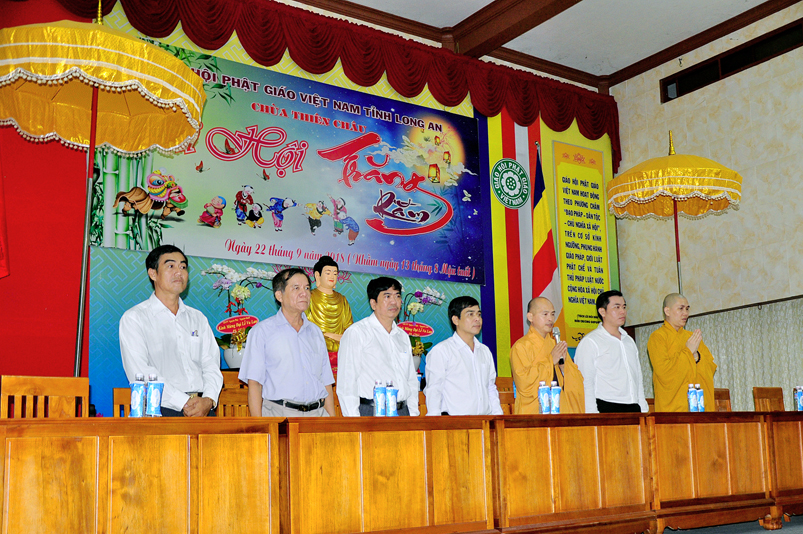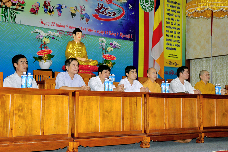 Chứng minh đêm hội có Đại đức Thích Lệ Trí- Uỷ viên HĐTSTƯ, Trưởng Ban giáo dục Tăng Ni tỉnh Long An; ĐĐ. Thích Huệ Dũng- Quản sự chùa Thiên Châu; Ông Ngô Thanh Hùng- Phó Chủ tịch UBND phường 3 cùng quý vị đi chung đoàn.