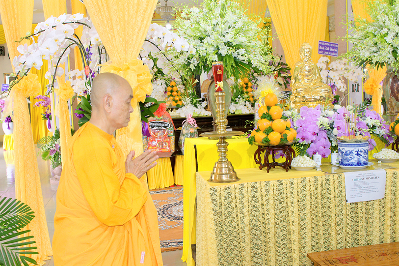 Thật xúc động trước những công hạnh cao quý của Ni trưởng Minh Liên, đã 96 năm cống hiến cho đạo pháp và dân tộc, nay xả báo thân trở về miền tây phương tịnh cảnh. Từ các tỉnh thành Tịnh xá Ngọc Quang Gò Công, TX. Ngọc Cầu Trà Vinh, TX. Ngọc Tân, TX.  Ngọc Lâm, TX. Ngọc Châu, TX. Ngọc Bích  Dầu Tiếng, TX. Ngọc Tân Bình Dương, TX. Ngọc Hiệp, TX. Ngọc Định Đồng Nai, TX. Ngọc Phú Châu Đốc, TX. Ngọc Nguyên Cái Bè Tiềng Giang….. chùa Đức Viên, chùa Long Quang, chùa Thanh Tr, Thiền Viện Trạm Viên, chùa Hồng Viên, chùa An Linh, chùa Bạch Liên, chùa Viên Quang, chùa Vân Long, chùa Thiền An  huyện Long Thành, chùa Liên Hoa huyện Bình Chánh, TX. Ngọc Tháp Mộc Hóa, TX. Ngọc phước, TX. Ngọc Lợi Bạc Liêu, TX. Ngọc Tường Hộ Phòng, TX. Ngọc Uyển Biên Hòa, TX. Ngọc Phú Phú Bổn, các con cháu của Ni trưởng Minh Liên từ hải ngoại, gia đình Ni trưởng Gương Liên, gia đình SC. Hương Liên, gia đình SC. Châu Liên, gia đình SC. Diếp Liên, gia đình SC. Liên Năng, gia đình SC. Liên Lan, gia đình SC. Liên Kính, Đạo tràng Bát Quan Trai TX. Ngọc Tâm, Đạo tràng Niệm Phật Hoa Sen ……hướng dẫn đoàn đến trước án tiền dâng hương tưởng niệm, đảnh lễ cúng dường và thọ tang Ni trưởng.