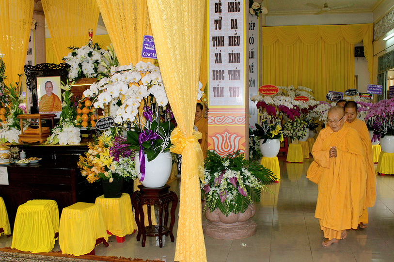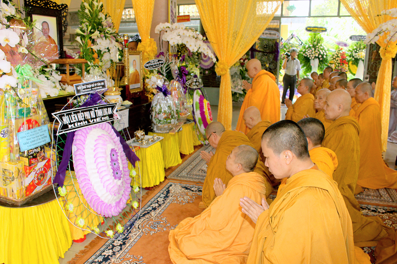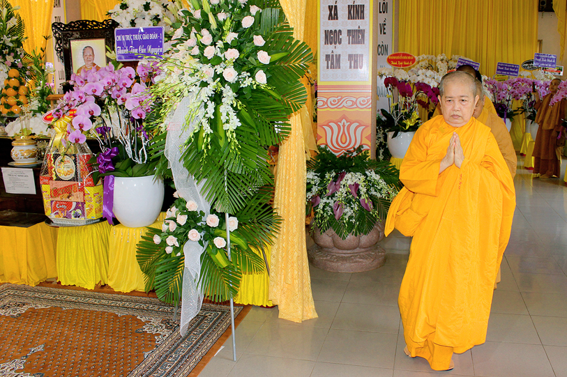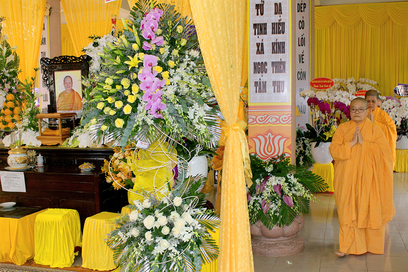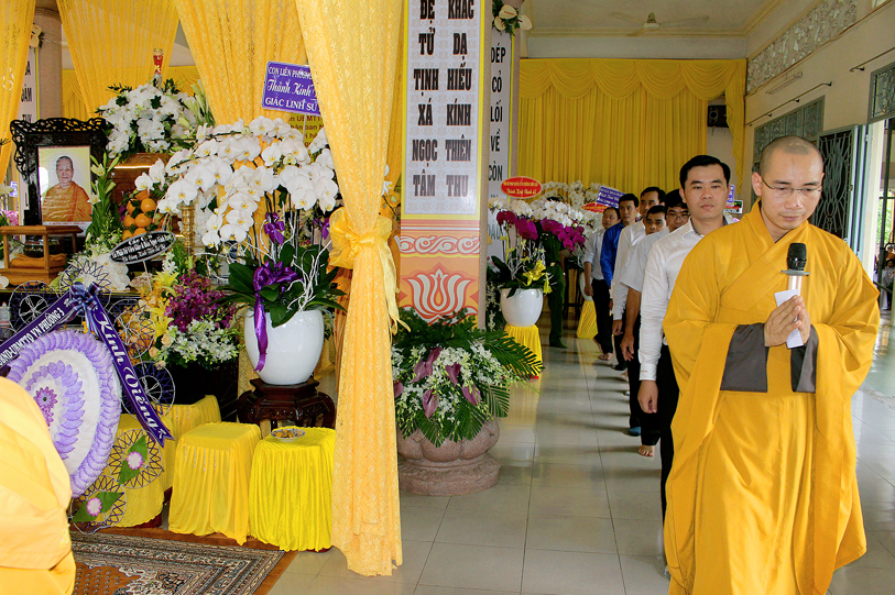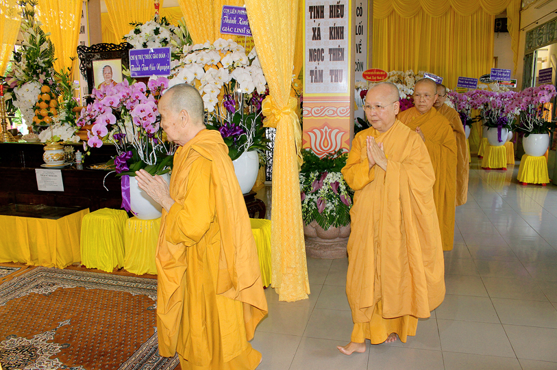 Một Bậc Tòng Lâm thạch trụ đã đi về cõi hư vô bất diệt, với lòng tôn kính và thương tiếc, các Phái đoàn Tự Viện, Tịnh Xá cùng Qúy Phật tử khắp nơi quy tụ về phúng viếng tang lễ Ni Trưởng: Ban Trị Sự GHPG huyện Long Điền tỉnh Bà Rịa Vũng Tàu,Tịnh xá Ngọc Ninh, Tịnh xá Ngọc Thuận, Tịnh xá Ngọc Chơn, Tịnh xá Ngọc An, Tịnh xá Kì Hoàn, Tịnh xá Ngọc Lê,Tịnh xá Ngọc Nhân, chùa Linh Quang, chùa Linh Bửu – tỉnh Tây Ninh, Niệm Phật Đường Ngọc Minh – Cà Mau, Chư Ni trực thuộc Giáo Đoàn một, Chư Ni Tịnh xá Ngọc Lâm – Long Hải, Tịnh xá Ngọc Tín – Đà Lạt, Tịnh xá Ngọc Huy – Quận 12, Tịnh xá Ngọc Khánh – Quận 4, Tập thể Tăng Ni sinh Trung cấp Giảng sư khóa IX, Tăng Ni sinh khóa V Trường Trung cấp Phật học tỉnh Long An, Câu lạc bộ Long Sư Rồng Long Hoa Đường, gia đình Sư cô Đạo Liên, Tổ Đình Minh Đăng Quang, Hòa, Tịnh xá Ngọc Linh, Chư vị đệ tử, đệ tôn, Phật Tử, chùa Từ Bi Quan Âm và đạo tràng – Mỹ quốc, Tăng Ni sinh Hệ phái Khất sĩ du học Ấn Độ, Qúy Phật tử Thủ đô Hà Nội, Tịnh xá Mỹ Đức – Mỹ Tho, gia đình Sư cô Chương Liên, gia đình Sư cô Liên Trưng, chùa Thuận Phước – Gò Đen Long An, chùa Phước Thuận, Tịnh xá Định –Sóc Trăng, Tịnh xá Hải Triều Âm – Bạc Liêu, …đồng trở về đối trước án tiền Ni trưởng đảnh lễ dâng lời ai điếu, kính cầu nguyện Giác linh Ni trưởng cao đăng Phật quốc, sớm hội nhập Ta bà, hóa độ chúng sanh.