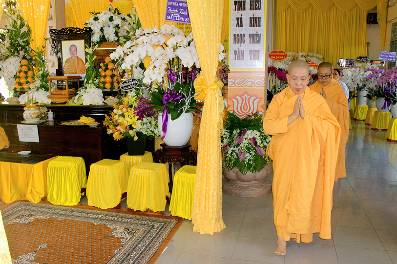 Chư Ni các tịnh xá miền Trung Tịnh xá Ngọc Châu – Hội An, Tịnh xá Ngọc Cơ – Đà Nẳng, Tịnh xá Ngọc Kì – Tam Kì, Tịnh xá Ngọc Cát -Nha Trang, Tịnh xá Ngọc Hồng – Quảng nam, Tịnh xá Ngọc Lộ – Quảng Trị, Tịnh xá Ngọc Như, Chùa Bảo Phong, Tịnh xá Bửu Quang, Tịnh xá Ngọc Xuân, Tịnh xá Ngọc Sơn, Tịnh xá Ngọc Chân – Bình Định, Tịnh xá Ngọc Nhuận – Quy Nhơn, Chùa An Ninh – Phú Yên, Tịnh xá Ngọc Linh, Tịnh xá Ngọc Nghĩa, Tịnh xá Ngọc Hòa – Cam Ranh, Tịnh xá Ngọc Thành – Buôn Mê thuộc, Tịnh xá Ngọc Khánh Hưng, Tịnh xá Ngọc Duy – Kom Tum, Tịnh xá Ngọc Phú – Gia Lai, chùa Thiên Đức, Tịnh xá Ngọc Quảng, Chùa Phổ Quảng – Quảng Ngãi, Tịnh xá Ngọc Ninh, Tịnh xá Ngọc Bình – Phan Rang, Tịnh xá Ngọc Phú – Bình Phước, Tịnh xá Ngọc Vân – Định Quán, … đã hướng dẫn Phật tử trở về Tịnh xá Ngọc Tâm kính viếng tang lễ, thành kính tụng kinh cúng dường lên giác linh Ni trưởng và đảnh lễ thọ tang.