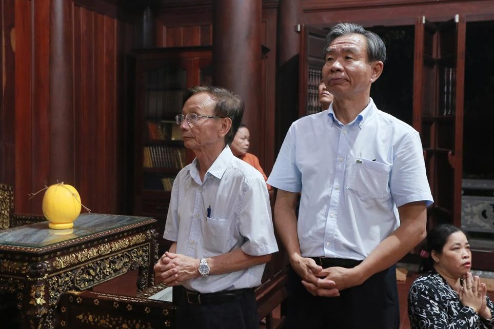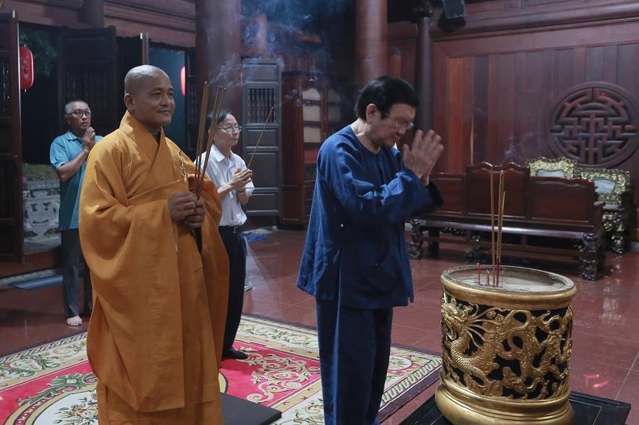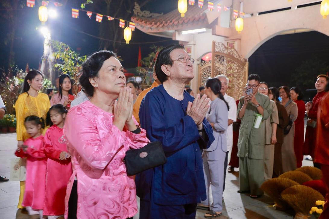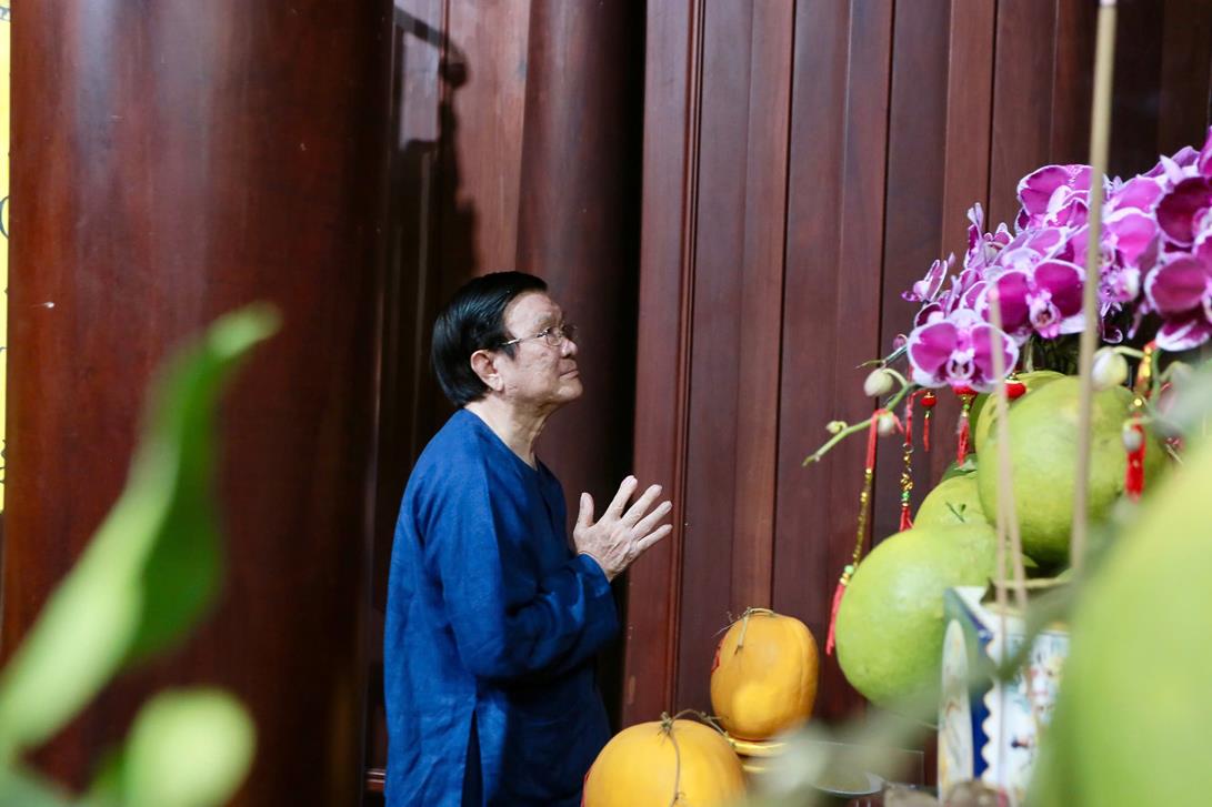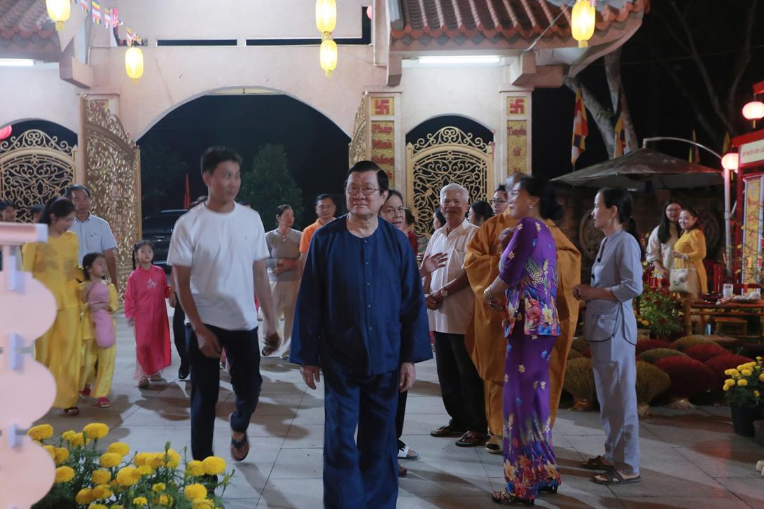 Tại chánh điện chùa Pháp Minh, Nguyên Chủ tịch nước, phu nhân, tộc họ Trương dâng hương đầu năm và có lời thăm hỏi, chúc mừng năm mới đến  Thượng tọa Thích Lệ Duyên và chư Tăng chùa Pháp Minh.