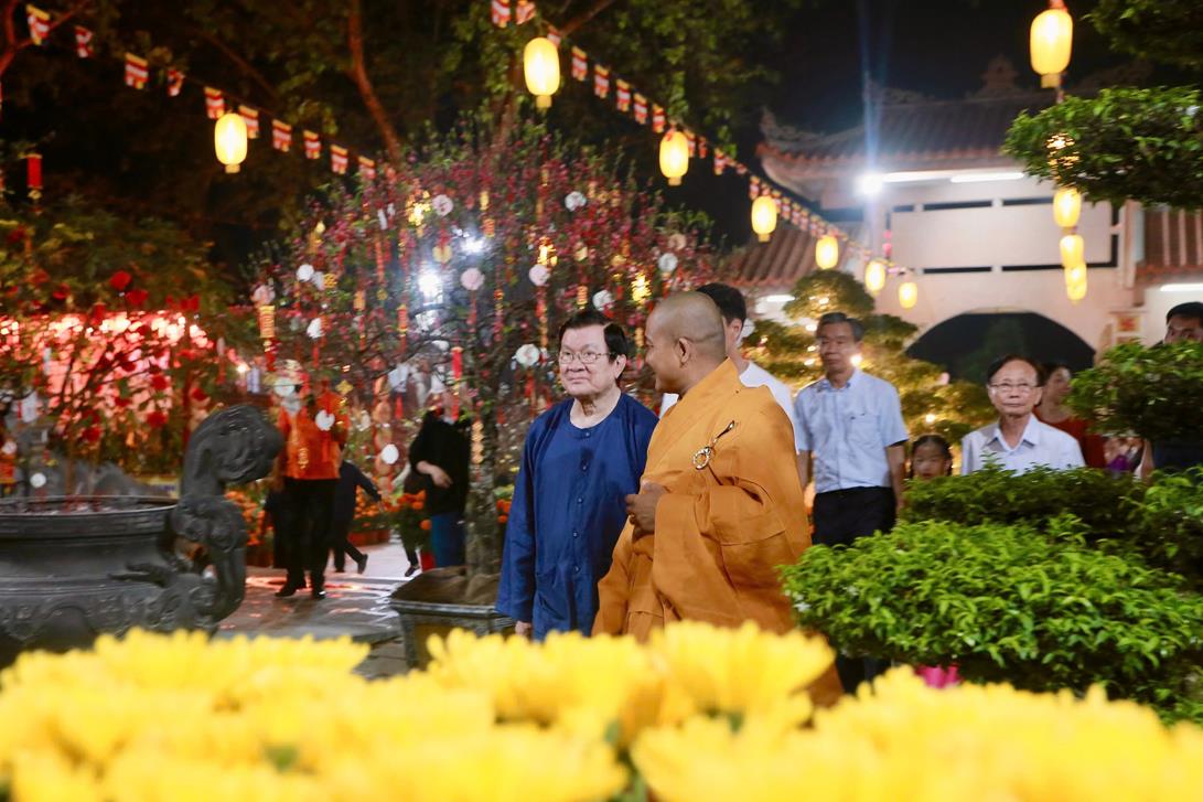 Thay mặt chư Tăng chùa Pháp Minh, Thượng tọa Thích Lệ Duyên đã có lời chúc phúc đầu xuân, trao lộc Phật đến ngài Nguyên Chủ tịch nước, phu nhân và gia tộc họ Trương, cầu chúc một năm mới sức khỏe kiện khang, cát tường như ý.