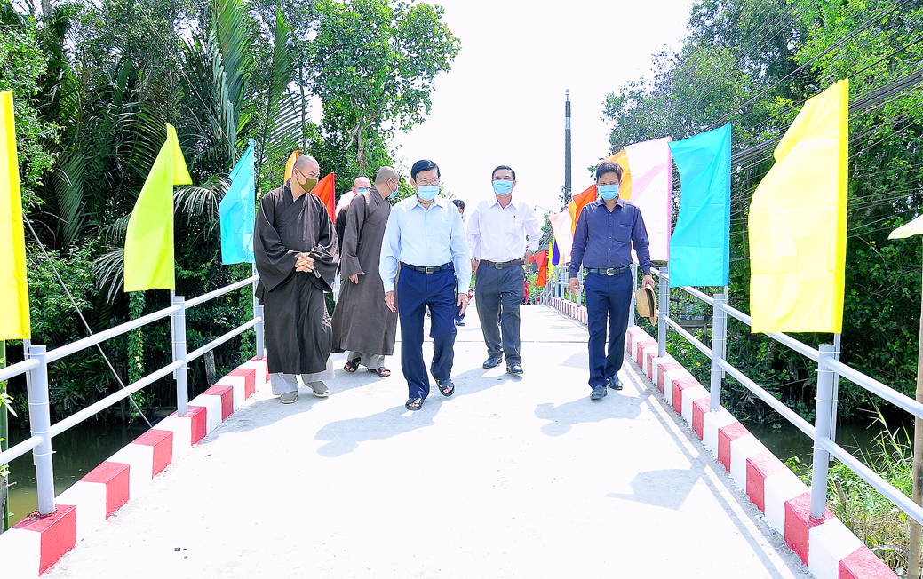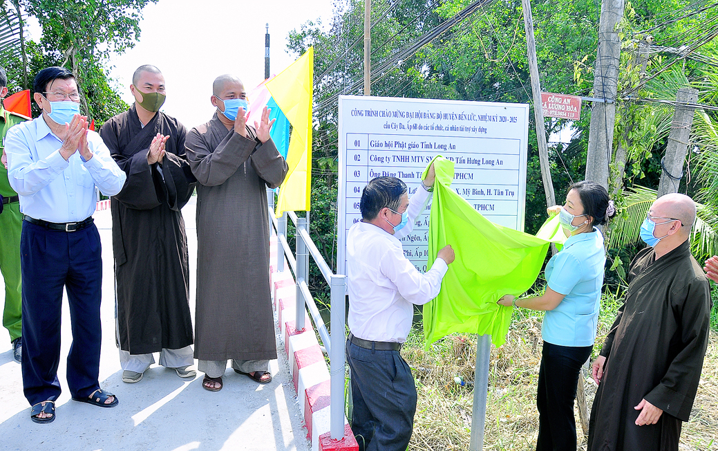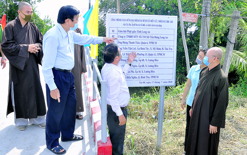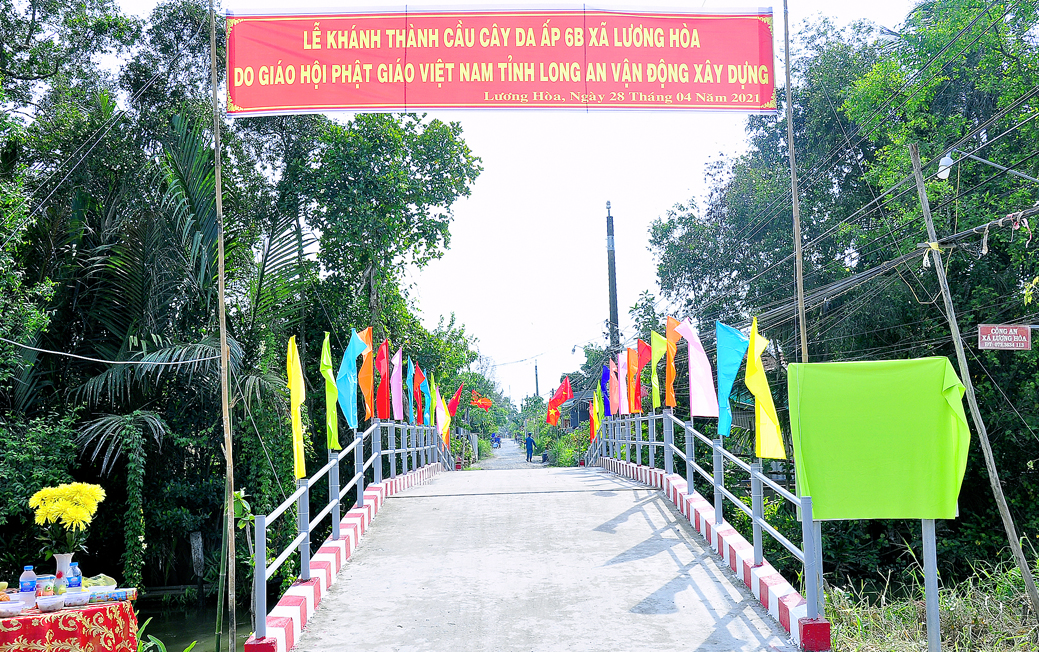 Phát biểu tại buổi lễ, Thượng tọa Thích Quảng Tâm- Ủy viên Hội đồng Trị sự, Phó Trưởng Ban Thường trực Ban Trị sự GHPGVN tỉnh Long An cho biết, từ trước đến nay, GHPGVN tỉnh Long An đã vận động xây dựng tất cả 7 cầu và 1 cống trên tổng số 17 cây cầu toàn tuyến trị giá trên 3,5 tỷ đồng. Những công trình góp phần xây dựng nông thôn mới, thể hiện tinh thần Phục vụ chúng sanh là thiết thực cúng dường chư Phật.