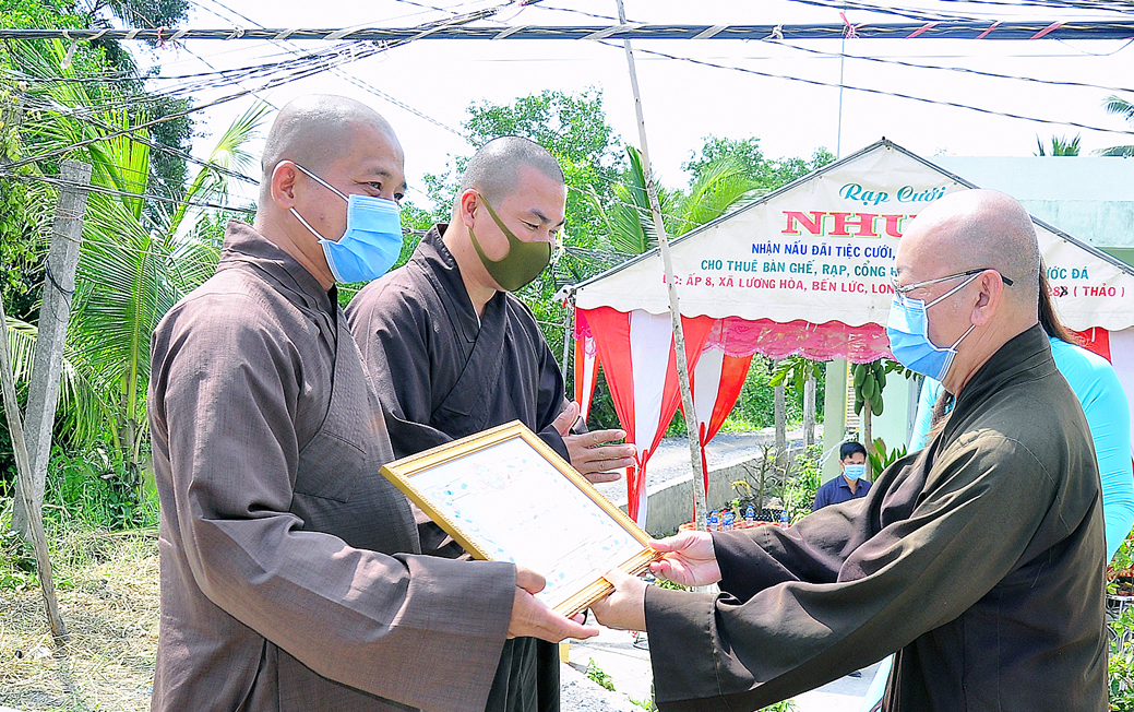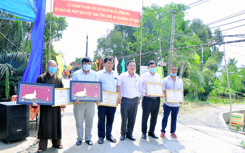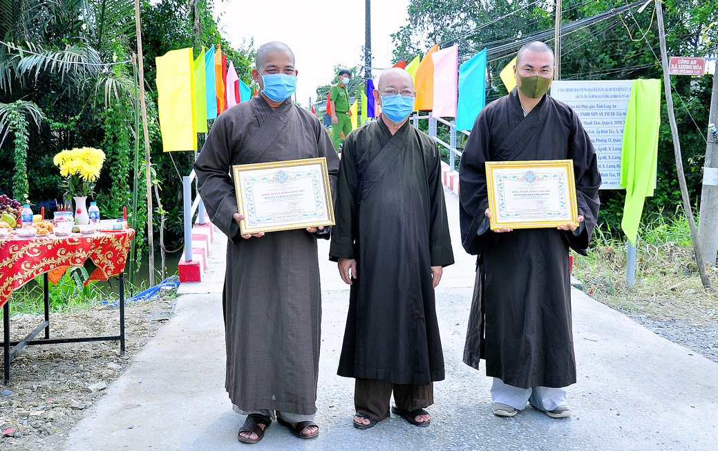 Dịp này, Giáo Hội Phật giáo Việt Nam tỉnh Long An, Chủ tịch UBND huyện Bến Lức tặng giấy khen cho các cá nhân có thành tích vận động đóng góp xây dựng cầu giao thông nông thôn và công tác xã hội trên địa bàn thời gian qua./.