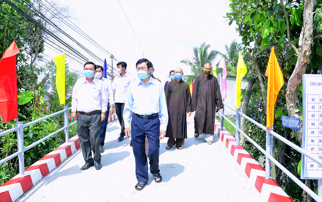 Ngày 28/4, nguyên Chủ tịch nước – Trương Tấn Sang dự Lễ khánh thành cầu Cây Da tại ấp 6B, xã Lương Hòa, huyện Bến Lức, tỉnh Long An.