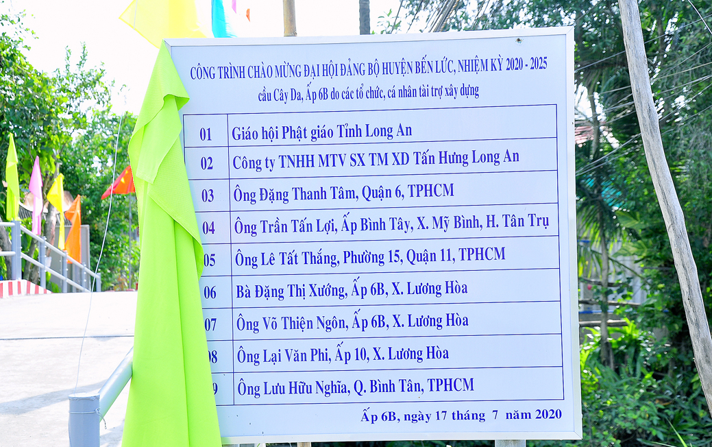 Đại diện chính quyền Ông Trần Hoàng Nhân-Bí thư huyện Bến Lức cũng đã gửi lời cám ơn đến Ban Trị sự GHPGVN tỉnh và cá nhân Hòa thượng Thích Minh Thiện cùng các Mạnh thường quân đã quan tâm, đồng cảm với những khó khăn địa phương và hỗ trợ để địa phương có một cây cầu mới khang trang góp phần thúc đẩy kinh tế khu vực cũng như tạo sự thuận lợi trong việc di chuyển hằng ngày của người dân. Thời gian tới, Đảng ủy, chính quyền địa phương xã tiếp tục quan tâm, sớm nhựa hóa, bê tông hóa con đường tạo điều kiện thuận lợi tốt nhất cho người dân đi lại cũng như vận chuyển hàng hóa.