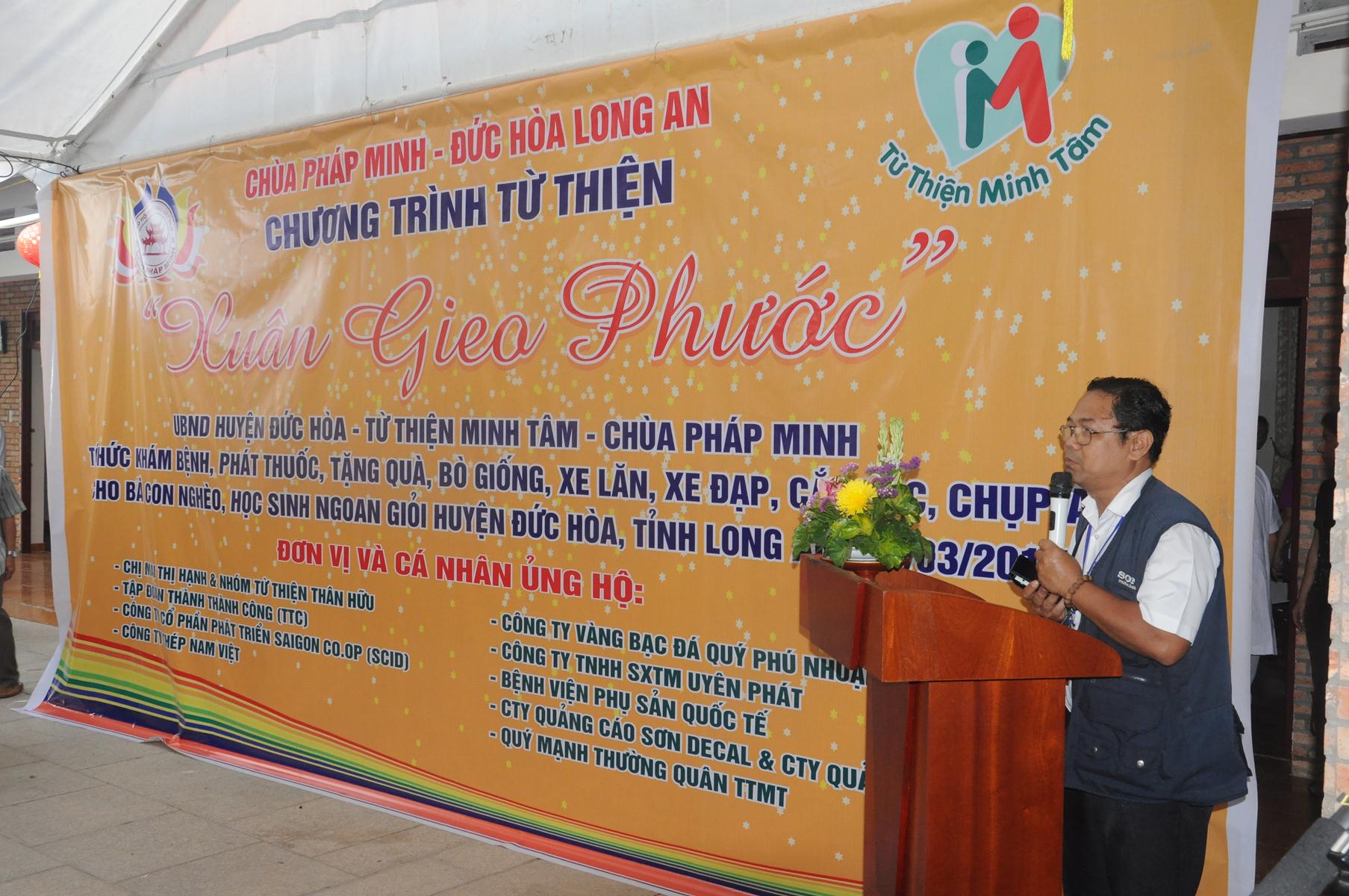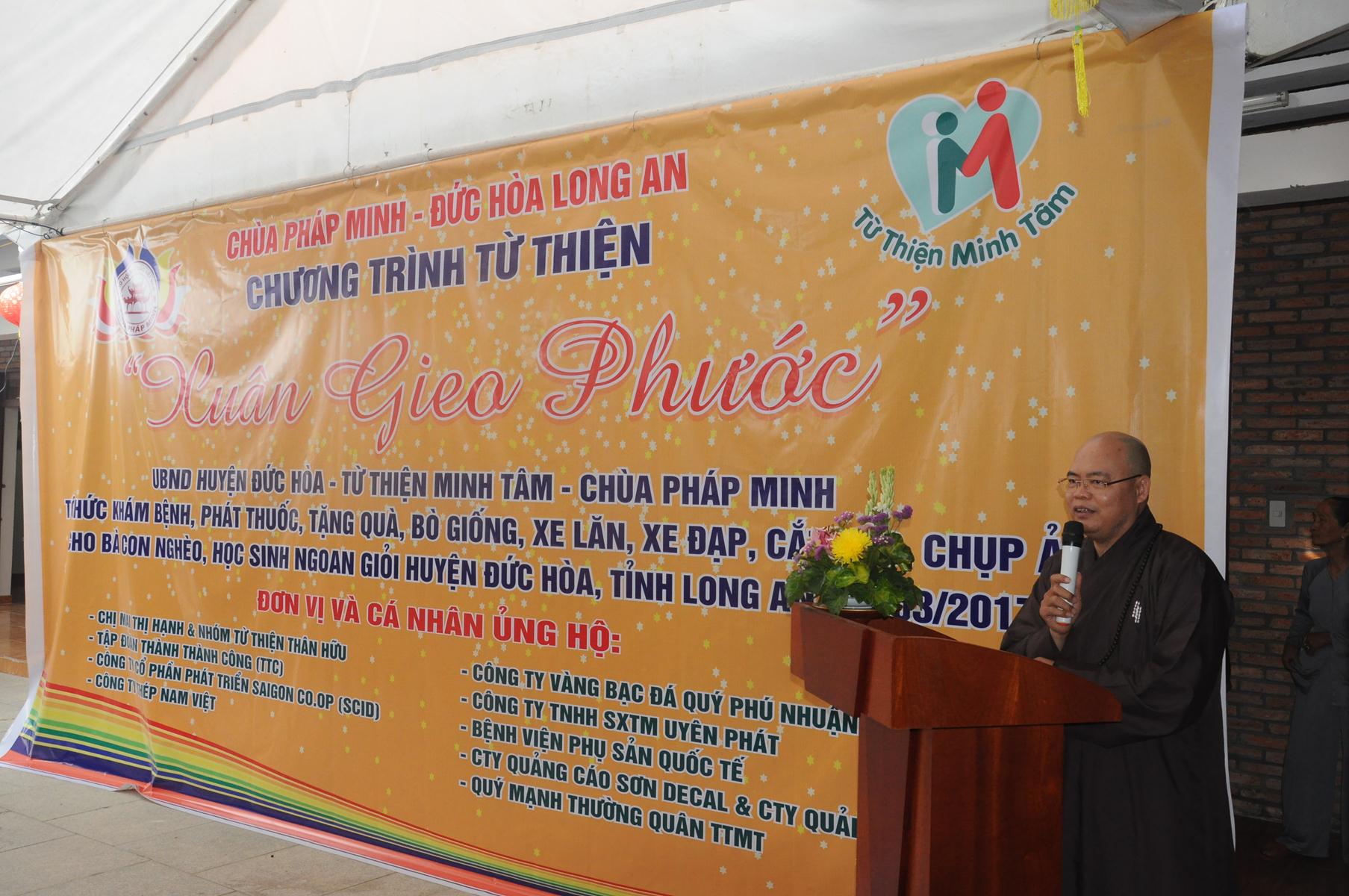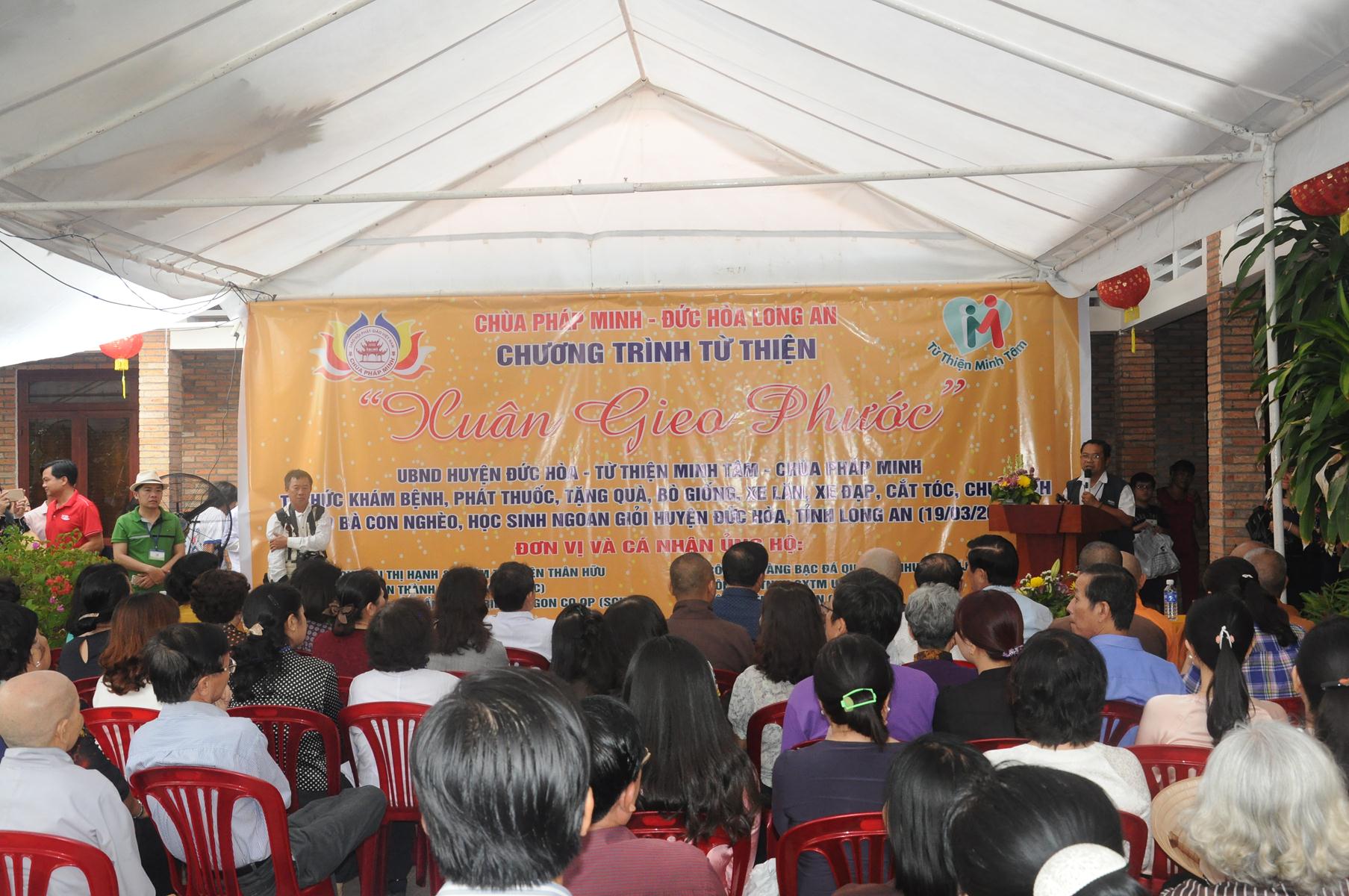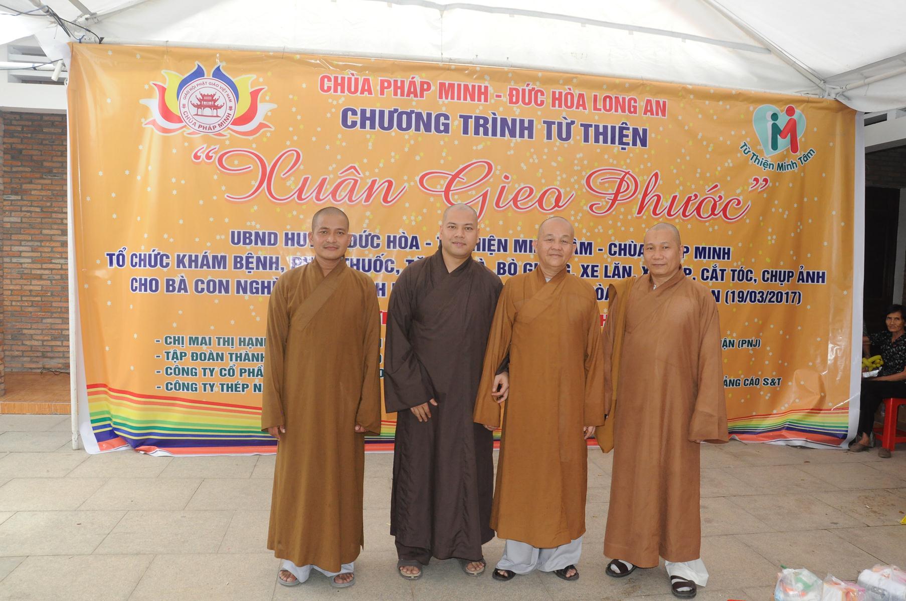 Sáng nay, vào lúc 8 giờ ngày 19 tháng 3 năm 2017 (nhằm 22/2/Đinh Dậu) tại chùa Pháp Minh, ấp Giồng Lớn, xã Mỹ Hạnh Nam, huyện Đức Hòa, tỉnh Long An diễn ra chương trình từ thiện, chủ đề “Xuân gieo phước”.