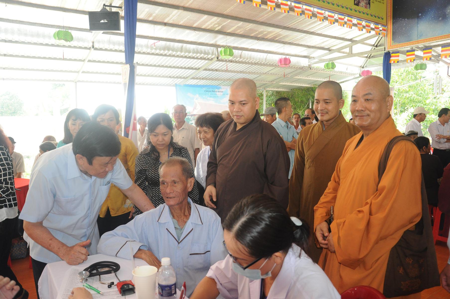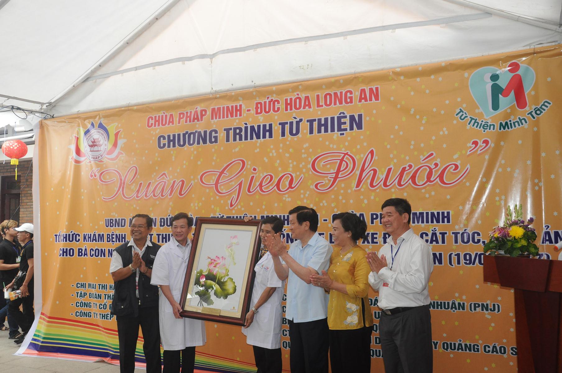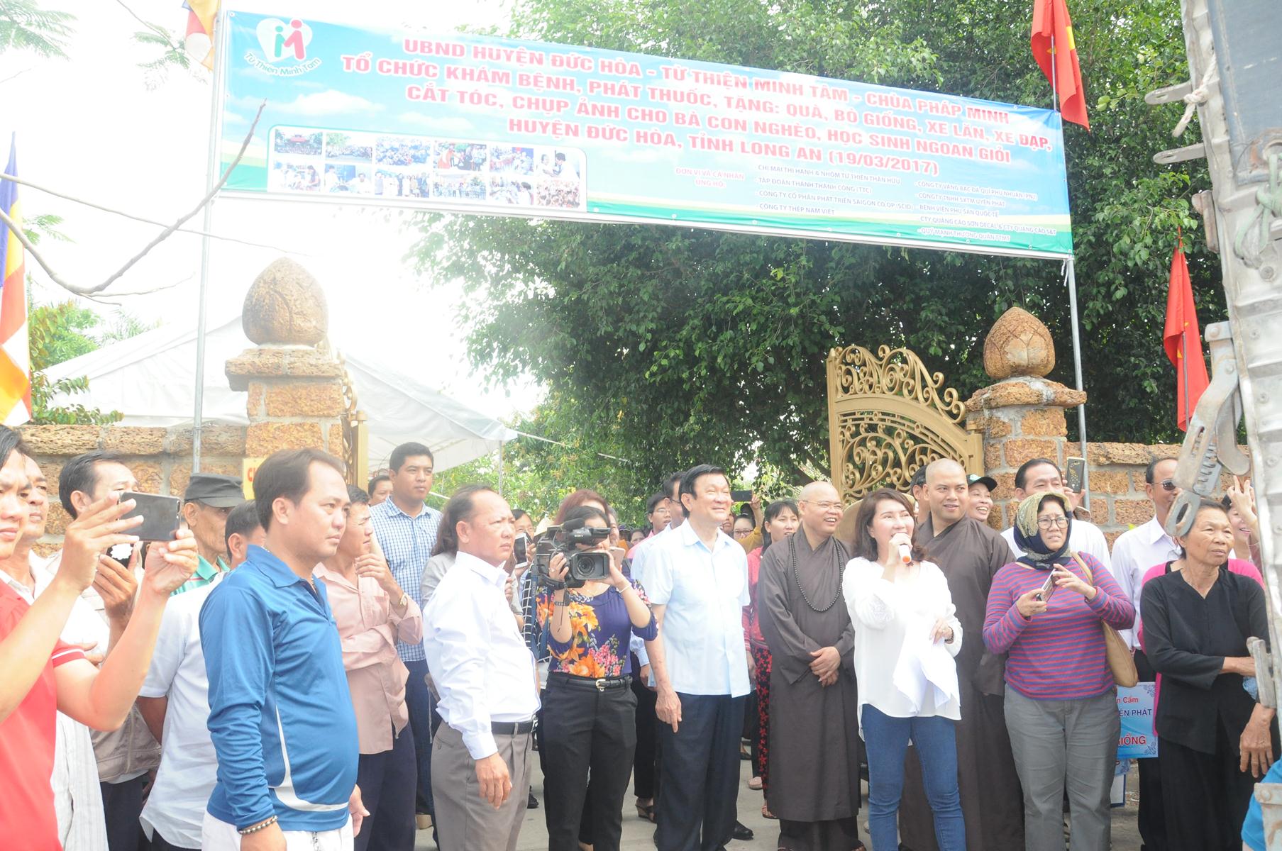 Chứng minh và tham dự chương trình từ thiện, gồm có: Ông Trương Tấn Sang: Nguyên UV Bộ Chính Trị, Nguyên Chủ tịch nước CHXHCNVN; bà Mai Thị Hạnh: Phu nhân nguyên Chủ tịch nước; Hòa thượng Thích Minh Thiện: Ủy viên Hội đồng Trị sự, Phó Trưởng ban Hoằng pháp Trung ương, Trưởng ban Trị sự Giáo hội Phật giáo Việt Nam; TT Thích Thanh Phong: UVTT HĐTS, Trưởng ban KTTC TƯ, Trụ trì tổ đình Vĩnh Nghiêm; HT Thích Chơn Tịnh: Phó Trưởng ban TTXH báo Giác Ngộ; Hòa thượng Thích Thiện Phúc: Trưởng ban Trị sự Giáo hội Phật giáo Việt Nam liên huyện Đức Hòa-Đức Huệ; Thượng tọa Thích Lệ Tấn: Phó Trưởng ban Thường trực Ban Trị sự Giáo hội Phật giáo Việt Nam liên huyện Tân Thạnh, thị xã Kiến Tường, Vĩnh Hưng; ĐĐ Thích Quảng Lâm: Phó Thư ký kiêm Chánh văn phòng Ban KTTC TƯ; cùng Chư Tôn đức Tăng.