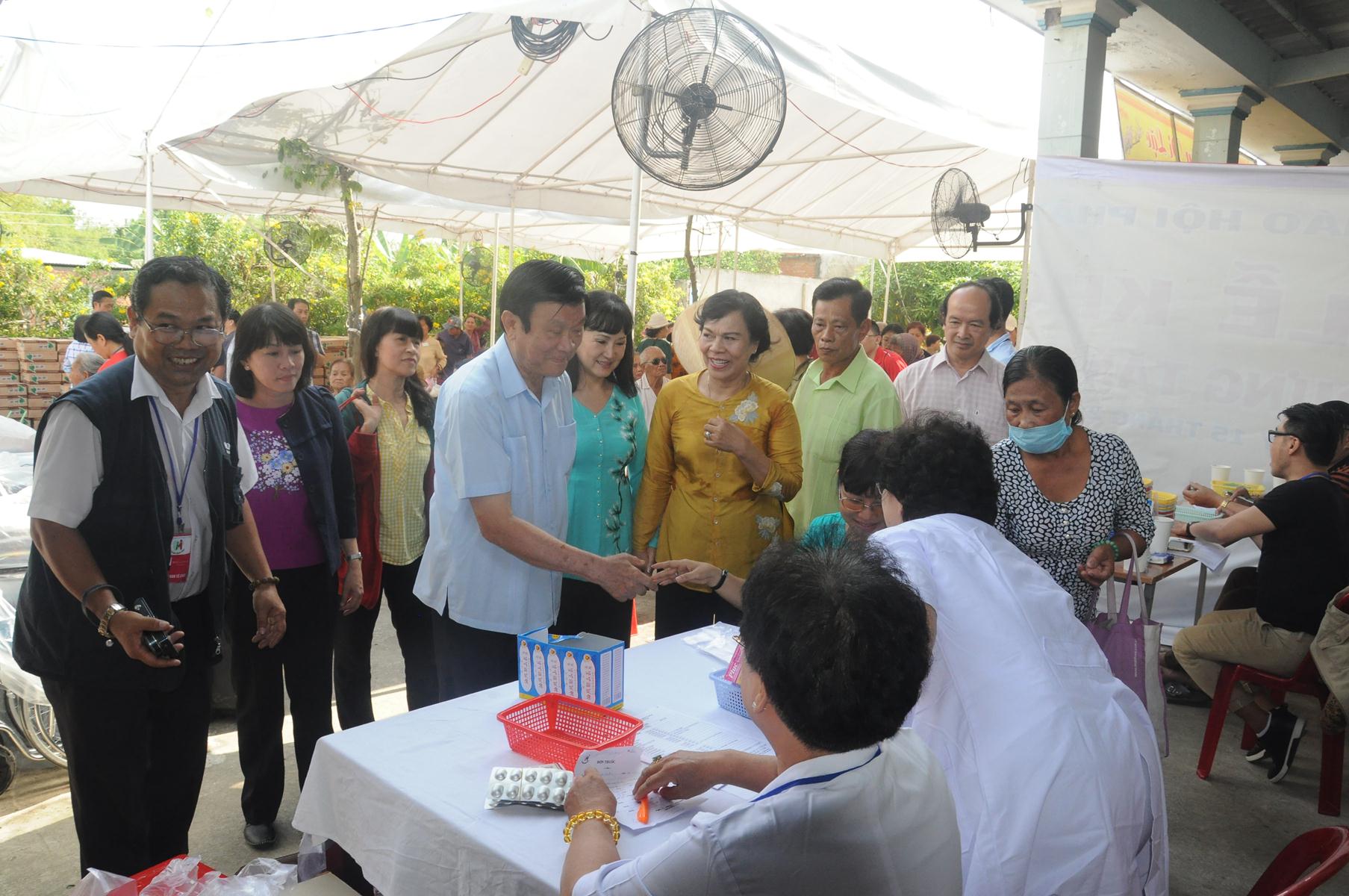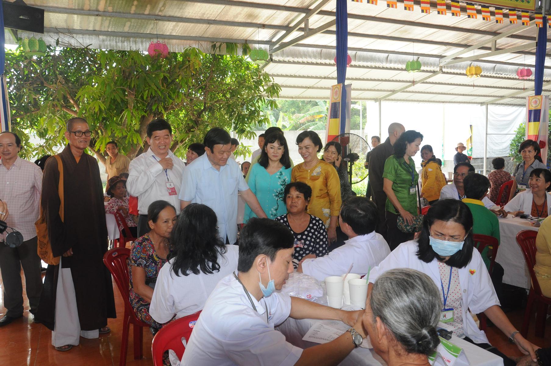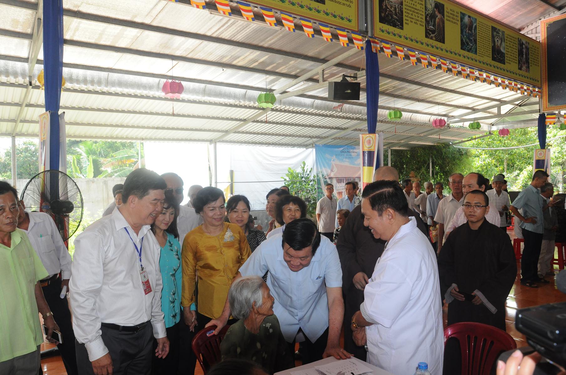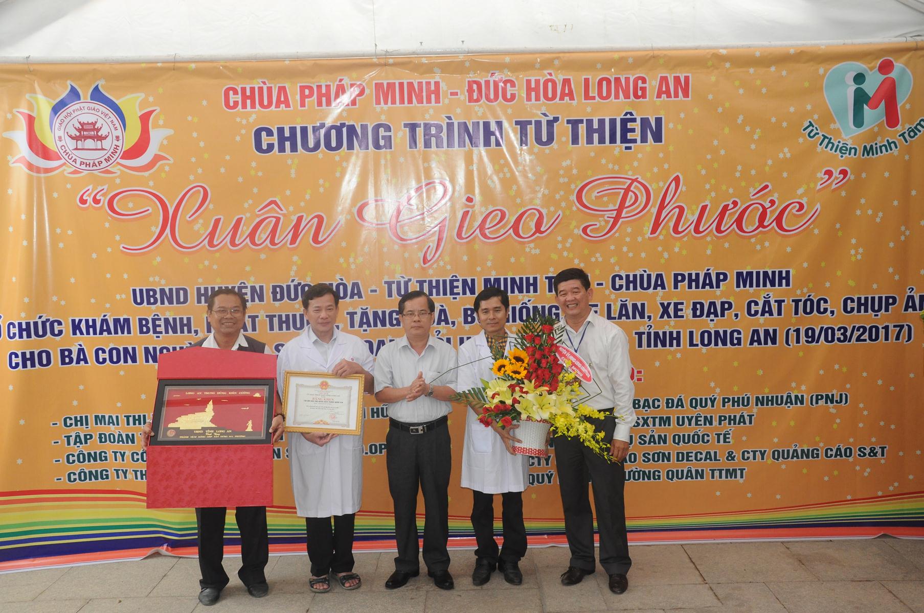 Chứng minh và tham dự chương trình từ thiện, gồm có: Ông Trương Tấn Sang: Nguyên UV Bộ Chính Trị, Nguyên Chủ tịch nước CHXHCNVN; bà Mai Thị Hạnh: Phu nhân nguyên Chủ tịch nước; Hòa thượng Thích Minh Thiện: Ủy viên Hội đồng Trị sự, Phó Trưởng ban Hoằng pháp Trung ương, Trưởng ban Trị sự Giáo hội Phật giáo Việt Nam; TT Thích Thanh Phong: UVTT HĐTS, Trưởng ban KTTC TƯ, Trụ trì tổ đình Vĩnh Nghiêm; HT Thích Chơn Tịnh: Phó Trưởng ban TTXH báo Giác Ngộ; Hòa thượng Thích Thiện Phúc: Trưởng ban Trị sự Giáo hội Phật giáo Việt Nam liên huyện Đức Hòa-Đức Huệ; Thượng tọa Thích Lệ Tấn: Phó Trưởng ban Thường trực Ban Trị sự Giáo hội Phật giáo Việt Nam liên huyện Tân Thạnh, thị xã Kiến Tường, Vĩnh Hưng; ĐĐ Thích Quảng Lâm: Phó Thư ký kiêm Chánh văn phòng Ban KTTC TƯ; cùng Chư Tôn đức Tăng.