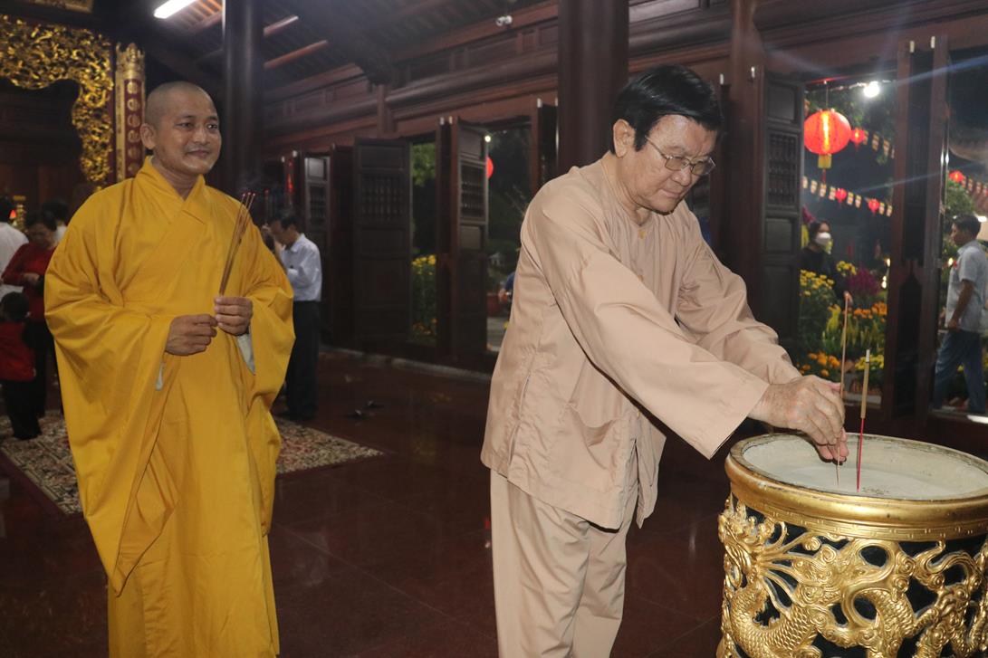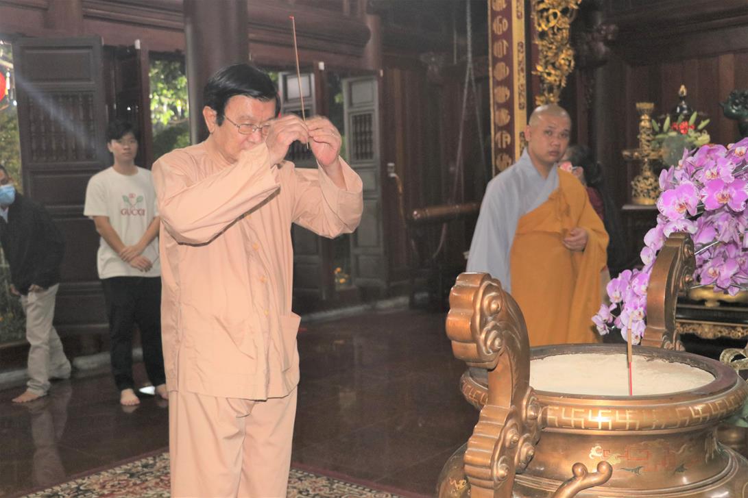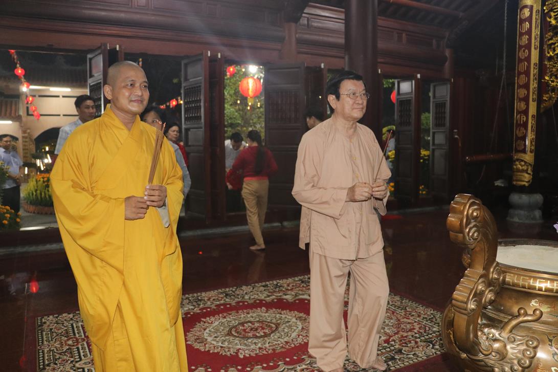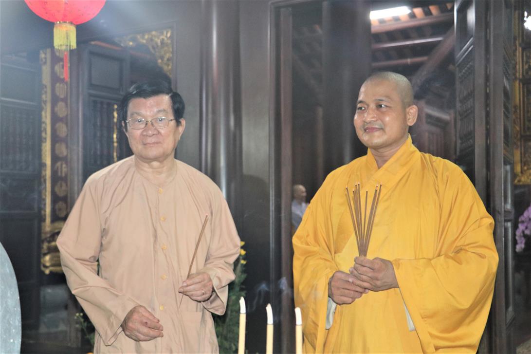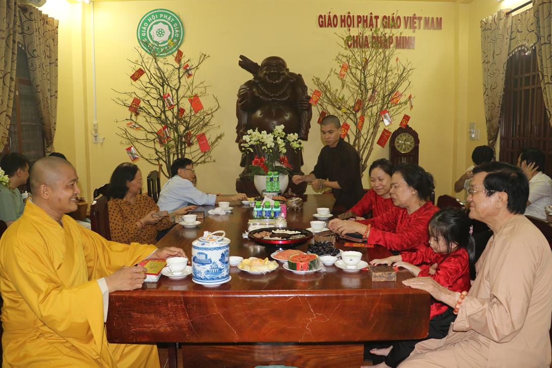 Sau khi Ngài nguyên Chủ tịch nước, phu nhân, tộc họ Trương dâng hương đầu năm và có lời thăm hỏi, chúc tết đến với Đại đức Thích Lệ Duyên và chư Tăng chùa Pháp Minh.