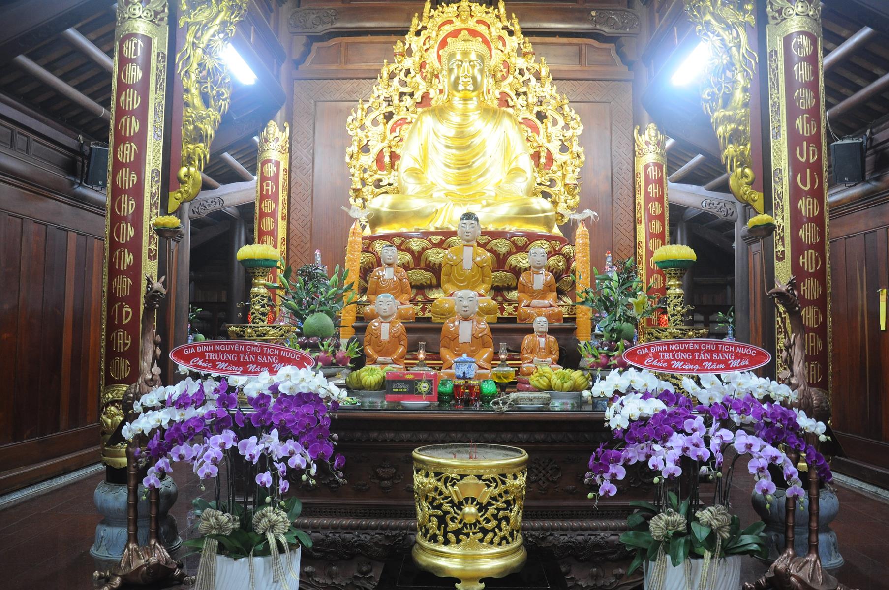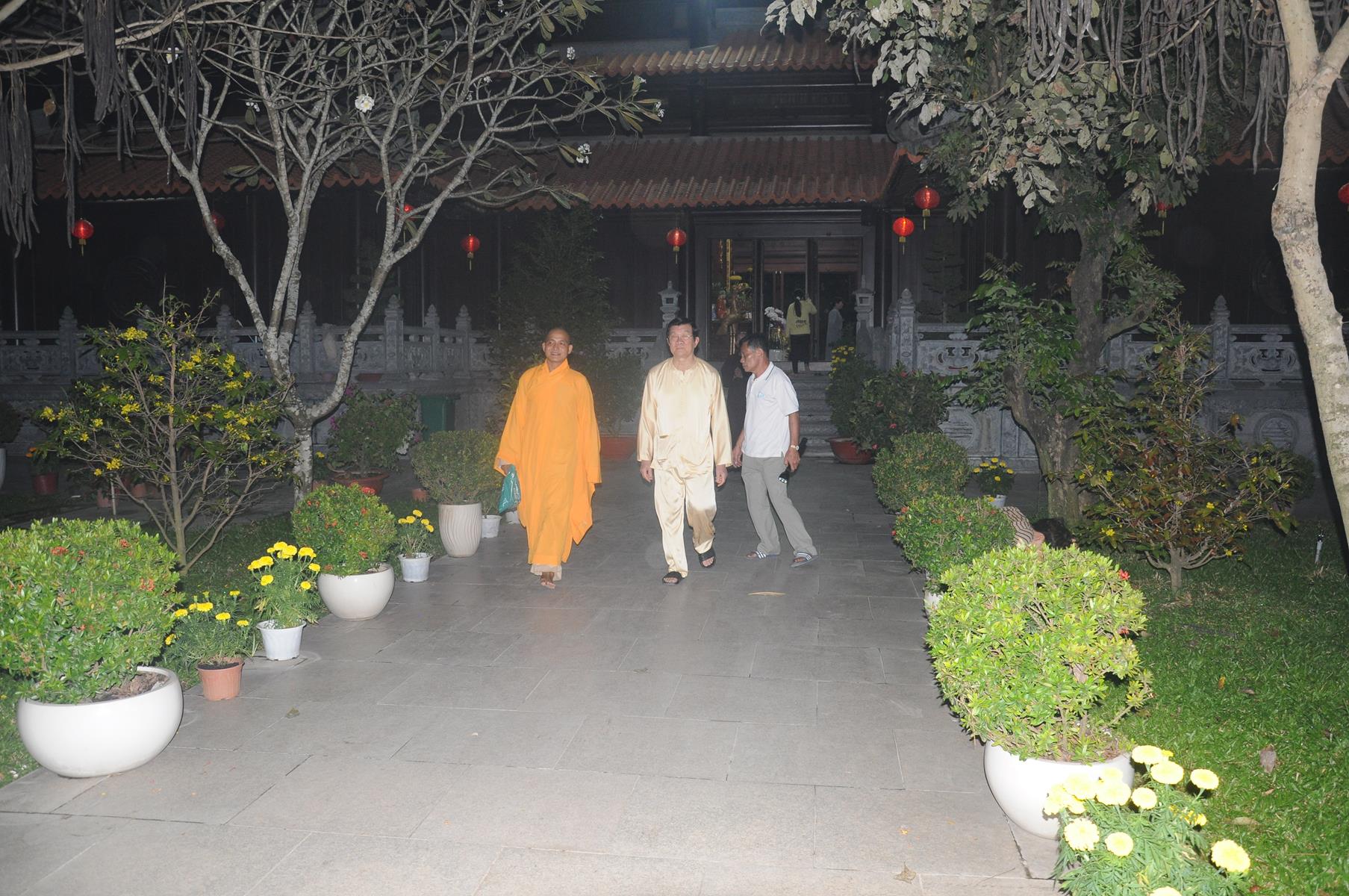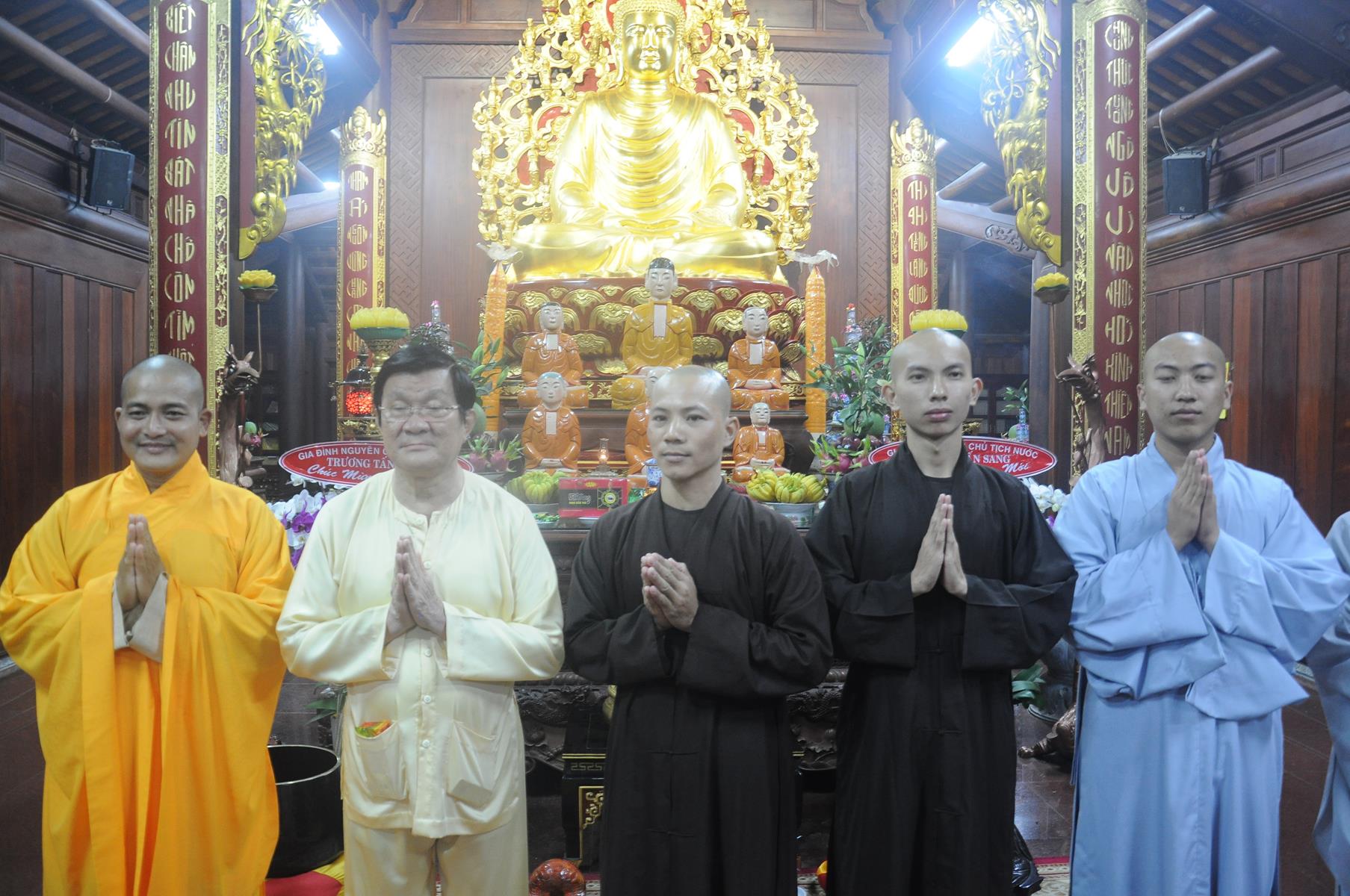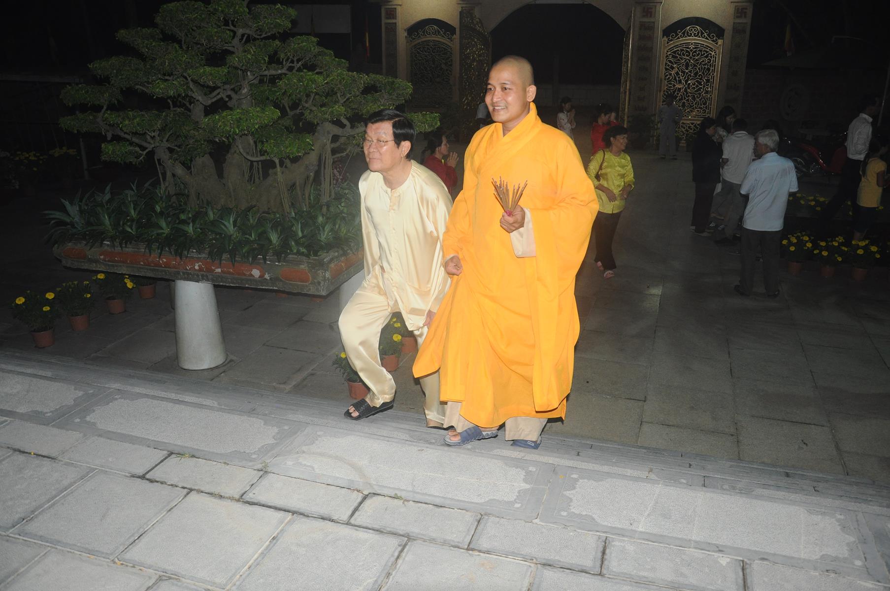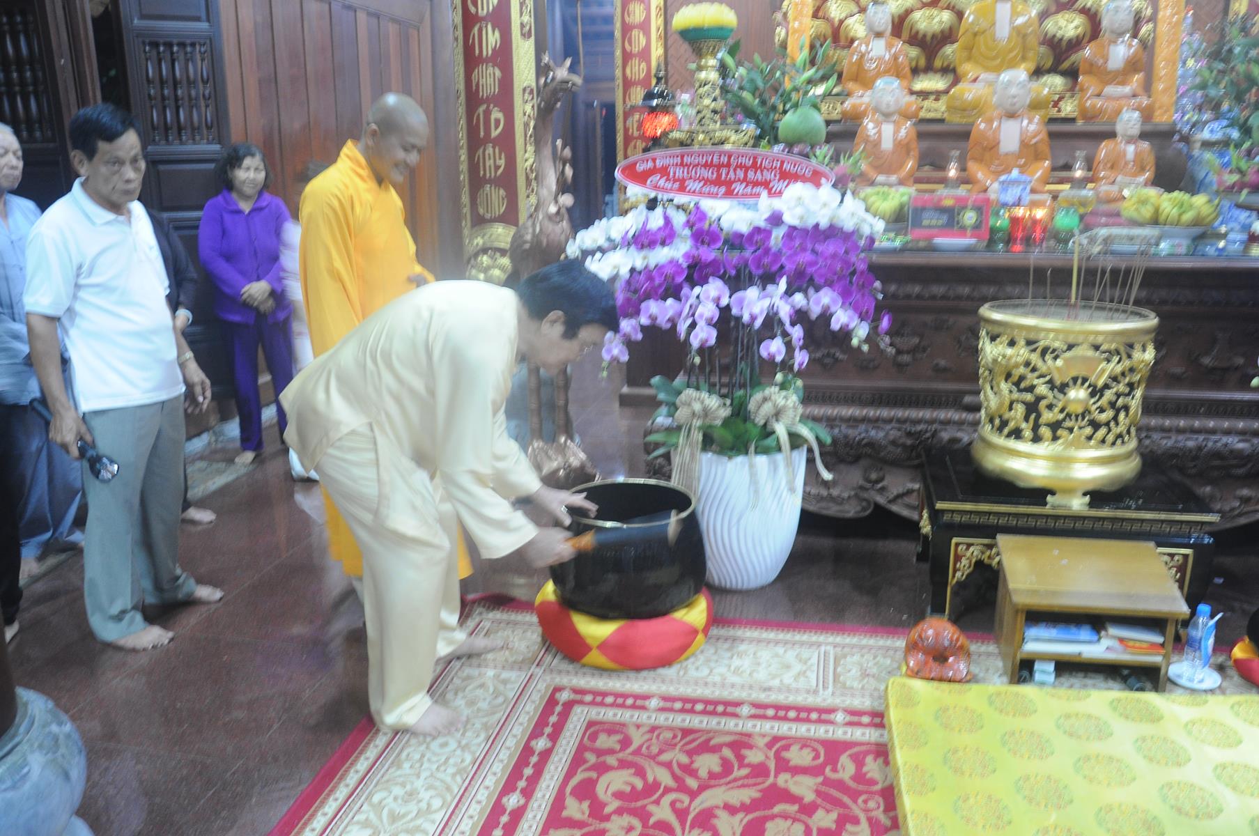 Đón tiếp Nguyên Chủ tịch nước và gia đình có Đại đức Thích Lệ Duyên: Chánh Thư ký BTS GHGPVN tỉnh Long An, Trưởng ban Phật giáo Quốc tế, Chủ nhiệm lớp Sơ cấp Phật học Long An cùng Quý Tăng sinh và đông đảo Phật tử.