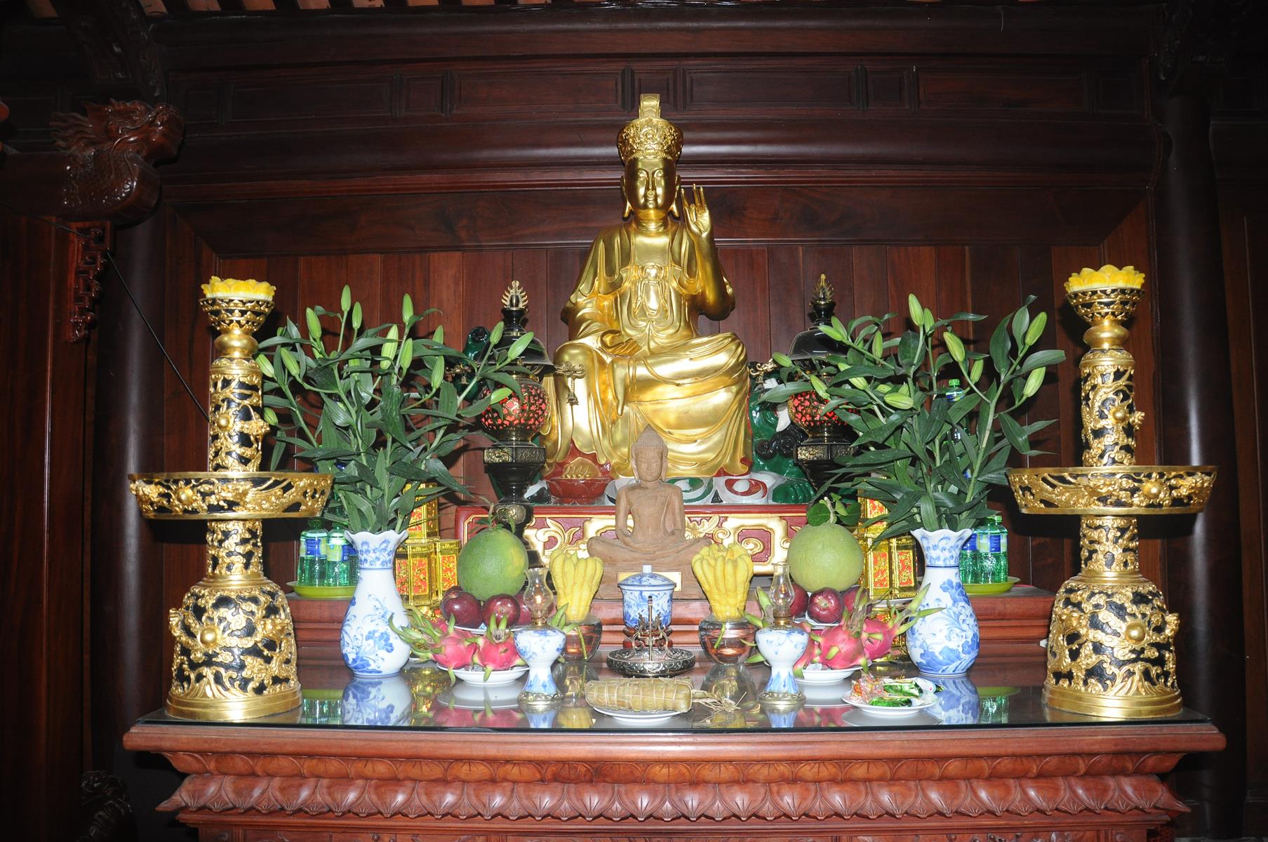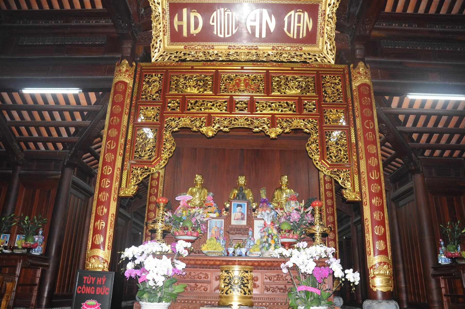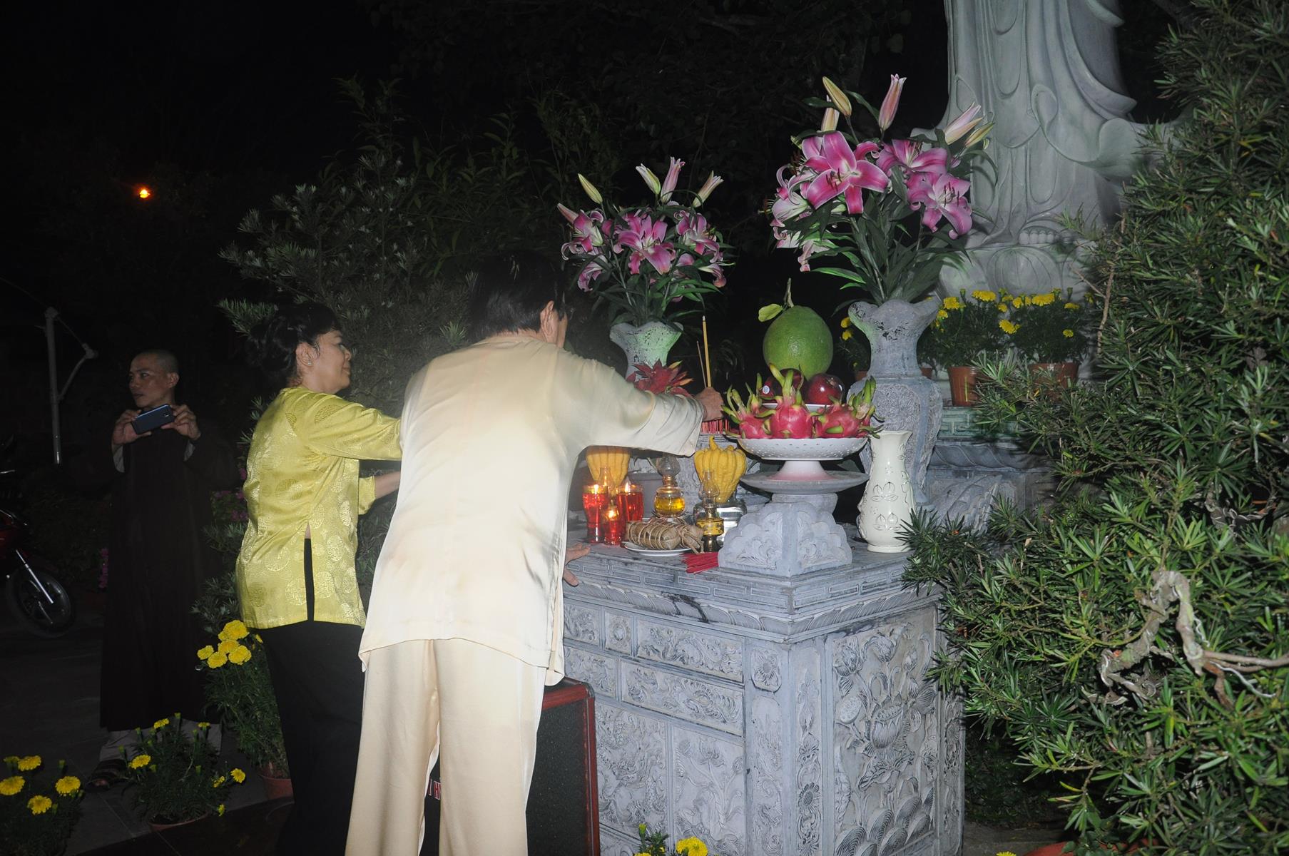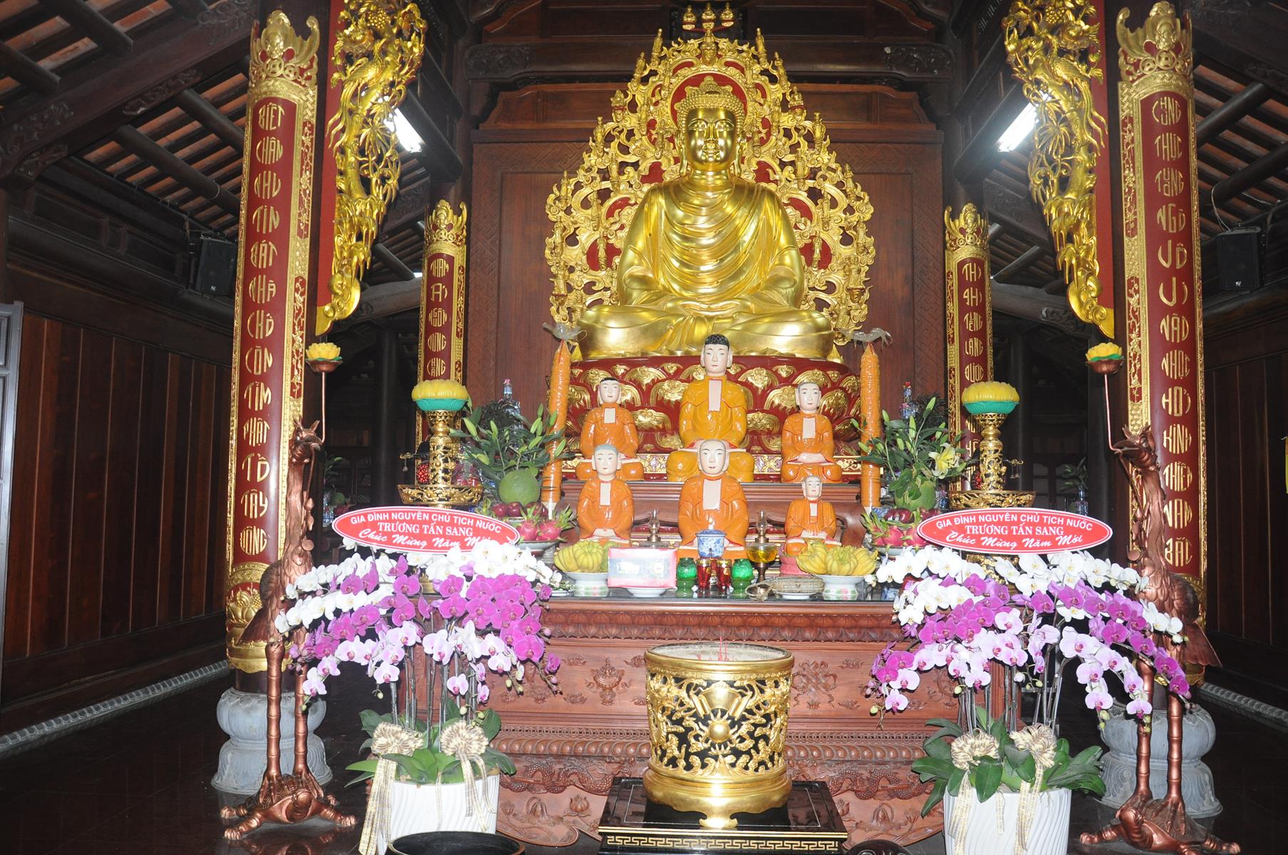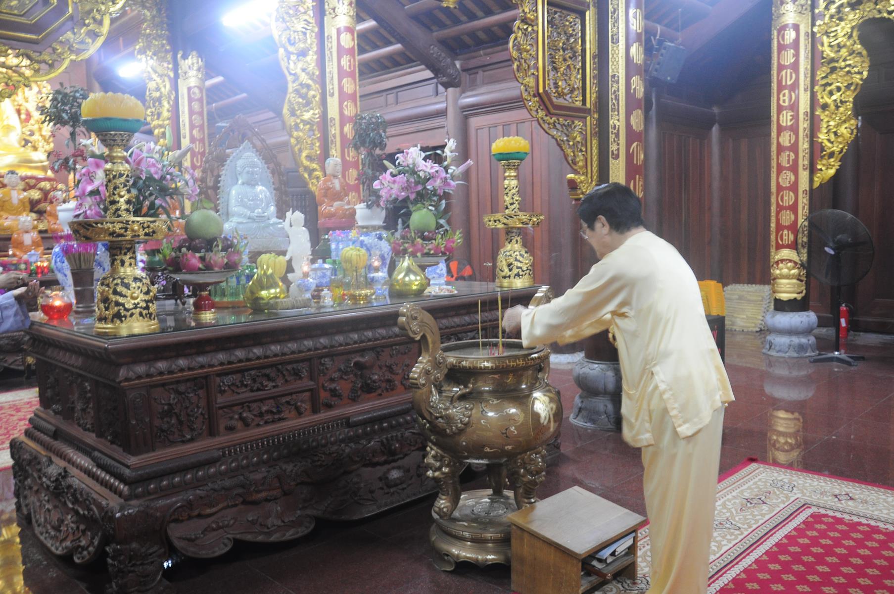 Đón tiếp Nguyên Chủ tịch nước và gia đình có Đại đức Thích Lệ Duyên: Chánh Thư ký BTS GHGPVN tỉnh Long An, Trưởng ban Phật giáo Quốc tế, Chủ nhiệm lớp Sơ cấp Phật học Long An cùng Quý Tăng sinh và đông đảo Phật tử.