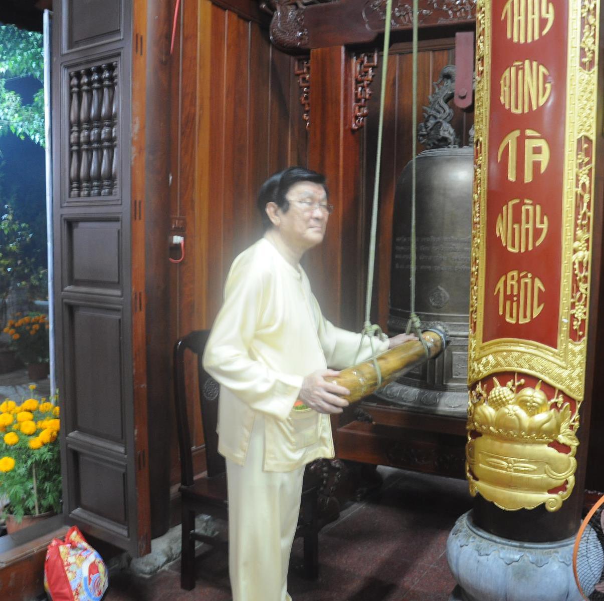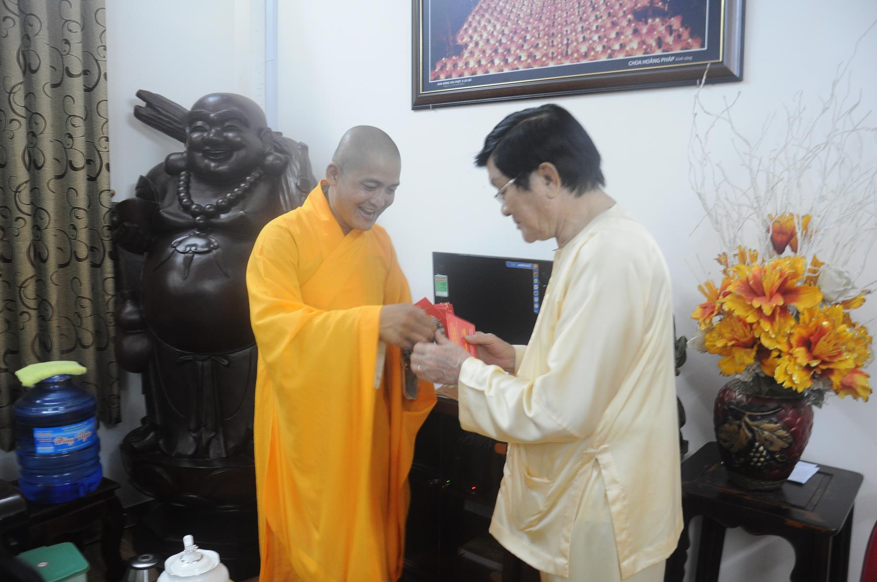 Sau khi Ngài nguyên Chủ tịch nước và gia đình dâng hương đầu năm, ĐĐ Thích Lệ Duyên thay mặt Chư Tăng và Phật tử chùa Pháp Minh chúc phúc và trao tặng lộc đầu năm đến Ngài nguyên Chủ tịch nước và gia đình nhân dịp xuân Mậu Tuất.
