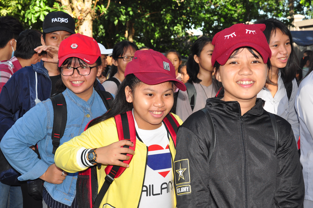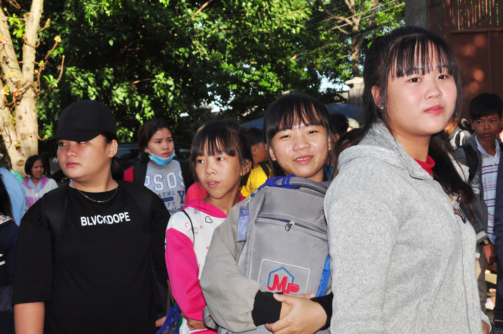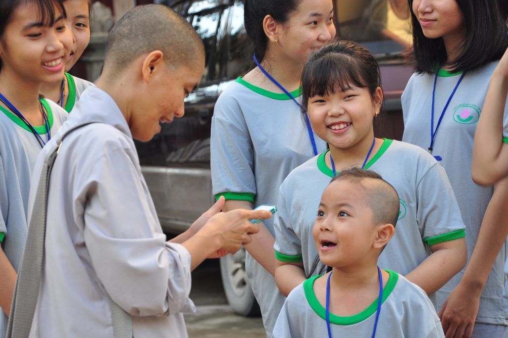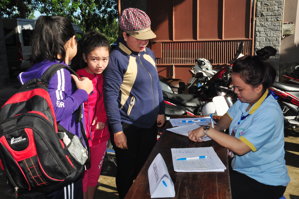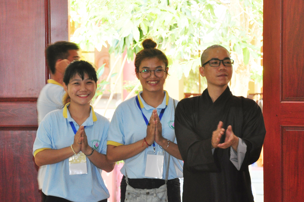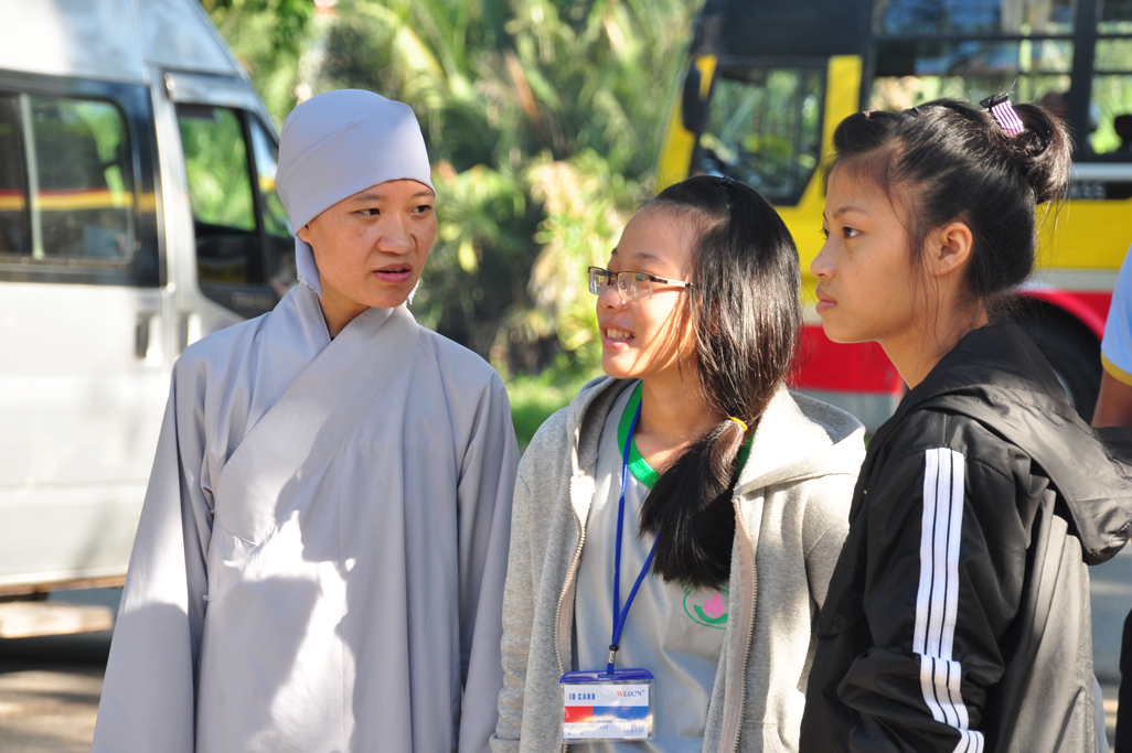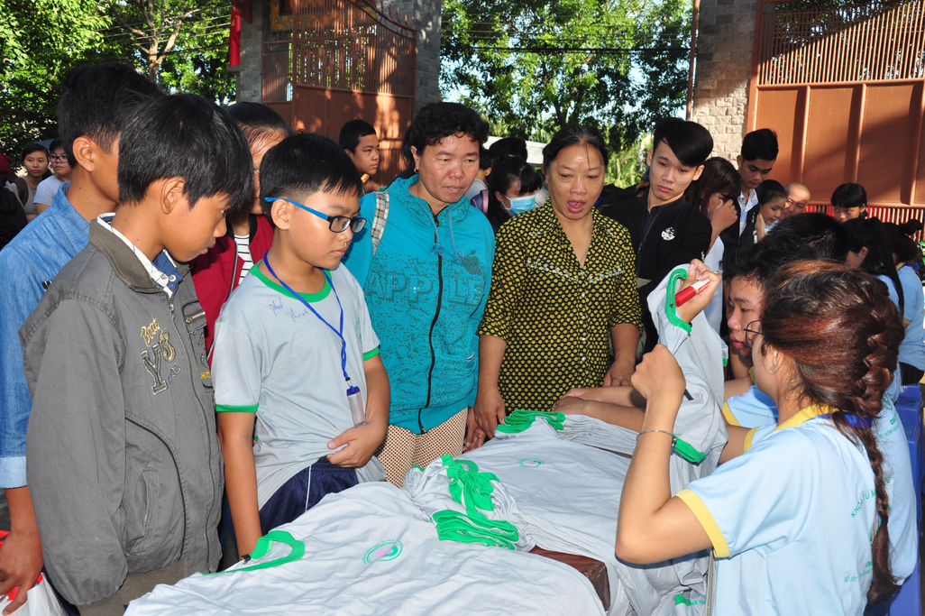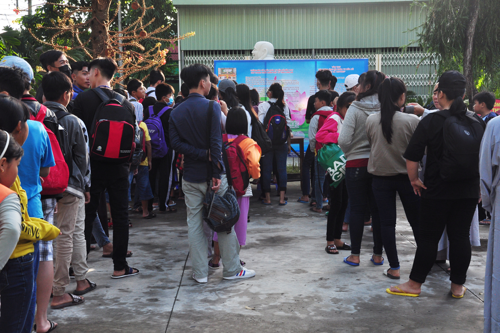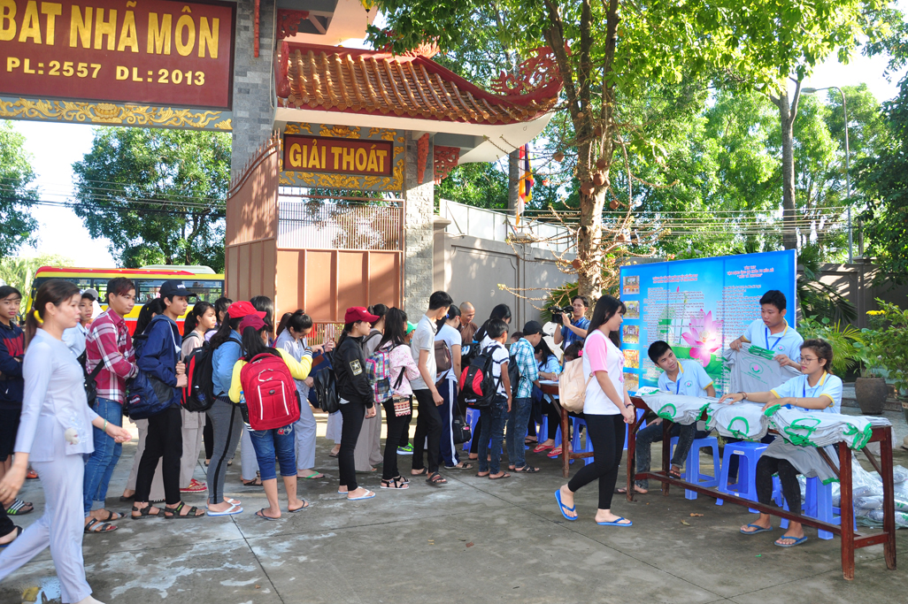 Các em được  quý thầy cô và các anh chị  hoan hỷ đón tiếp ghi danh, phát đồng phục và hướng dẫn dùng điểm tâm sáng.