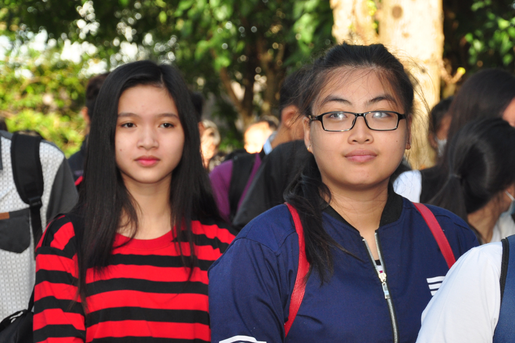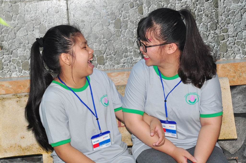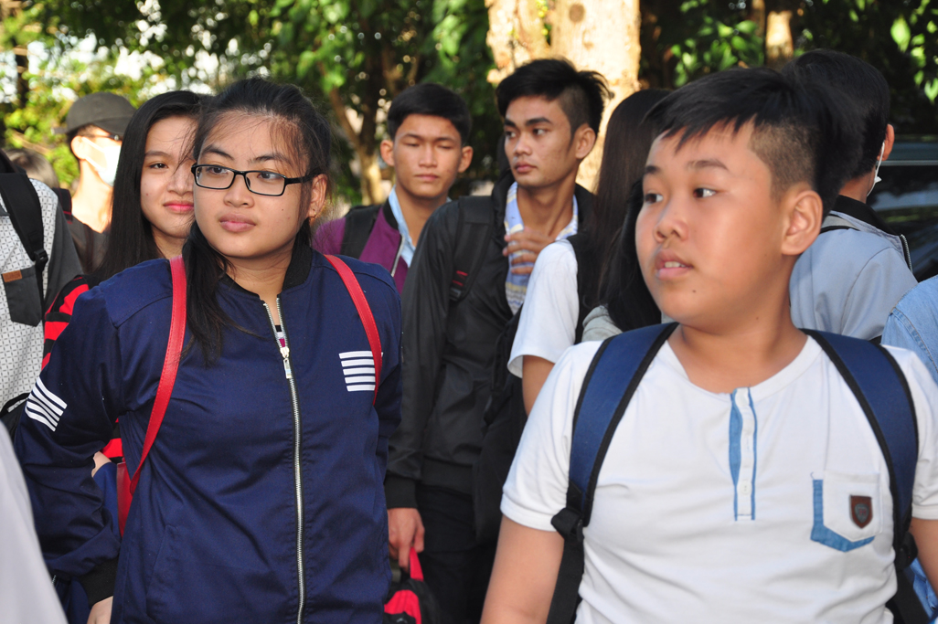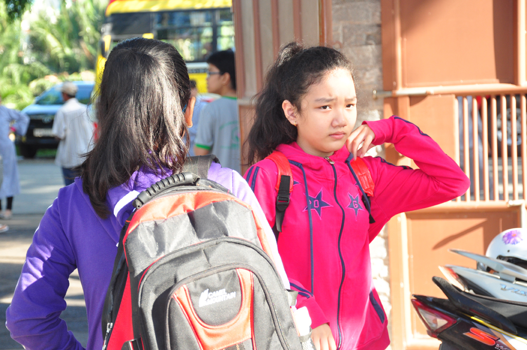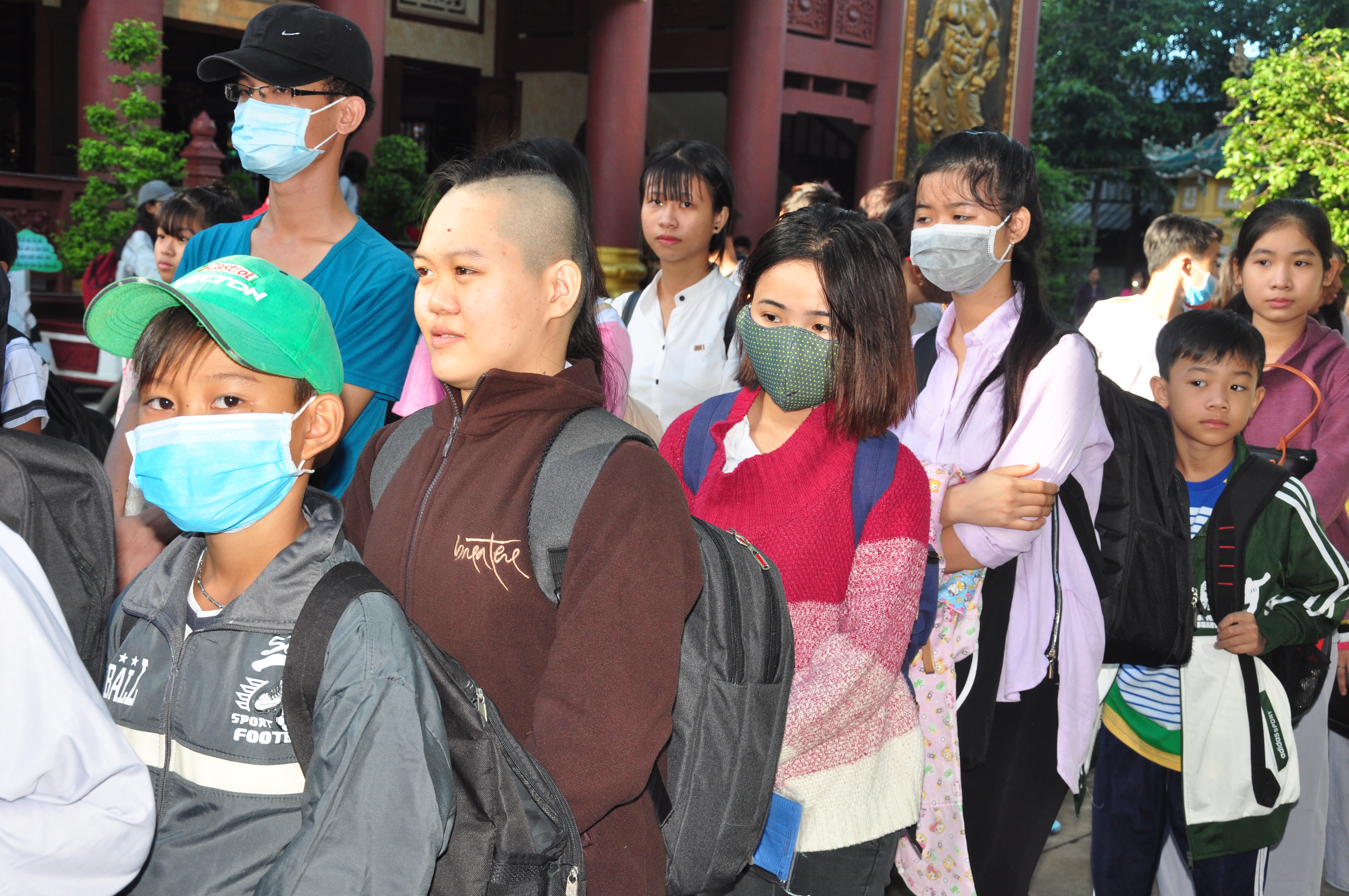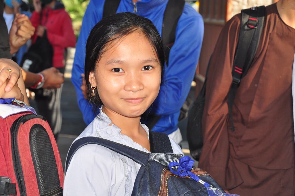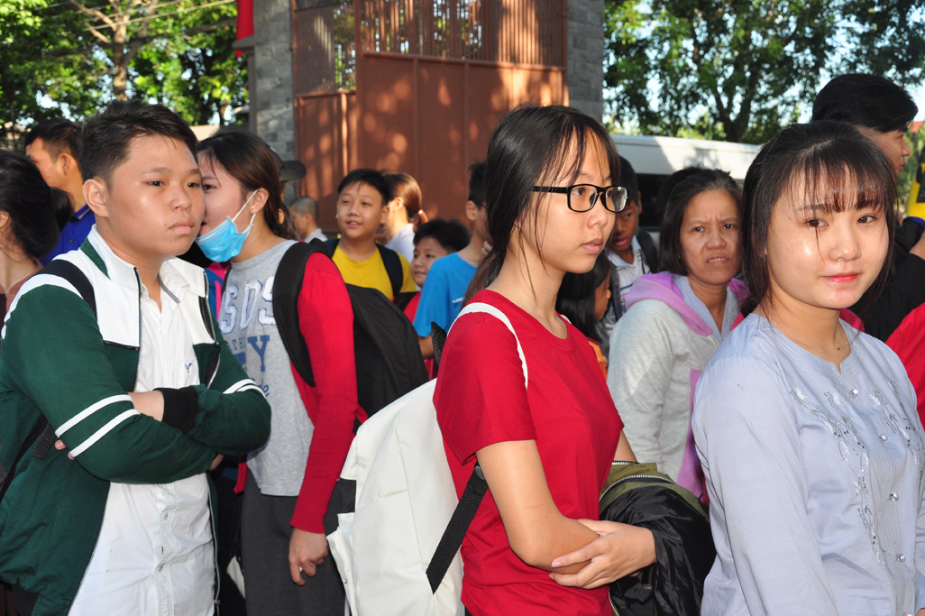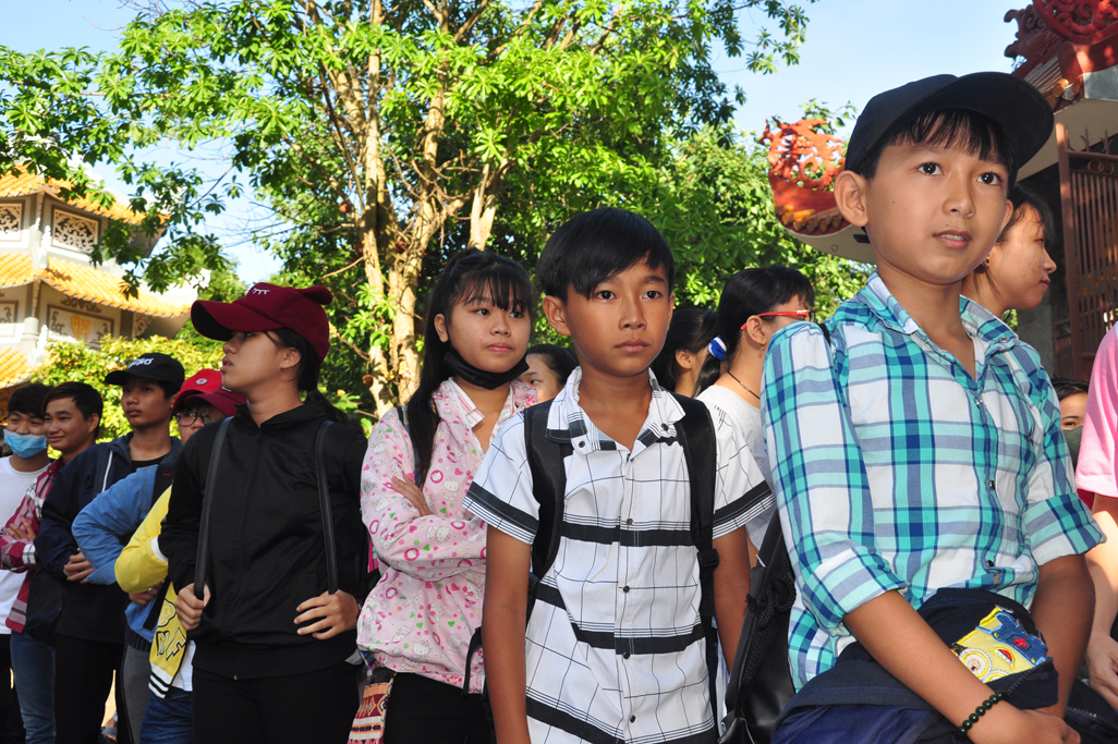 Các em được  quý thầy cô và các anh chị  hoan hỷ đón tiếp ghi danh, phát đồng phục và hướng dẫn dùng điểm tâm sáng.