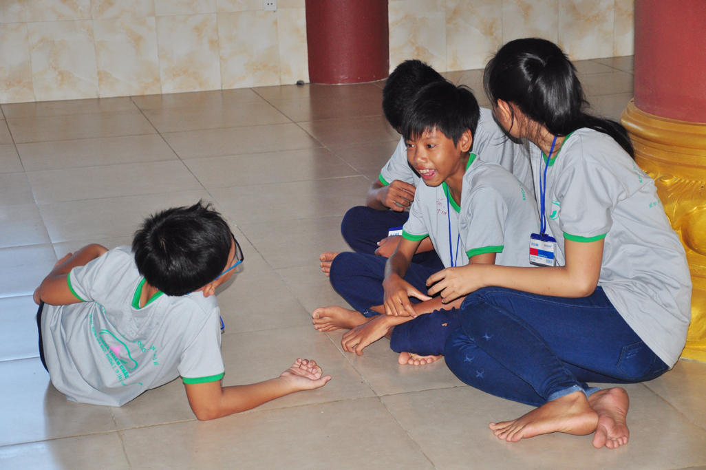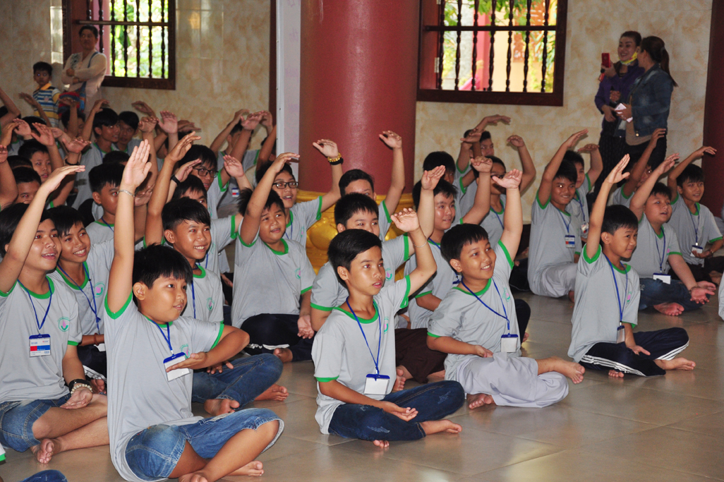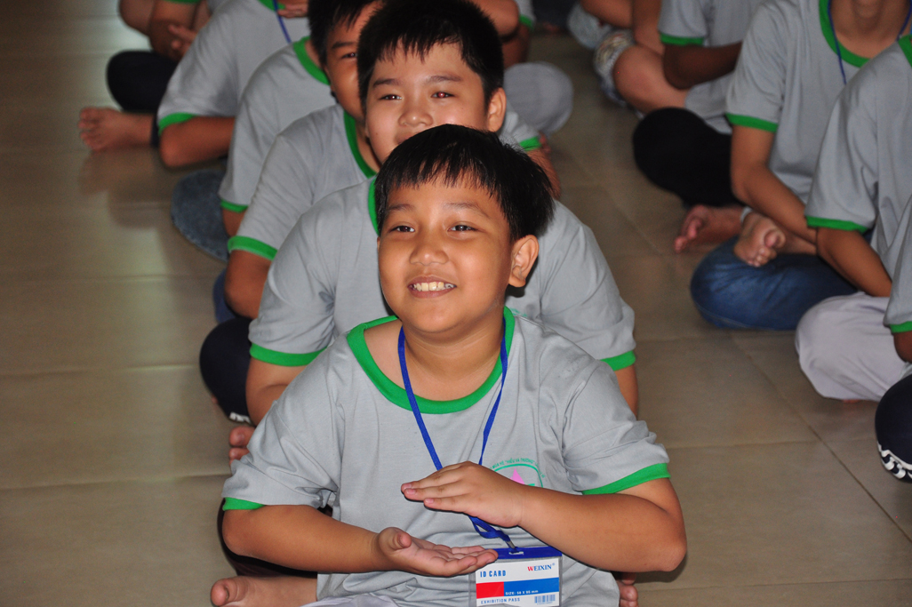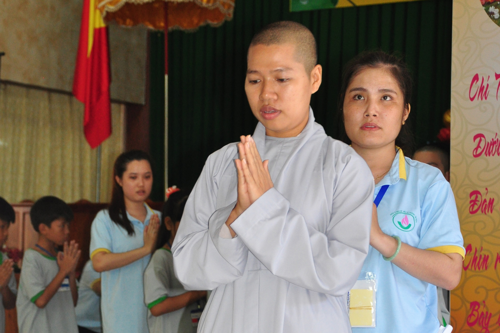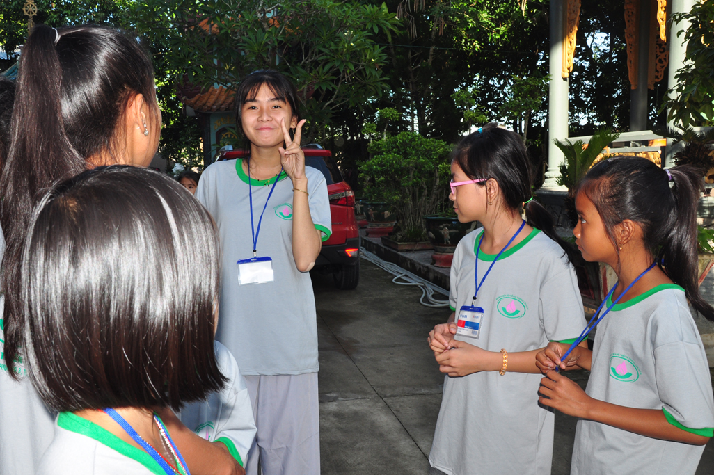 Đúng vào lúc 9 h các em được quý thầy cô chia đội chúng, dạy oai nghi, dạy hát và hướng dẫn các em những điều cần thiết chuẩn bi cho lễ khai mạc diễn ra 14 h chiều.