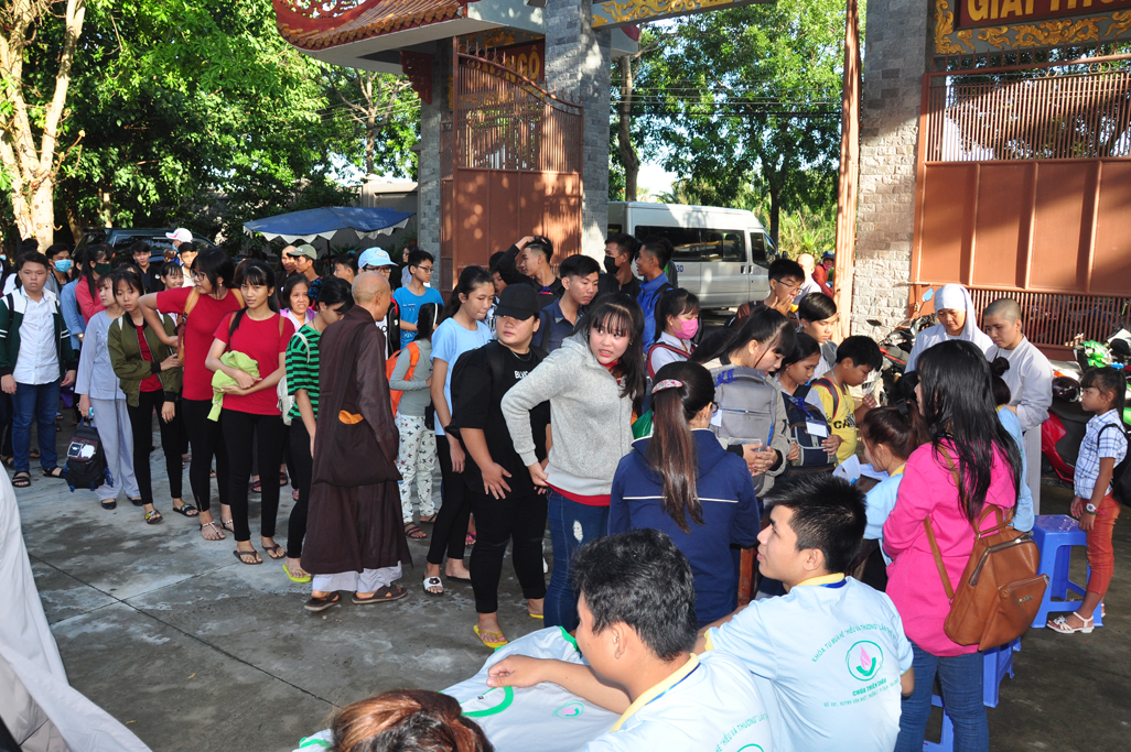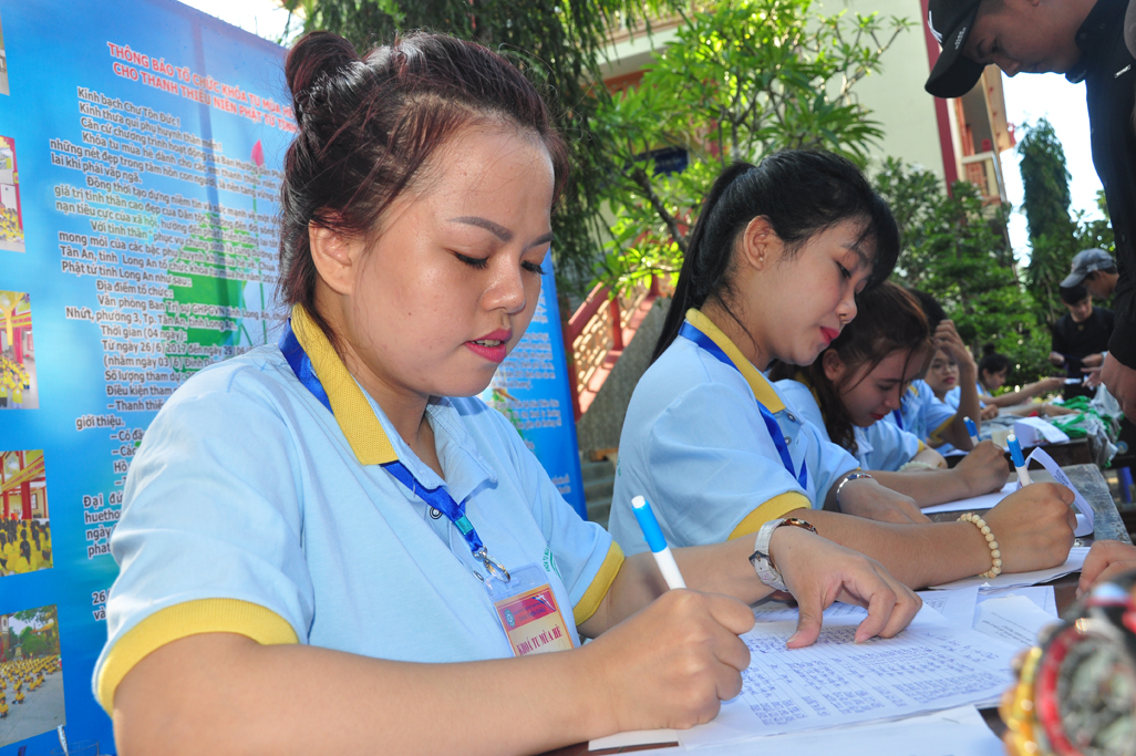 Từ sáng sớm, nơi ngôi chùa Thiên Châu thân thương, số 101, đường Huỳnh Văn Nhứt, Phường 3, Tp. Tân An đã đón tiếp  hơn 300 khoá sinh từ  khắp  nơi trong tỉnh và các tỉnh ban lân cận về tham dự.