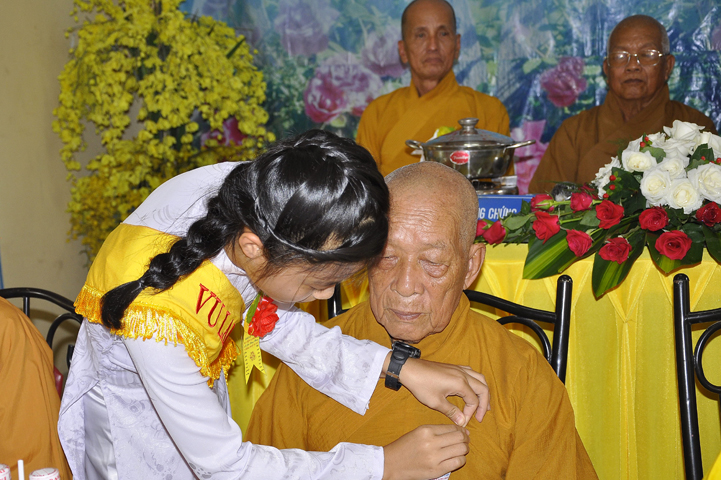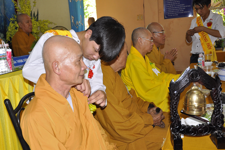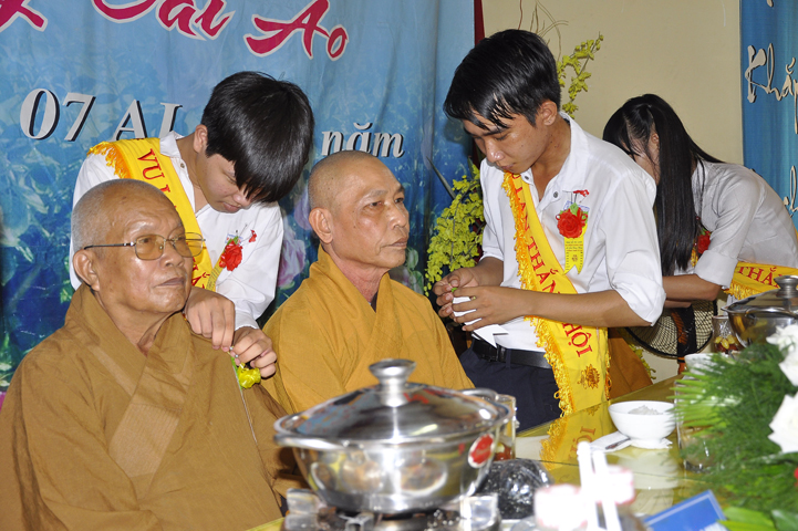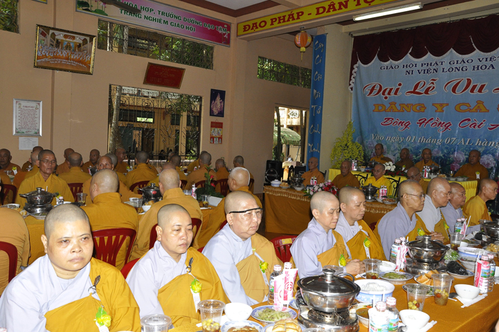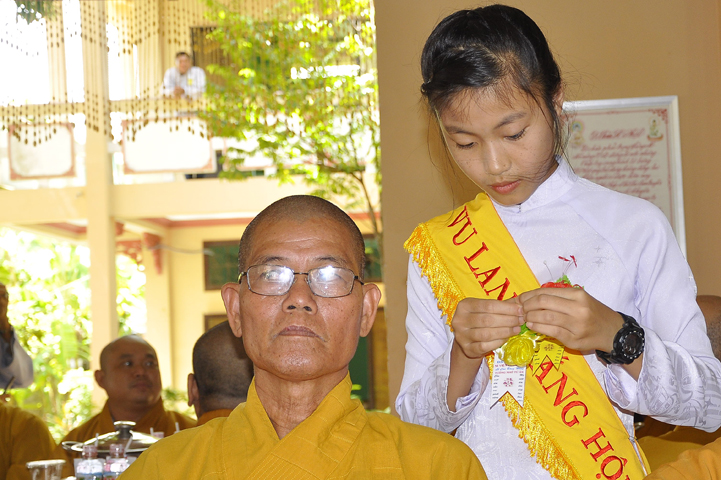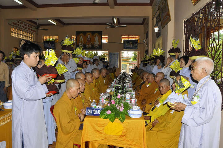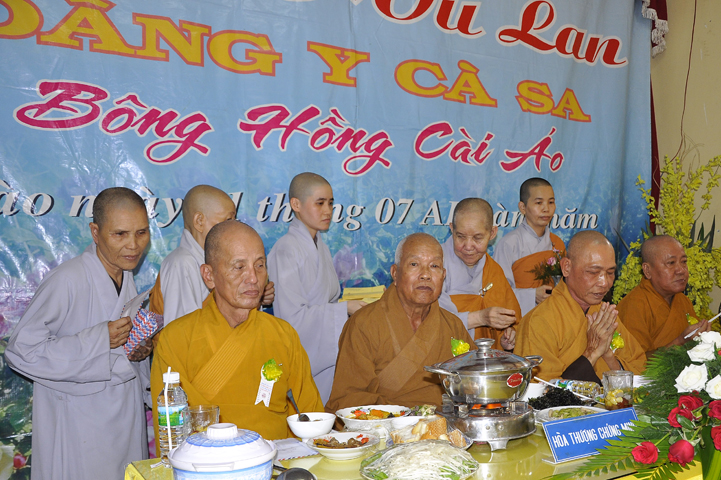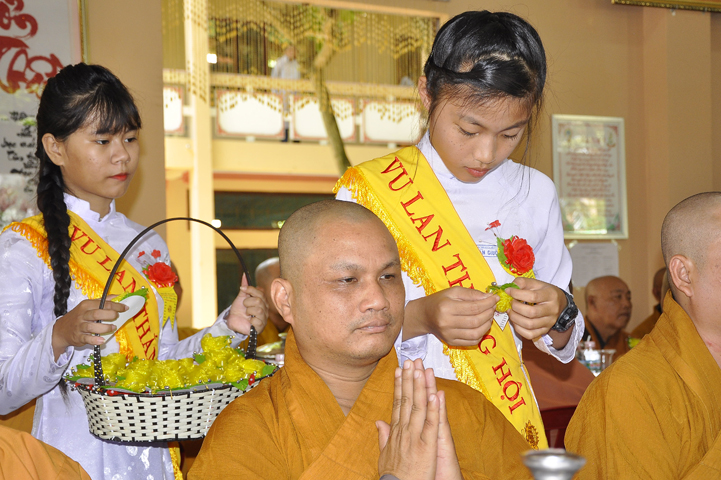 Sau phần nghe pháp, là chương trình Cài hoa hồng và dâng pháp ý. Chứng minh buổi lễ, Ban tổ chức được cung đón chư tôn đức: Hoà thượng Thiện Huệ: Chứng minh Ban Trị sự Giáo hội Phật giáo tỉnh Long An; Hoà thượng Thiện Tâm: Phó ban Trị sự Giáo hội Phật giáo tỉnh Long An; Hoà thượng Quảng Ý: Trưởng ban Trị sự Giáo hội Phật giáo liên huyện Tân Thạnh, Mộc Hoá, Vĩnh Hưng; Hoà thượng Bửu Ứng: Trưởng ban Trị sự Giáo hội Phật giáo huyện Cần Đước; Cùng hơn 100 quý chư tôn đức Tăng Ni và hơn 500 Phật tử tham dự lễ hội Vu Lan.
