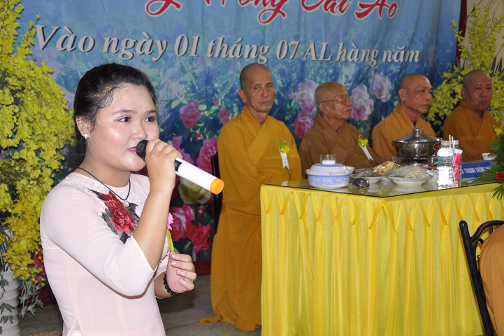 Trong buổi lễ, Hoà thượng Hoà thượng Thiện Huệ: Chứng minh Ban Trị sự Giáo hội Phật giáo tỉnh Long An đã nhắc các Phật tử luôn nhớ tâm hiếu và hạnh hiếu theo lời Phật dạy. Đồng thời, Ngài cũng nhắc nhở các Phật tử sống theo lời Phật dạy trong cuộc sống thực tiễn, luôn tròn bổn phận Phật tử học đạo, hành đạo và hộ đạo.