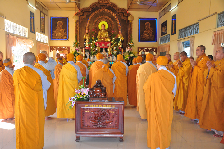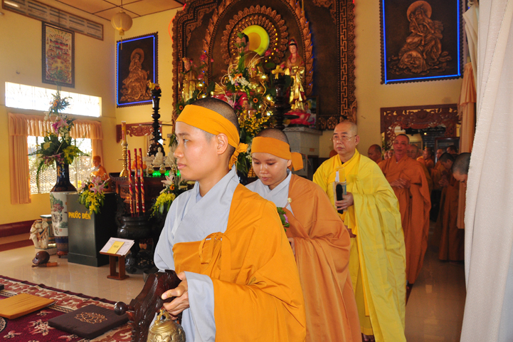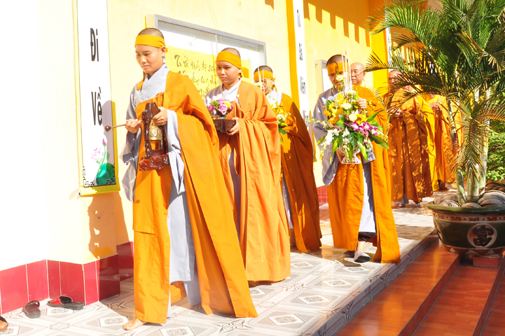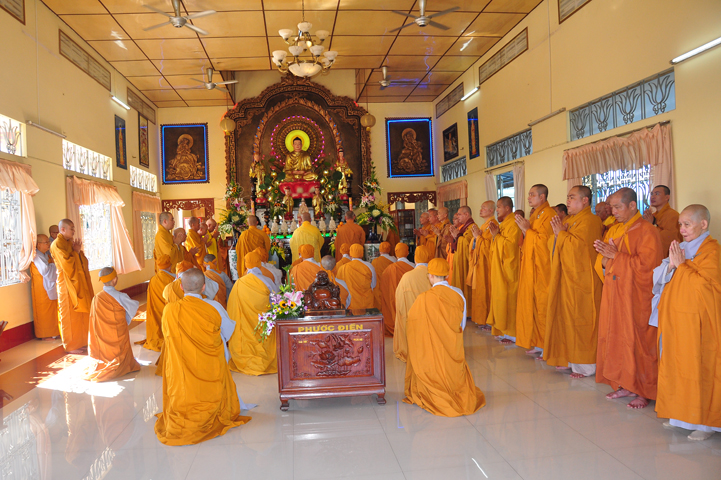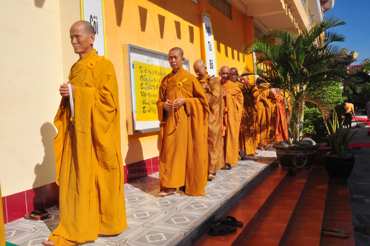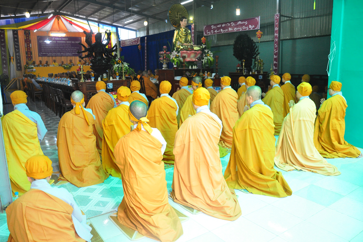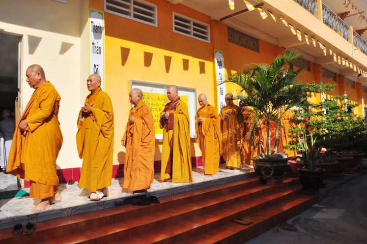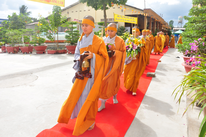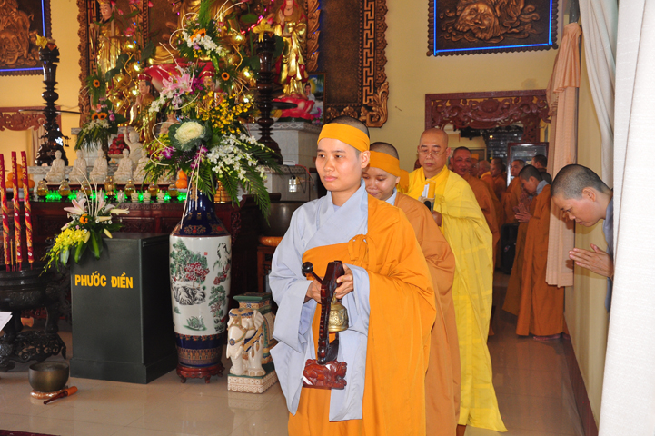 Theo chương trình đã ấn định, 07h, môn nhân pháp quyến, ban cung nghinh đã trang nghiêm pháp phục, để cung đón chư tôn thiền đức Giáo phẩm nhị bộ tăng già trong tỉnh Long An cũng như ngoại tỉnh quang lâm Ni viện Thiên Phước theo lời thỉnh cầu của môn nhân pháp quyến.
