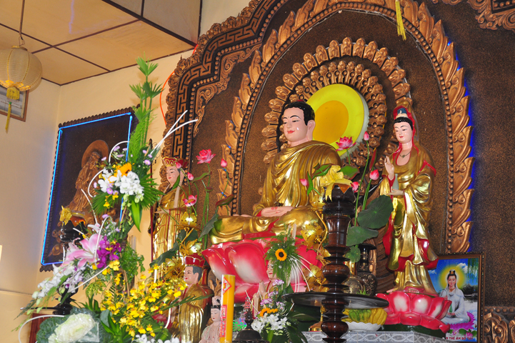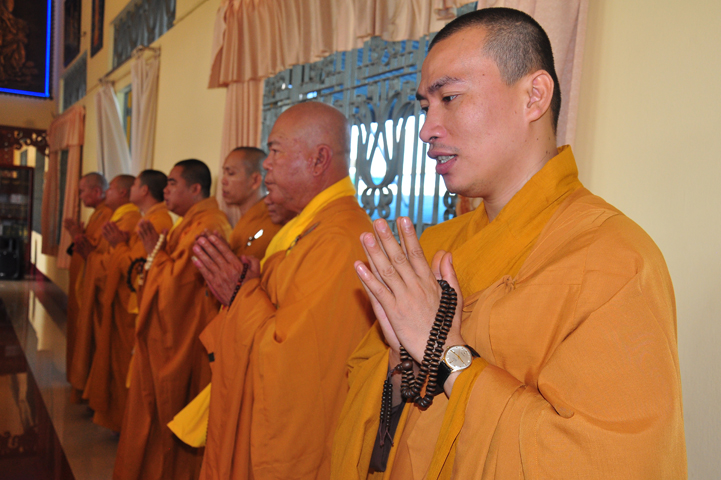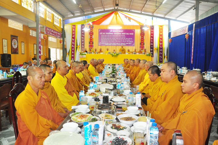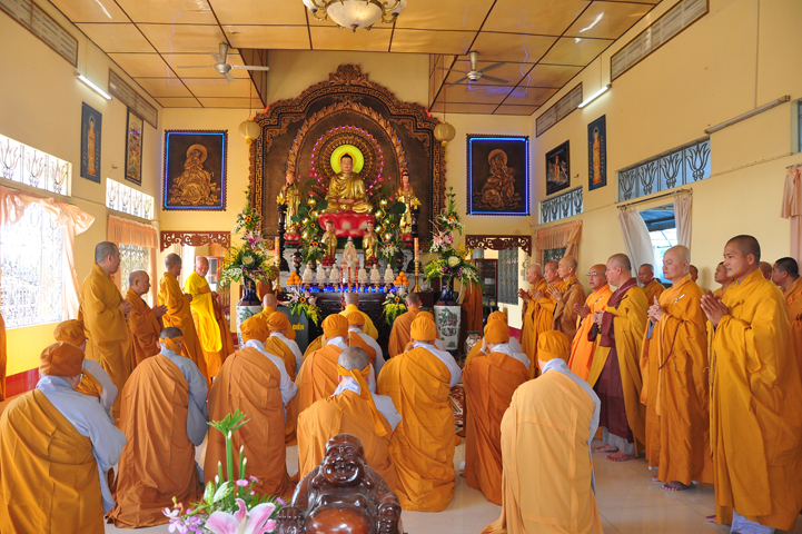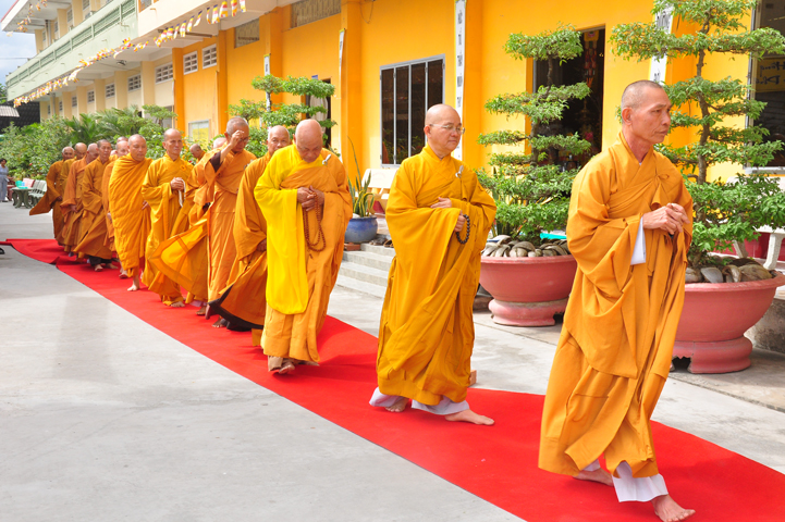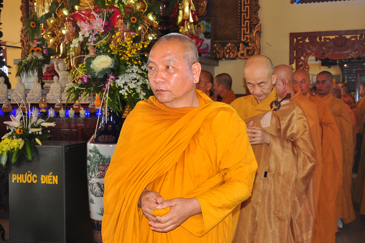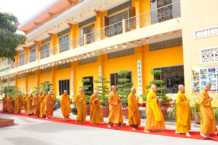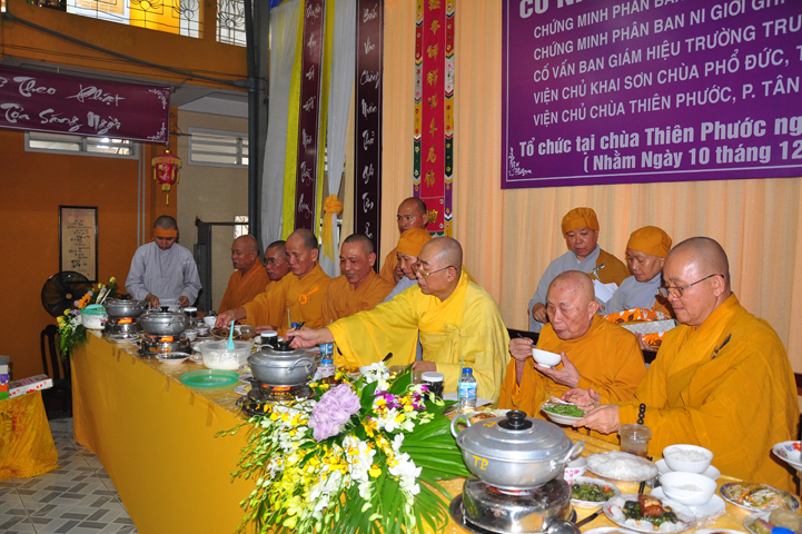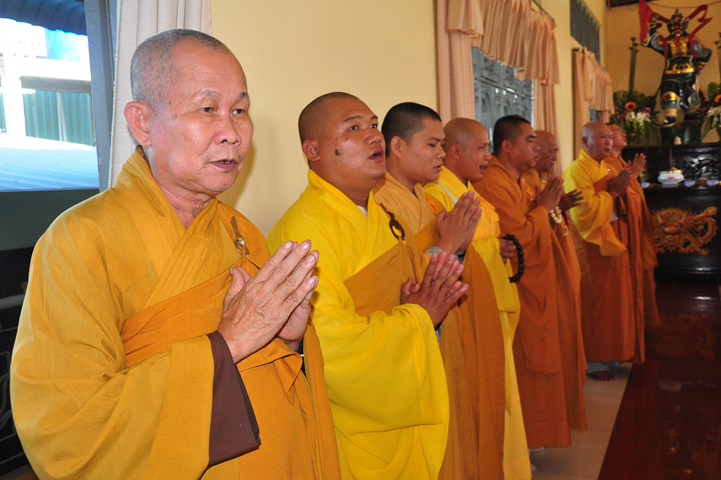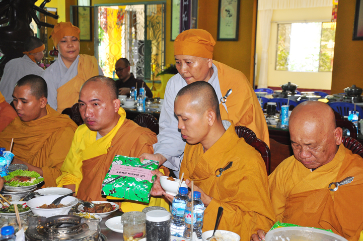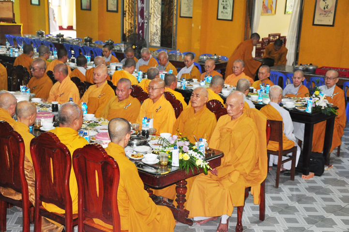 Chư tôn giáo phẩm quang lâm và chứng minh trai đường hôm nay gồm có: HT Thích Viên Giác, UVBTT HĐCMGHPGVN; HT Thích Minh Thiện-UVHĐTS, Phó trưởng Ban Hoằng pháp TW, Trưởng BTS GHPGVN, trụ trì chùa Thiên Châu, tỉnh Long An; HT Thích Thiện Huệ- CMBTS GHPGVN tỉnh Long AN; Chư tôn đức Giáo phẩm BTS GHPGVN tỉnh Long An; chư Tôn đức BTSPG thành phố Tân An, tỉnh Long An; Chư tôn đức Giáo phẩm Ban giám hiệu Trường Trung cấp Phật học Long An, cùng chư tôn đức Tăng trụ trì các tự viện trong tỉnh Long An, tỉnh Tiền Giang; TT Giác Thiện trụ trì chùa Phước Long (Tiền Giang) xướng lễ nghi thức cúng Quá đường.
