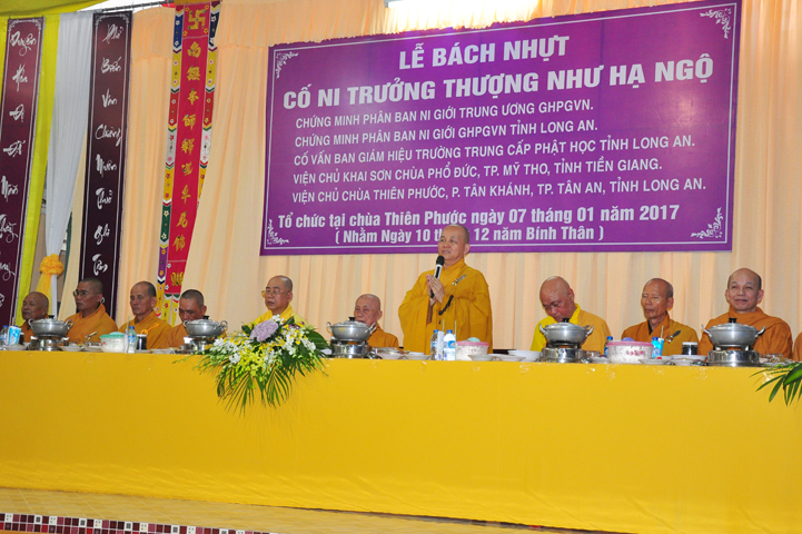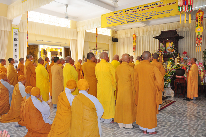 Với thâm tình Linh Sơn cốt nhục, với lòng từ bi thương tưởng hàng môn nhân pháp quyến, nhưng vì Phật sự đa đoan, chiều ngày 06/01/2017 (09/12/Bính Thân), chư tôn giáo phẩm BTS GHPGVN TP. HCM gồm HT Thích Thiện Tánh, Phó chủ tịch HĐTS GHPGVN, Phó trưởng Ban thường trực BTS GHPGVN Tp Hồ Chí Minh); HT Thích Tịnh Hạnh, Phó BTS GHPGVN Tp. Hồ Chí Minh; HT Thích Như Tín, Trưởng môn phái Lâm Tế Chúc Thánh Việt Nam, Phó BTS GHPGVN Tp Hồ Chí Minh, đã thùy từ quang lâm Ni viện Thiên Phước đốt hương tưởng niệm giác linh cố Ni trưởng, sách tấn chư môn nhân pháp quyến.