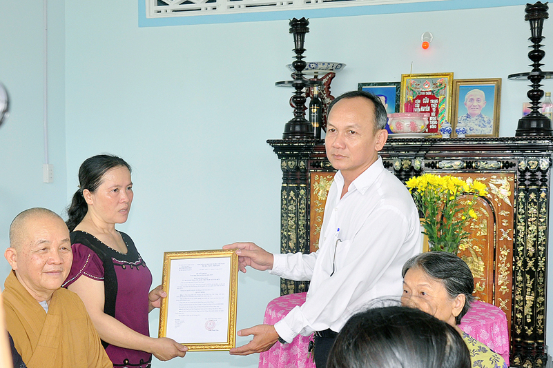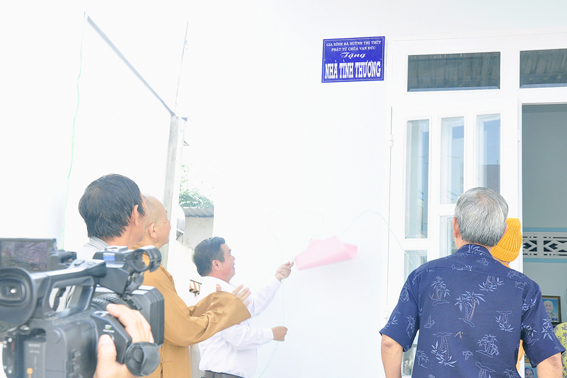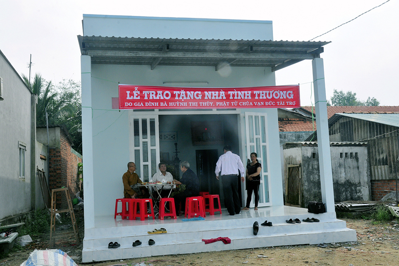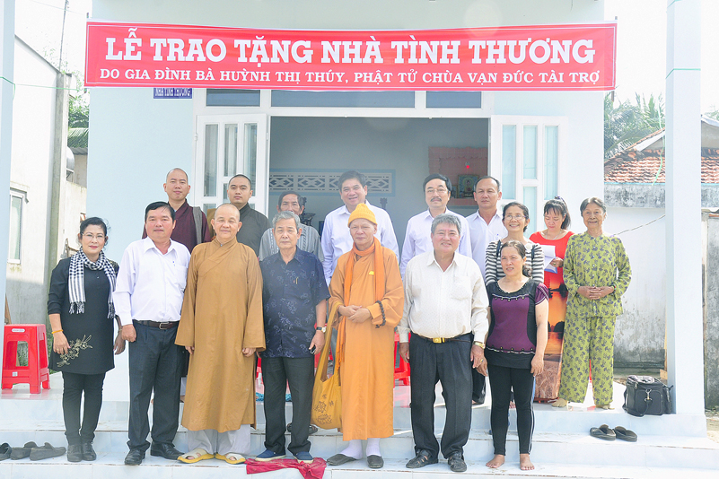 Căn nhà tình thương được trao cho gia đình ông Lưu Văn Vàng sinh năm 1974, căn nhà có diện tích 70 m2, mái tole, vách tường nền lát gạch men với tổng kinh phí xây dựng 60 triệu đồng, trong đó bà Huỳnh Thị Thúy Phật tử chùa Vạn Đức TP. HCM ủng hộ 40 triệu đồng phần còn lại do gia đình và thân nhân hổ trợ đóng góp.