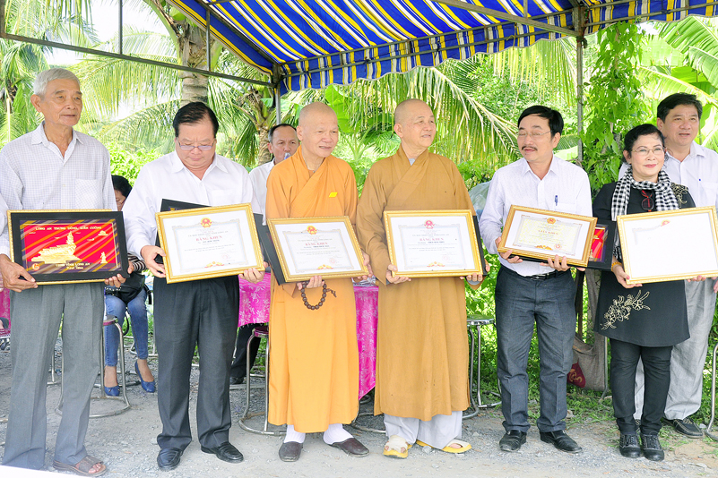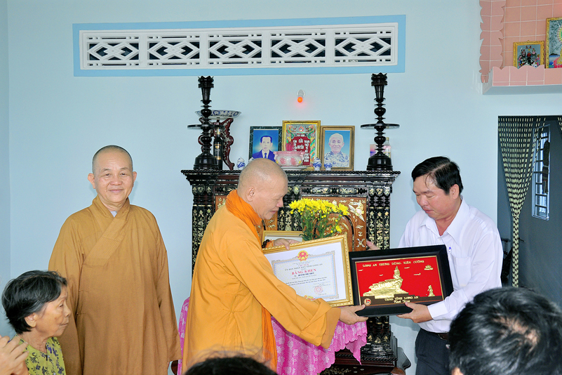 Tham dự buổi lễ có HT. Thích Minh Thiện- Uỷ viện Hội đồng Trị sự trung ương, Phó Ban Hoằng Pháp trung ương, Phó Ban Từ thiện Trung ương, Trưởng Ban Trị sự GHPGVN tỉnh Long An; HT. Thích Phước Toàn- Uỷ viên Ban Văn Hoá Trung ương GHPGVN, Viện chủ chùa Vạn Đức, quận Bình Tân, Tp. HCM và quý Chư tăng Phật tử trong đoàn.
