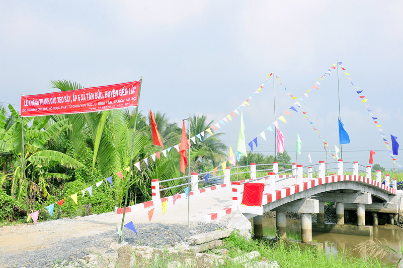 Cầu Xẻo Sậy có chiều dài 22m, rộng 3m với tổng kinh phí xây dựng 180 triệu đồng, trong đó gia đình ông, bà Hồ Ngọc hổ trợ 150 triệu đồng, phần còn lại do đơn vị thi công và nhân dân trong ấp đóng góp. Cầu Gò Keo có chiều dài 24m, rộng 3m với tổng kinh phí xây dựng 200 triệu đồng do gia đình ông Lưu Quốc Thắng tài trợ. Cầu Ngã Bác có chiều dài 18m, rộng 3,5m với tổng kinh phí xây dựng 130 triệu đồng trong đó gia đình ông Nguyễn Hồ Minh Hưng hở trợ 100 triệu đồng, phần còn lại do đơn vị thi công và nhân dân đóng góp.