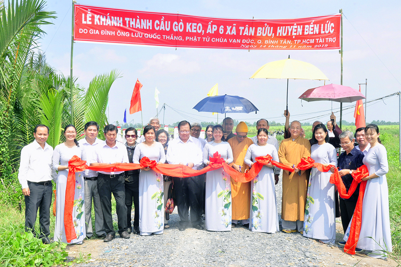 Ngày 14/11/2019, Ban từ thiện Xã Hội GHPGVN tỉnh Long An phối hợp với UBND xã Tân Bửu huyện Bến Lức tổ chức trao tặng 1 căn nhà tình thương và khánh thành 3 cây cầu giao thông nông thôn gồm: cầu Xẻo Sậy, cầu Gò Keo và cầu Ngã Bác tại ấp 6.